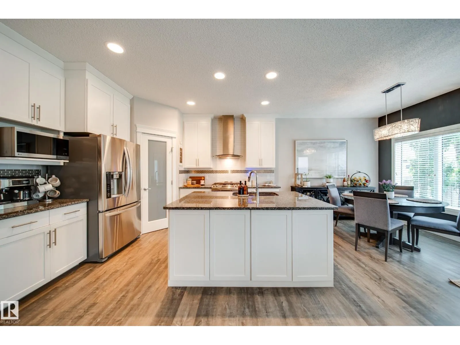 Located in one of Edmonton's most family friendly communities, this home delivers lifestyle & luxury in one perfect package - just a block from the Orchards Clubhouse w/AMENITIES:spray park,tennis,basketball courts,skating,garden, & party rooms for private events. Inside a thoughtfully designed 2000+ sqft layout offers 3+2 bedrms, 3.5 baths, & countless upgrades: newly painted throughout, NEW VINYL PLANK on all levels, NEW plush carpet on stairs, DOVETAIL cabinet drawers,built-in rubber gym floor, 9ft ceilings,built-in SPEAKERS w/bonus rm surround sound, AC,& HEATED garage. An open concept main floor impresses w/walkthru pantry from mudroom, chefâs kitchen w/GAS range & oversized island,dining rm overlooking a bright WEST facing yard (w/2 tiered rear deck), & a cozy living room w/GAS fireplace. Upstairs find 3 bedrms, 2 baths, laundry, & bonus rm, while the primary retreat ft. a WIC & 5pc ensuite. A FINISHED basemnt adds a 4th bedrm, full bath, & a 5th bedrm/den + a spacious family area for all to enjoy. (id:27476)