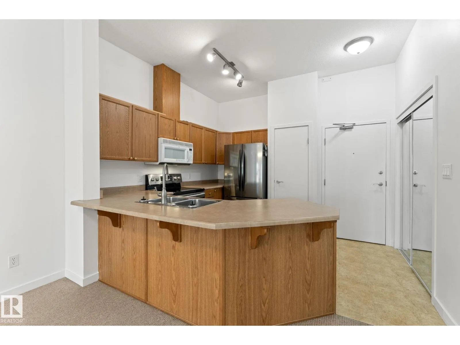 Welcome to the Estates of Clareview! This bright and spacious TOP FLOOR 2 bedroom, 2 bathroom SOUTH FACING condo features VAULTED CEILINGS, and cozy gas FIREPLACE. The open-concept layout includes a functional kitchen with oak cabinets and SS appliances, a generous living area, and in-suite laundry for added convenience. The primary bedroom offers a walk-through closet and full ensuite bathroom. The second bedroom is ideal for guests, an office, or a roommate setup with the second full bath nearby. Includes underground heated parking with a storage cage right in front of the stall. Unbeatable location, literally steps from Clareview LRT TRAIN STATION (perfect for University students, and downtown professionals), shopping, restaurants, and all amenities. Well-managed, pet-friendly complex with a FULL GYM, REC ROOM and social room for special occasions. NEW FRESH COAT OF PAINT professionally done for the new owners. Move-in ready and perfect opportunity for first-time buyers, students, or investors! (id:27476)