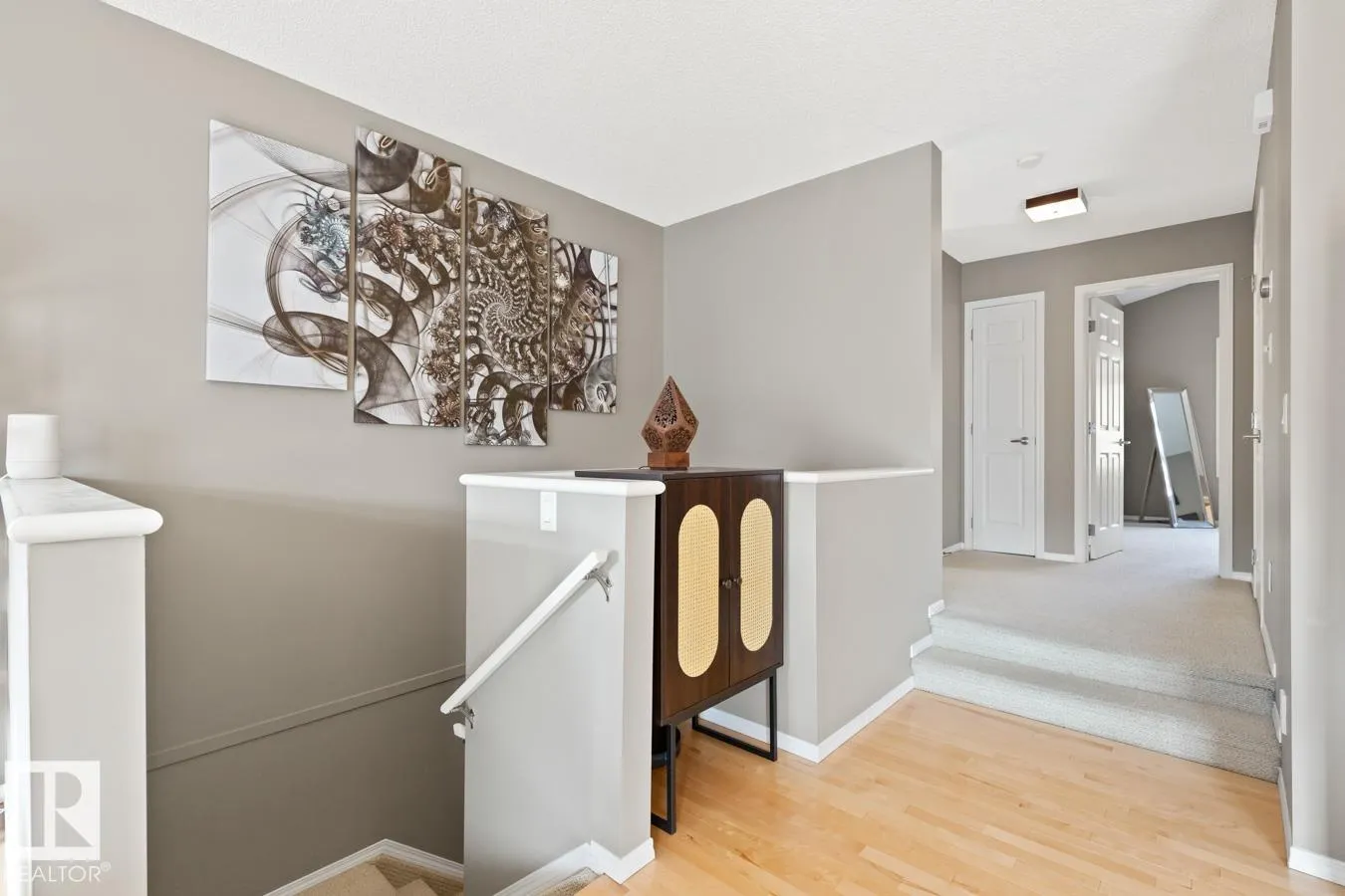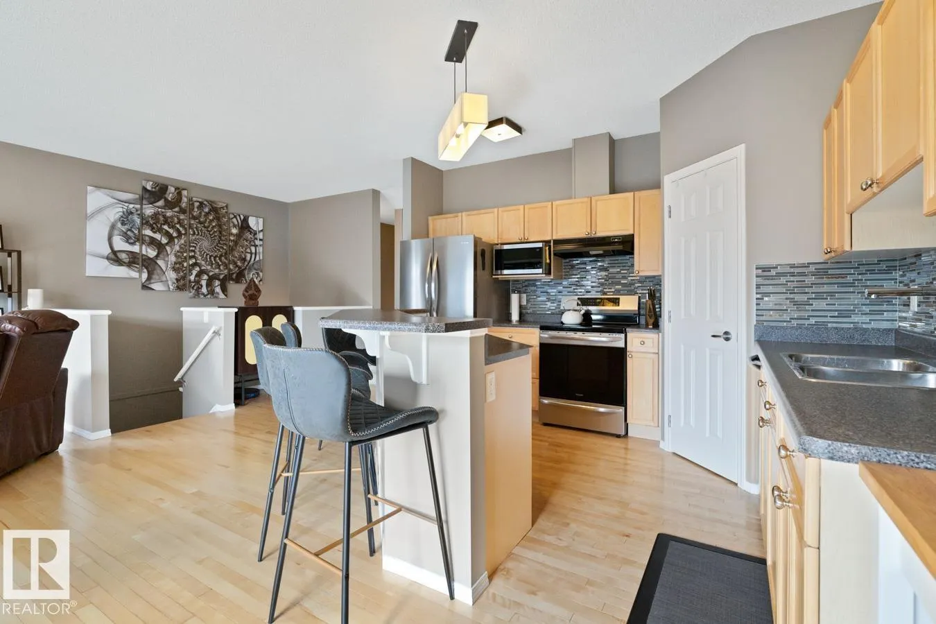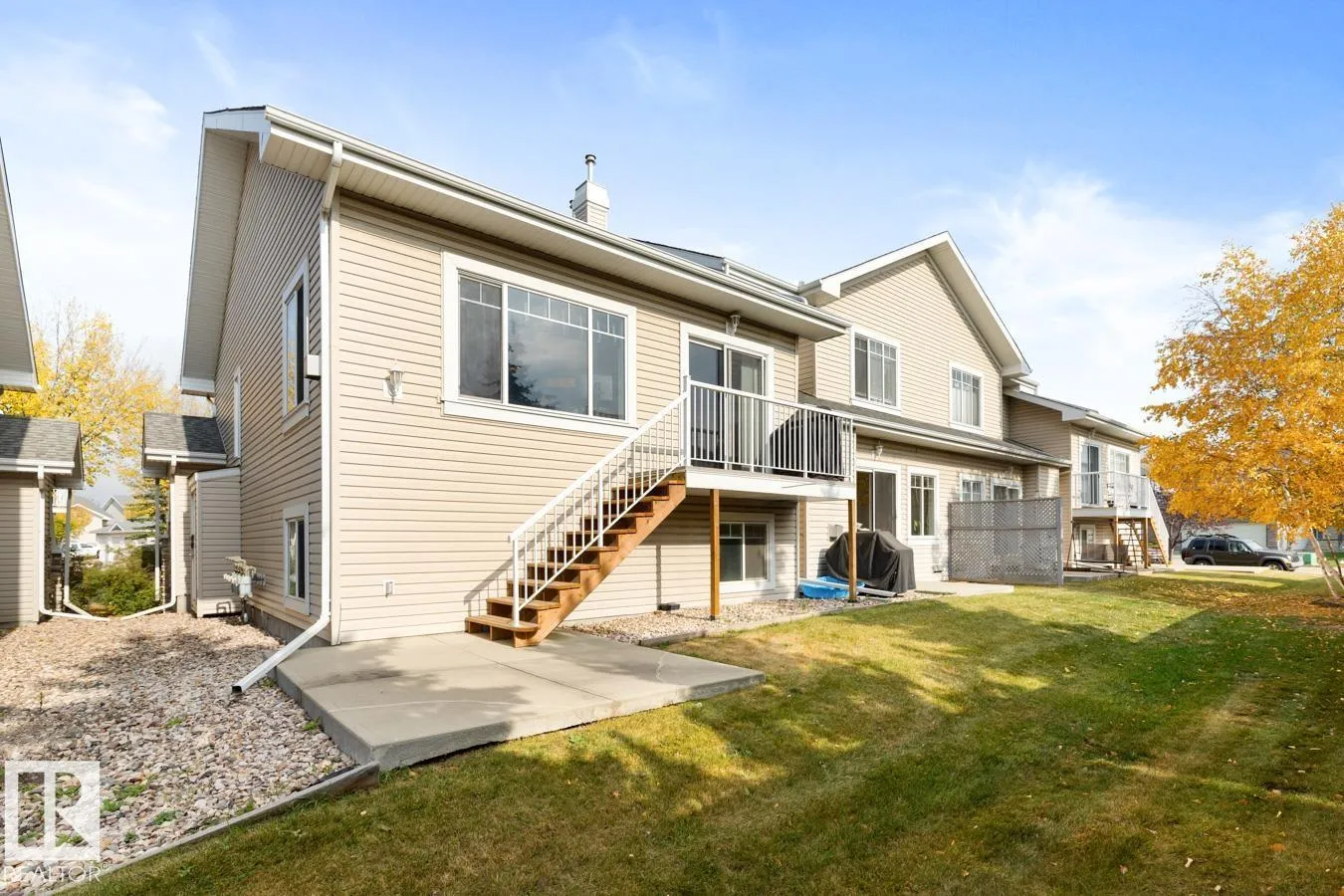 Pride of ownership is visible throughout this bright and well-kept END UNIT in the desirable community of Haddow! Offering over 1,400 sq. ft. of fully finished living space, this home has so much to offer. The main floor showcases beautiful HARDWOOD floors, a cozy gas FIREPLACE, and a modern kitchen with tons of storage and counter space. The large primary suite includes VAULTED ceilings, DOUBLE CLOSETS, and a full ENSUITE bathroom. Youâll also find the convenience of MAIN FLOOR LAUNDRY. Downstairs, enjoy a bright and functional lower level complete with additional living area, comfortable bedroom and a third full bathroom. The home has a huge DOUBLE ATTACHED garage plus driveway. Enjoy your own private outdoor space with both a balcony and patioâperfect for barbecues (gas line included) or relaxing. All of this on a peaceful, tree-lined street, close to schools, shopping, and the Terwillegar Recreation Centre. Plus quick access to Anthony Henday and Whitemud Drive. (id:27476)