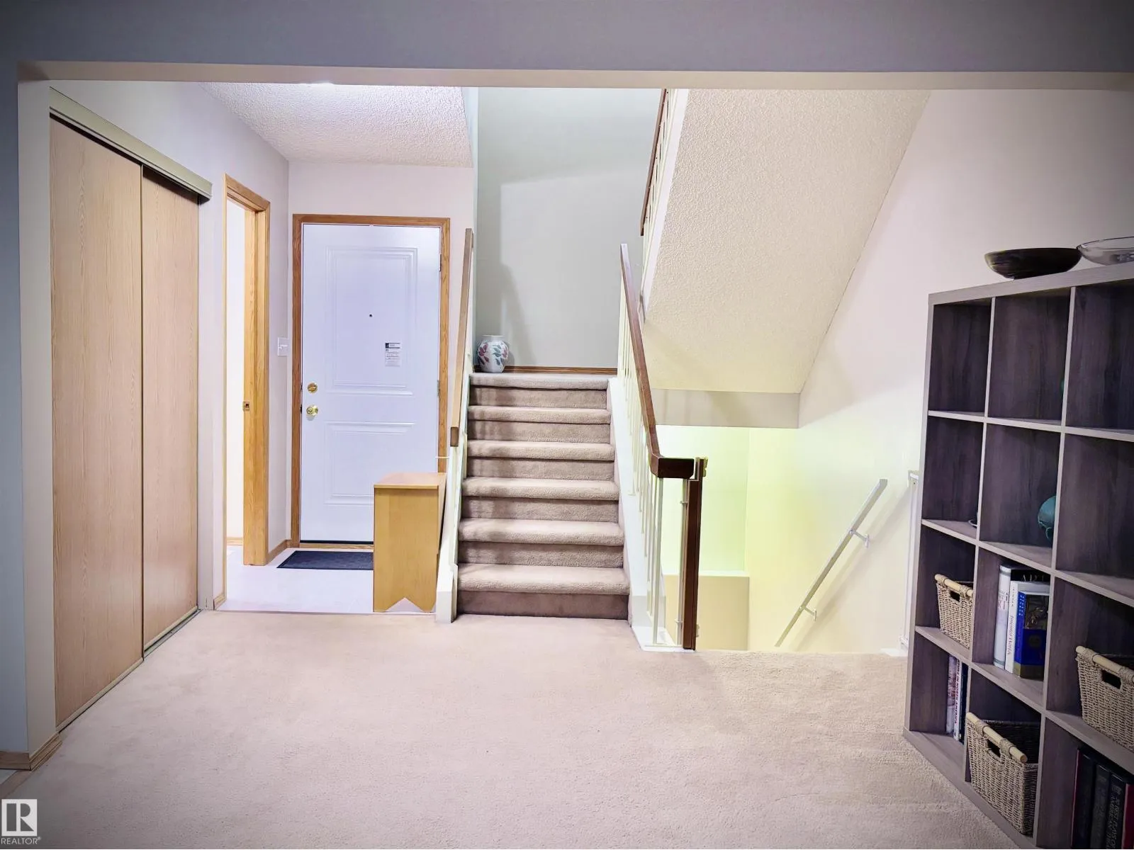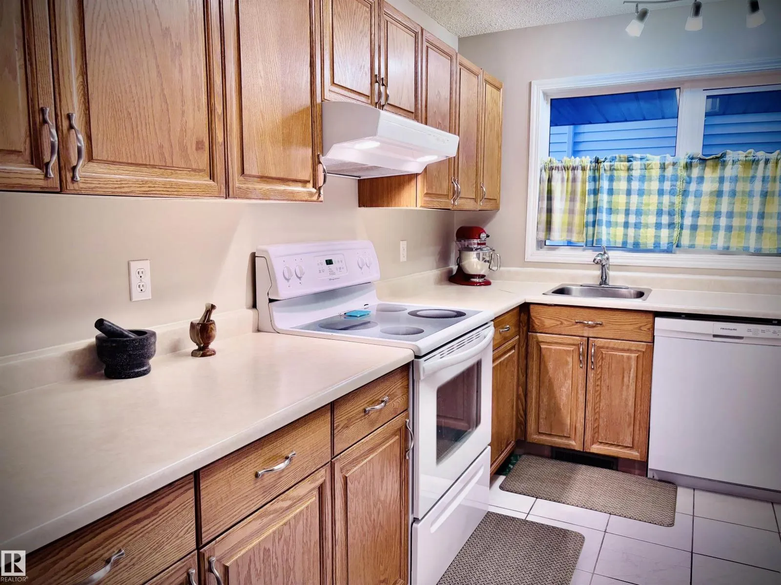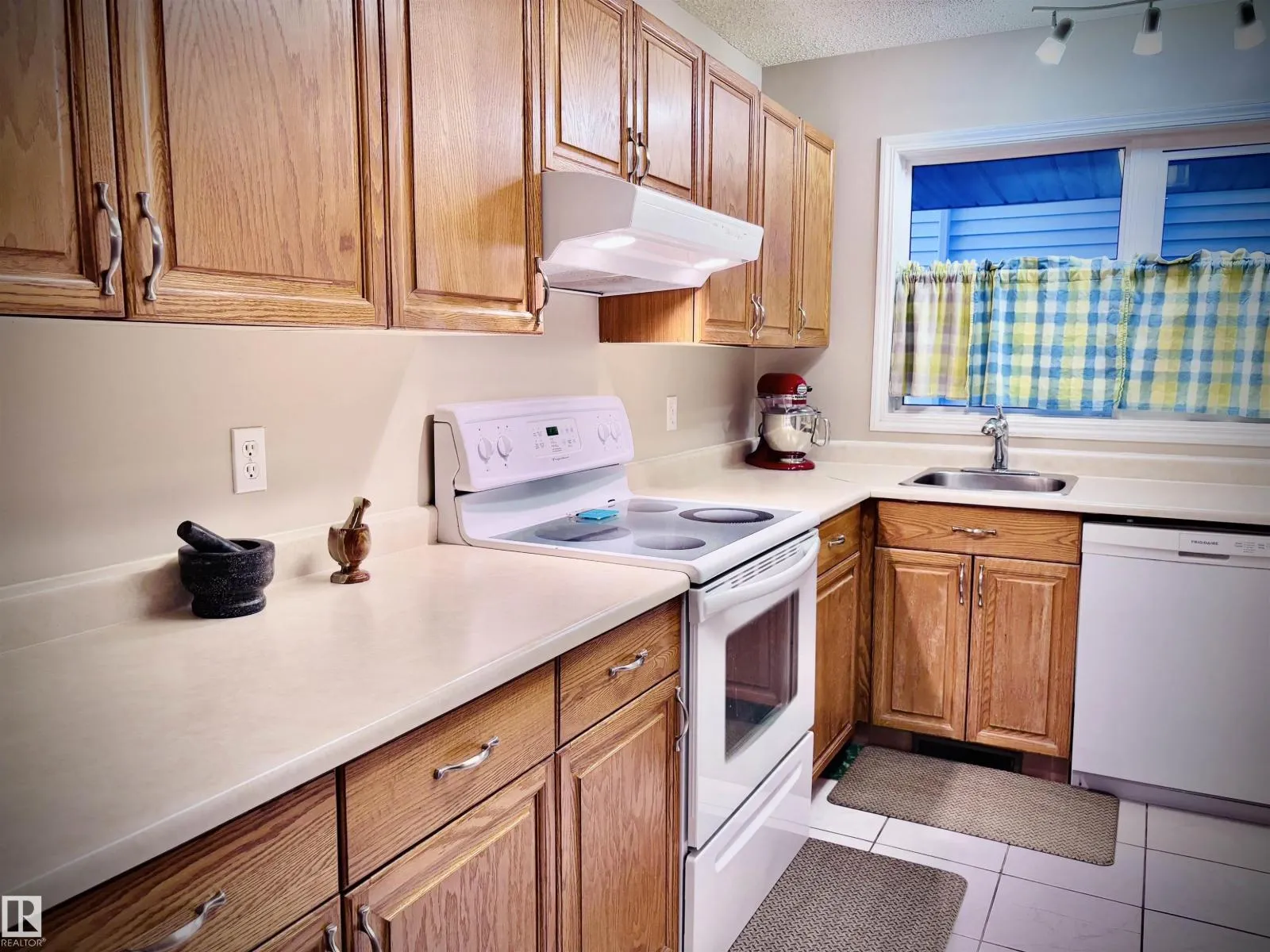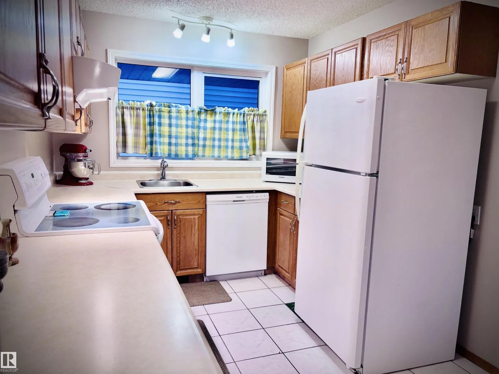 6 unit self managed complex is in a great location, close to shopping and across the street from Minchau Elemetary School, park and close to walking trials in the ravine. 3 bedroom, 1.5 bathroom plus loft features a spacous design at 1250 square feet, vaulted ceiling, wood burning brick fireplace, kitchen with plenty of oak cabinets and pantry, patio doors to the West facing, fenced back yard with outdoor storage area. A good sized primary bedroom has double closets, two more bedrooms each with double windows, the main bathroom has double sinks, and a loft overlooking the fireplace completes the upper level. The basement is partially finished, has plenty of storage, laundry, and the skylights lets in plenty of natural light. Bonus with your own detached garage and extra parking stall! Ready to move in and enjoy! Low condo fees of $275/month. (id:27476)