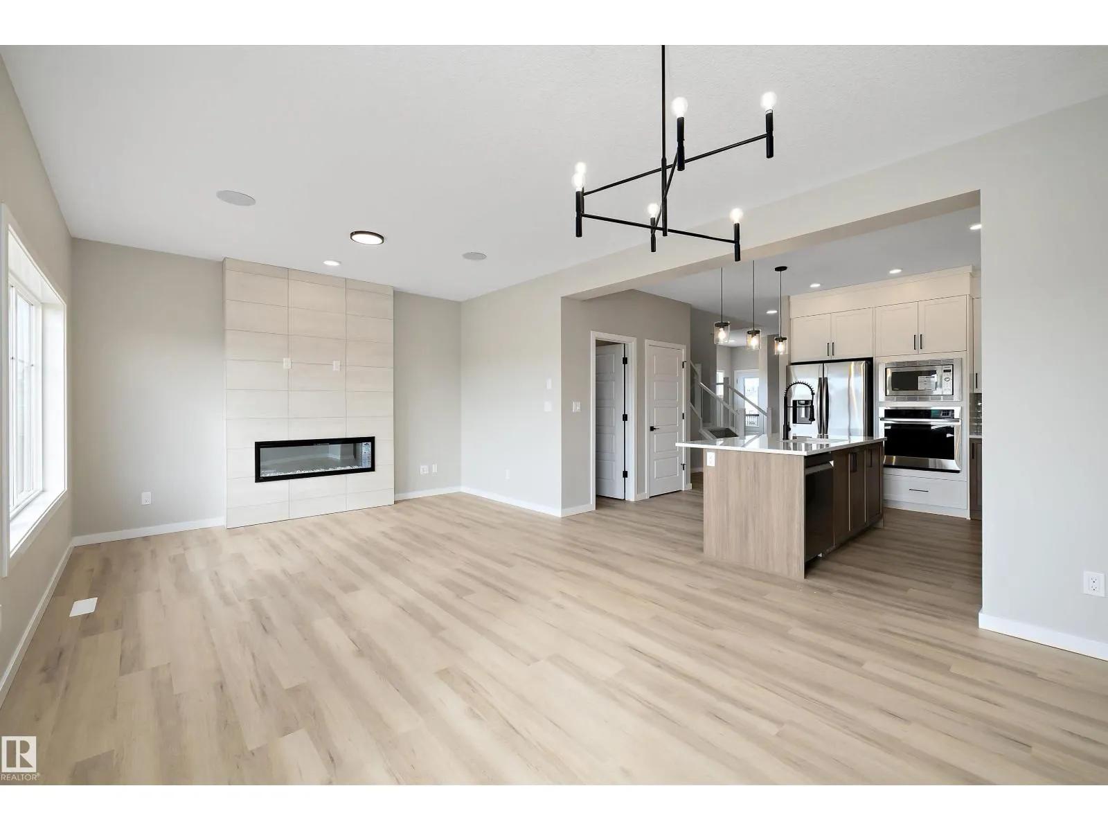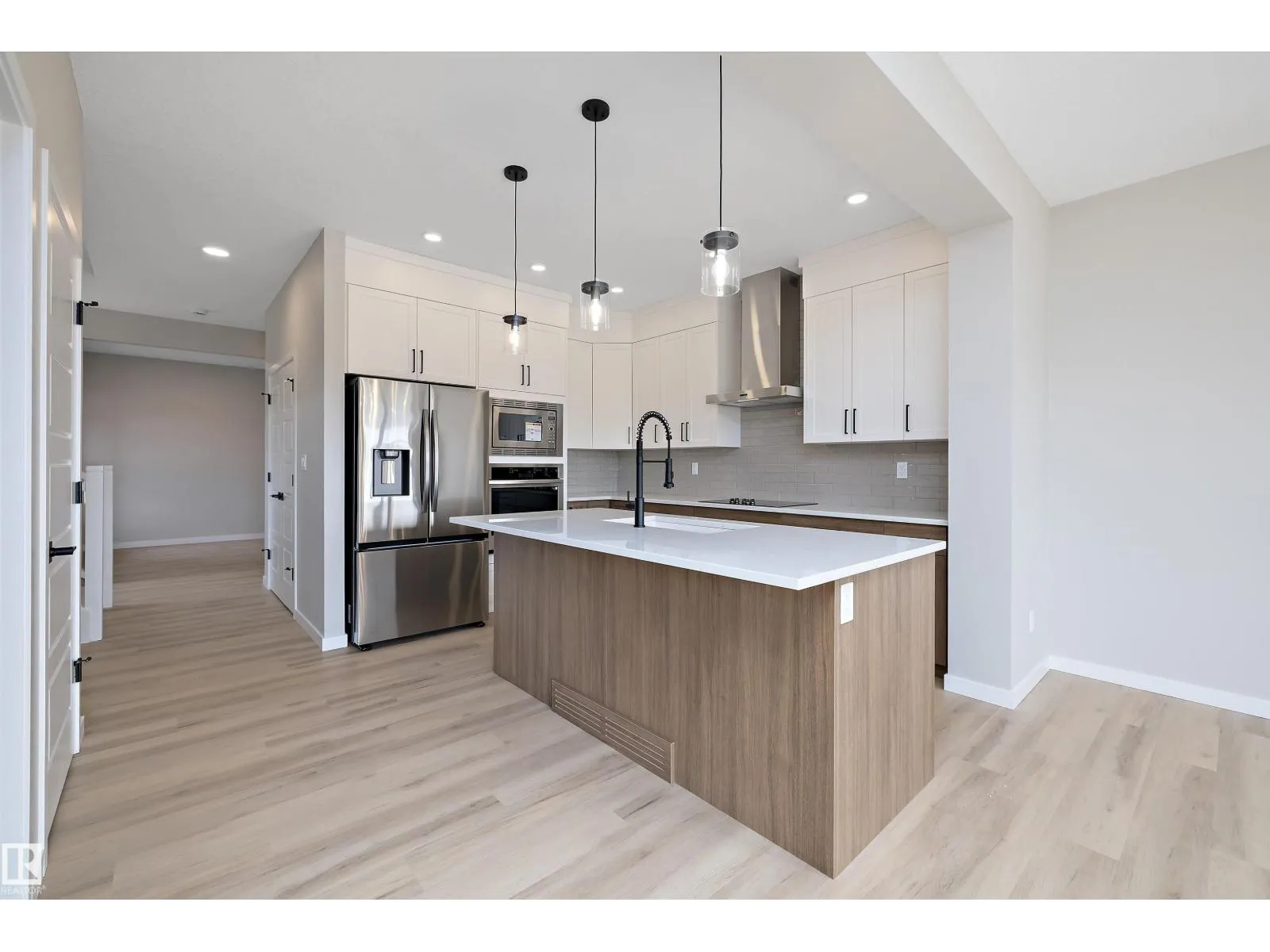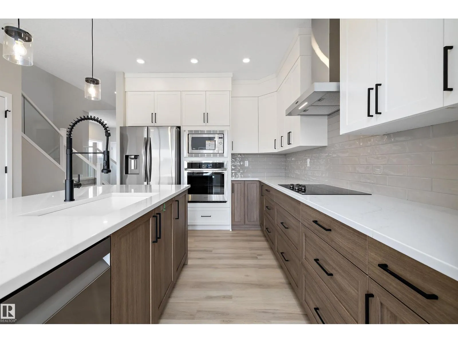 Welcome to 4544 Kinsella Link SW in Keswick Landing! This brand-new 2-storey walkout home backs onto a lake and offers over 2,200 sq ft of modern living with 3 bedrooms, 3 full baths, and a separate side entrance for future suite potential. The main floor boasts an open-concept design with wide plank flooring, a bright great room with fireplace, dining area, and chefâs kitchen featuring upgraded level 3 finishes, quartz countertops, oversized island, premium appliances, and abundant storage. A full bath and glass railing enhance the main level. Upstairs, the spacious primary suite includes a luxurious ensuite and walk-in closet, with two additional bedrooms, a bonus room, laundry, and another full bath. Added features include a 9ft foundation, 2â wider garage, upgraded lighting and plumbing, and a full-width deck with glass railing to take in lake views. Located near parks, trails, schools, and shopping, with easy access to Henday and Windermere amenities. Don't miss this opportunity! (id:27476)