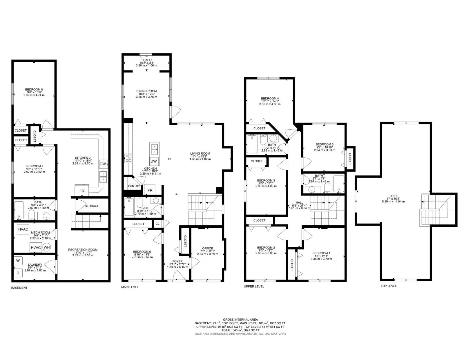 Renovated, move-in ready! Perfect for large or multi-generational families, or for potential future conversion into shared living facility such as rooming house. With nearly 3700 square feet of living space on 4 levels including a loft, this home has plenty of space. 8 bedrooms + den, additional huge loft, 4 full bathrooms, and finished basement. 1 bedroom, bathroom and a den on main level - perfect for older members of the family. 5 bedrooms upper level. 2 bedrooms in basement. Plenty of recent upgrades including: new luxury vinyl plank flooring main floor and 3 bedrooms, recent paint. Features include: Central air-conditioning. Large deck. Fully finished basement with additional food preparation area. Fenced back yard. Close to transport, shopping and amenities. Large double detached garage. 2 furnaces. Potential rent of $6000+ plus if converted to rooming house / shared rental facility. (id:27476)
