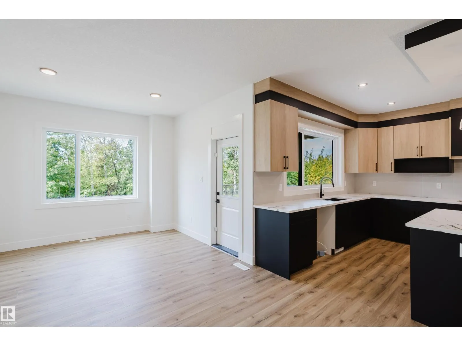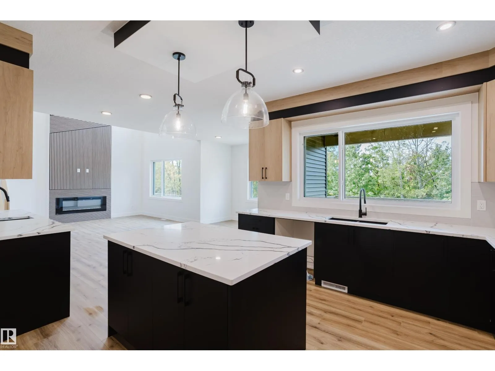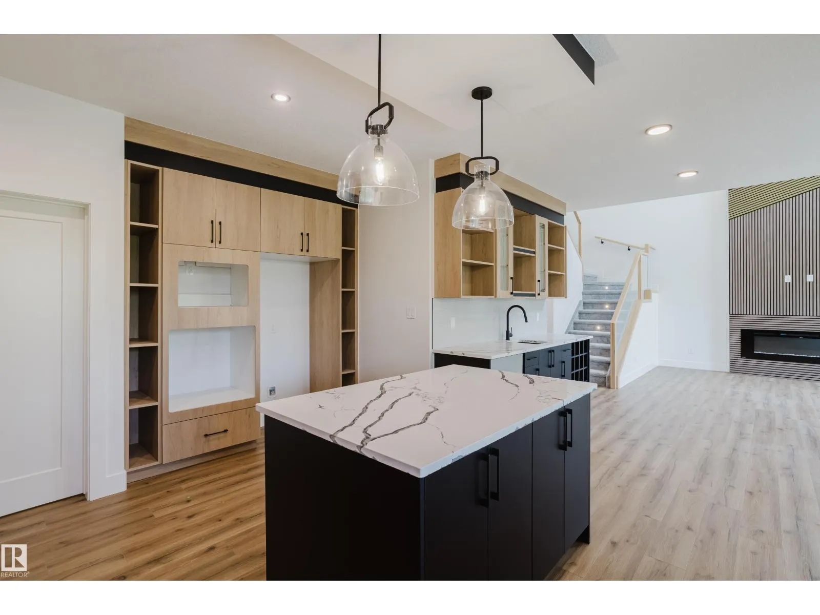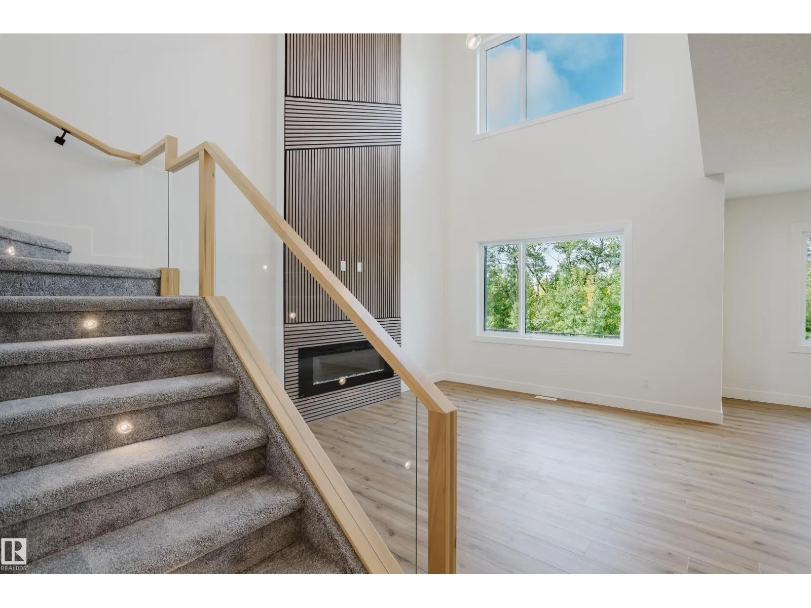 Step into exceptional living with this beautifully crafted triple car garage home in The Uplands, one of Edmontonâs most sought-after communities. Designed to impress with its modern elegance and thoughtful layout, this residence backs onto a lush ravine, offering peaceful views and a private outdoor escape with a covered deck and upper balconyâperfect for relaxing or entertaining. Inside, the open-to-below living room with a striking fireplace creates a dramatic focal point, while the wrap-around kitchen boasts premium finishes, ample cabinetry, and a layout ideal for hosting. A stylish wet bar adds a touch of luxury and convenience. A full bathroom on the main floor enhances functionality, and the upper level features a spacious bedroom retreat, a versatile bonus room, and a laundry room with built-in cabinets for added storage. Sleek glass railings and illuminated step lights elevate the contemporary feel throughout. With a side entrance to the basement, this home offers flexibility for future use. (id:27476)