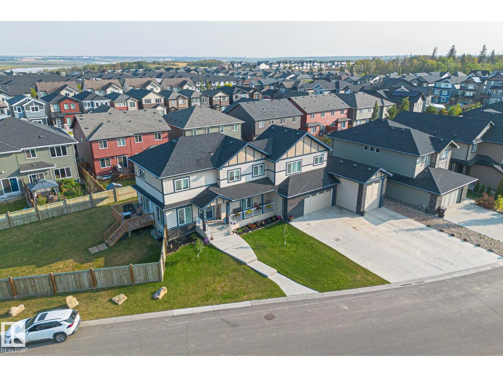 Live your BIG DREAMS in this BIG HOUSE! Room for the whole family & then some. Grand front double doors open to bright & sunny living room, den/bedroom off to the right. Deck #1 just past the living room. On the other side is your formal dining room, full 3pc bathroom, chefs kitchen & deck #2. On the 2nd floor find your private primary bedroom with spa like 5pc ensuite. Soaker tub for 2 & large walk-in closet. Down the hall is laundry room, 3large bedrooms, 4pc bathroom and family TV room completes this level. Hunter Douglas blinds throughout. Oversized TRIPLE tandem garage is any motor enthusiast dream; commercial grade heaters, 13' ceilings room for car lift. TWO 12' garage doors. Park the RV, boat, bikes, all the toys. 9' ceilings in basement ready for future development with separate entrance. Almost .30 of an acre lot. You will never find this again in the city. Walking trails through the valley right out front your door. Easy access to Anthony Henday, HWY 16, & shopping amenities. Look no further! (id:27476)