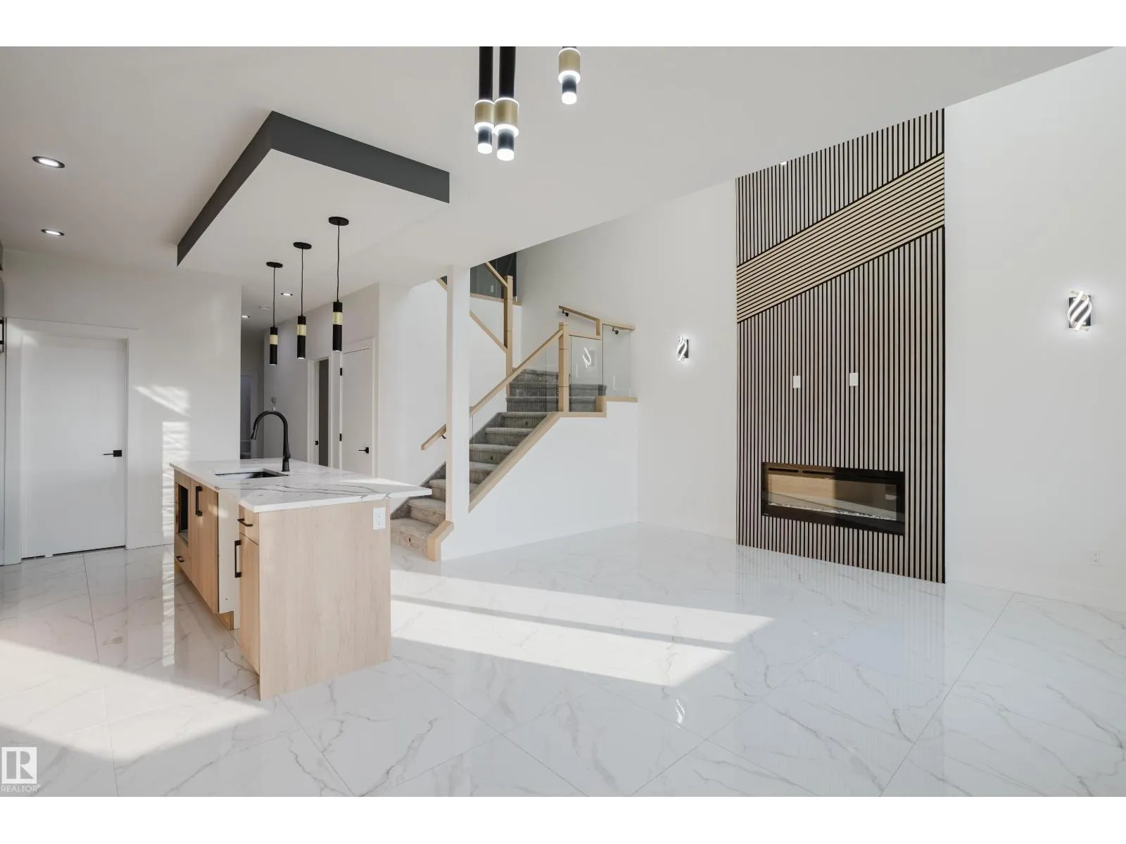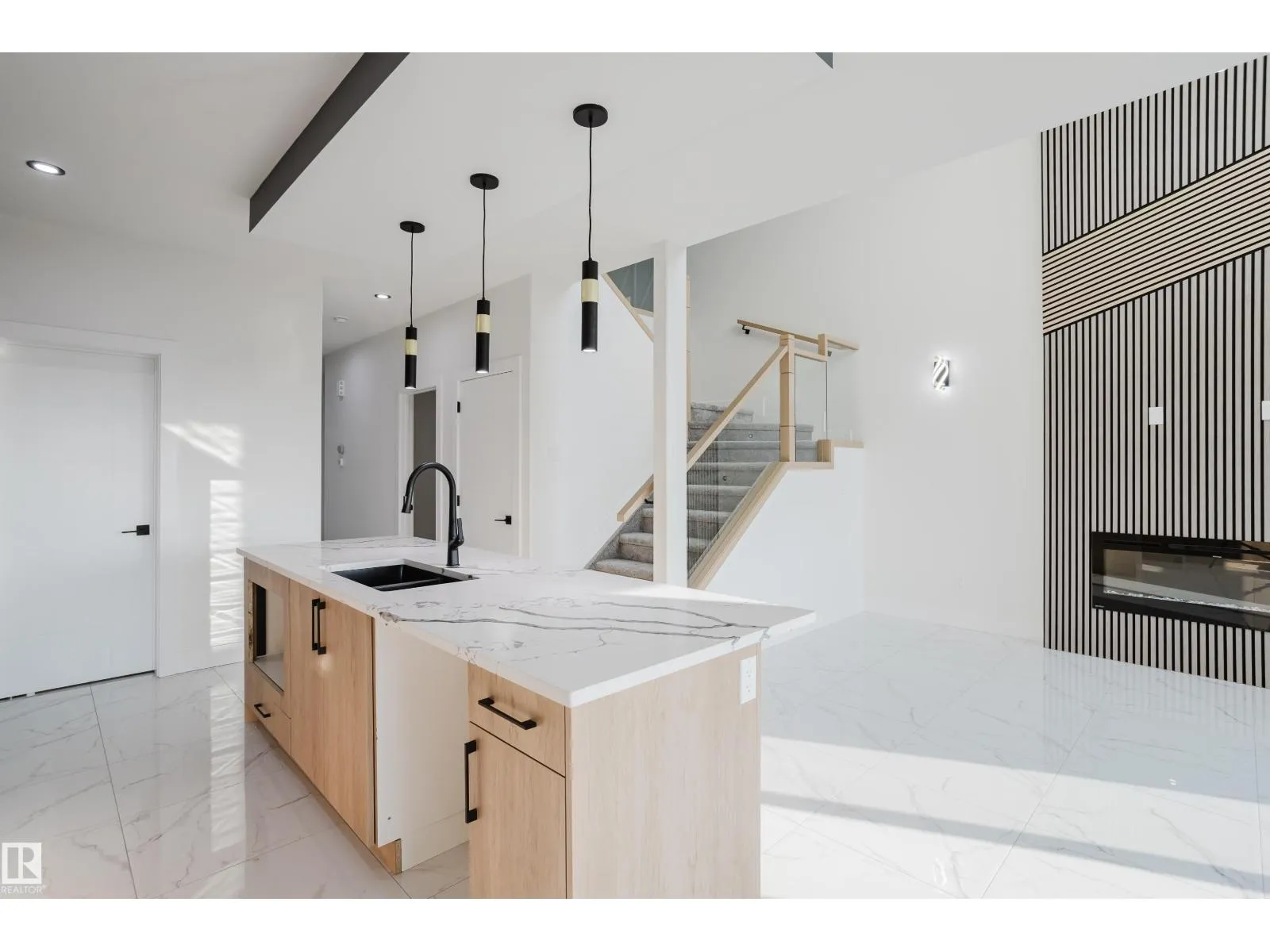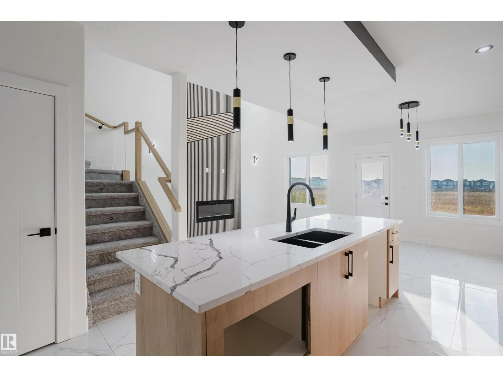 Located in the desirable and family-friendly Alces community, this Destino model offers a spacious and functional layout with thoughtful upgrades throughout. The main floor features sleek tile flooring that enhances the modern aesthetic, along with a den and a full bathroom with a standing shower, ideal for a home office or guest use. The chef-inspired kitchen extends into the dining area and includes a walkthrough spice kitchen for added storage and meal preparation space. The great room is open to above, showcasing elegant design and a built-in fireplace that creates a welcoming setting for everyday living and entertaining. Upstairs, there are three spacious bedrooms, including a primary suite with a five-piece ensuite featuring dual sinks, a soaker tub, a tiled shower, and a walk-in closet. A custom accent wall adds character, while a large bonus room and upper-level laundry provide extra convenience. A side entrance to the basement offers potential for future development. (id:27476)