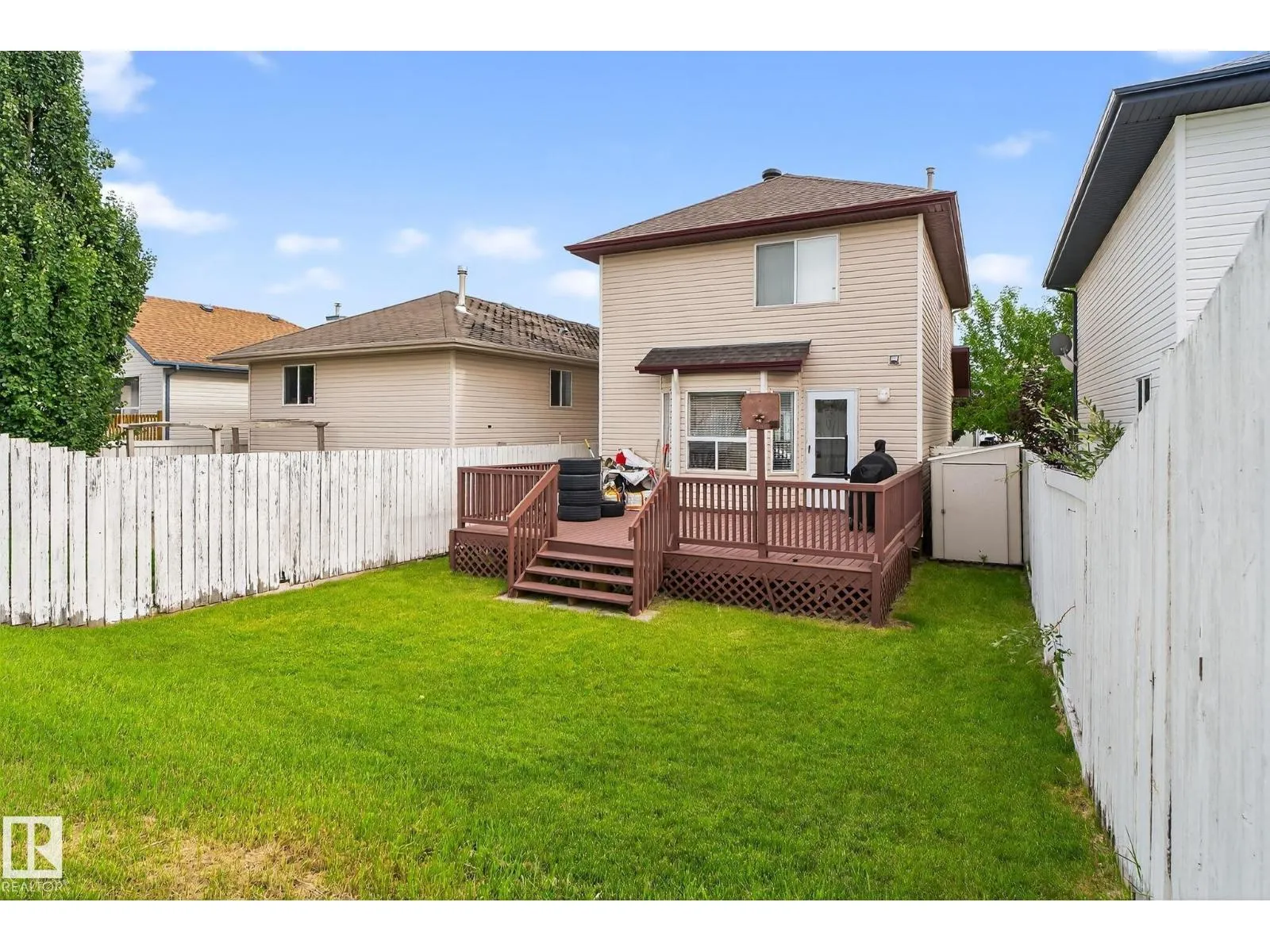 Immaculately Maintained 2-Storey in Desirable Wild Rose! Tucked away on a quiet crescent, this spacious home offers a perfect blend of comfort and convenience. The main floor features fresh paint, a bright living room with cozy gas fireplace, functional kitchen, and a convenient half bath. Upstairs, you'll find 3 generously sized bedrooms including a primary with ensuite, plus an additional full bathroom. The fully finished basement adds even more living spaceâcomplete with a full bathroom and rec area perfect for a media room or family gatherings. This home is loaded with major upgrades: high-efficiency furnace and hot water tank (2021), rubber shingles (2020), central AC (2021), central humidifier, washer/dryer (Maytag, 2021), GE fridge (2021), bathroom flooring and basement bath (2023), attic insulation upgrade (2024), and a newly installed Apco-X Central Air Purifier (2025) with lifetime warranty! Location canât be beatâwalking distance to The Meadows Shopping Centre, public transportation, and school (id:27476)