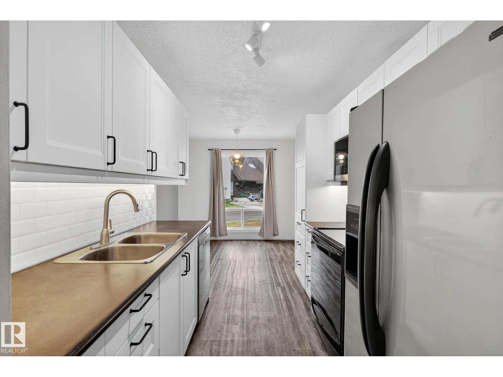 Welcome to Balmoral Lane ! This updated 2-storey townhouse offers 1142 sq ft of inviting living space BACKING ONTO SAKAW PARK! Upstairs you'll find a FULLY RENOVATED 4piece bath ( 2025 ), and three comfortable bedrooms all together on one level along with a huge skylight. The main floor features a spacious living room with an electric fireplace, dining area, and a RENOVATED KITCHEN with newer cabinets. Direct access is available through the back door to your PRIVATE FENCED YARD complete with red brick patio and a handy storage shed. The finished lower level adds a versatile recreational space with family room area, a wet bar, along with laundry and furnace room. MAJOR UPGRADES include FURNACE & AIR CONDITIONER ( 2024 ), SIDING, NEWER WINDOWS, HWT, FLOORING and SHINGLES. Two outdoor parking stalls complete the package. Immediate possession is available! Located close to schools, shopping and all amenities this move-in ready home offers comfort, peace of mind, and a park like lifestyle you will love ! (id:27476)
