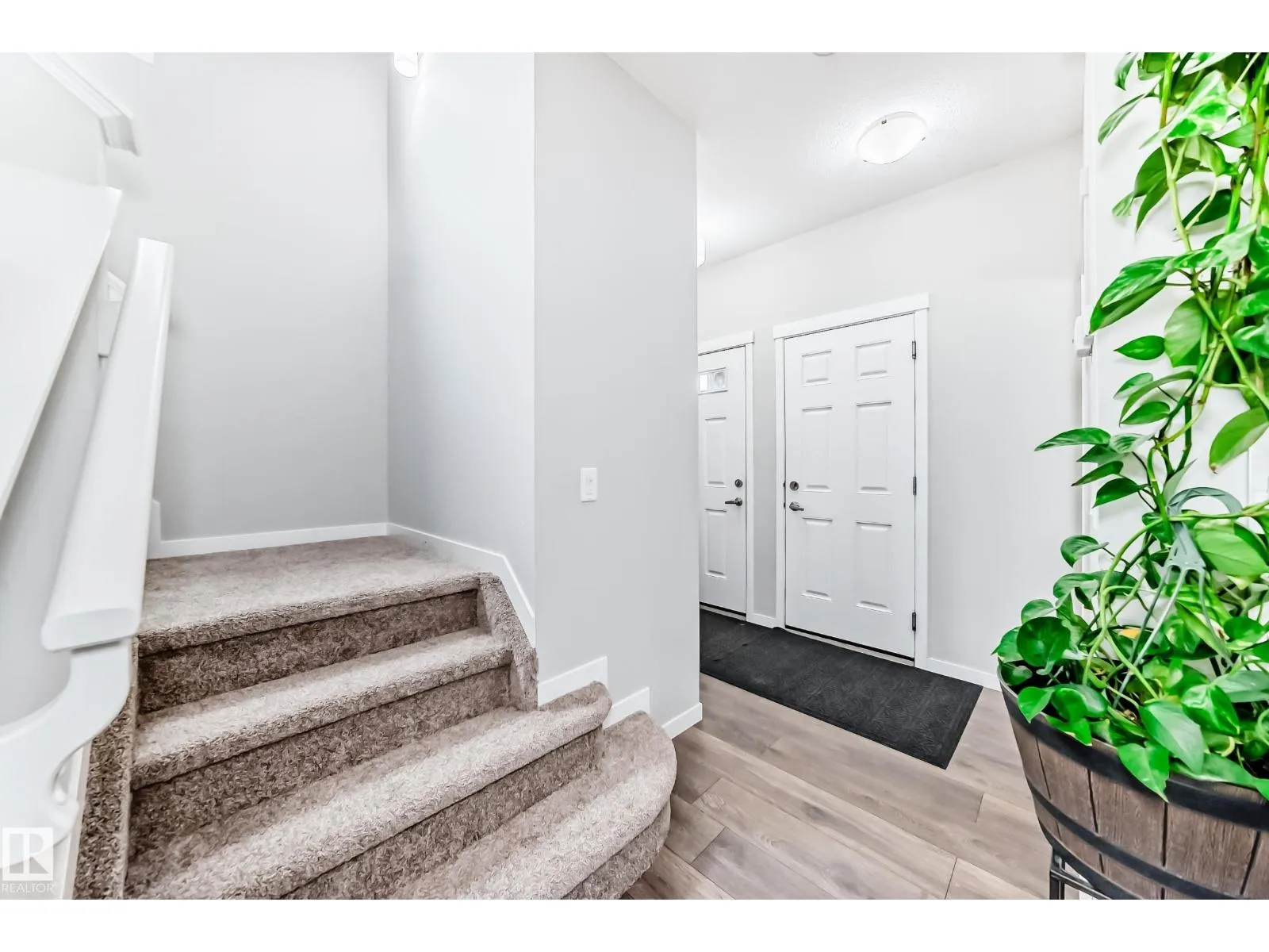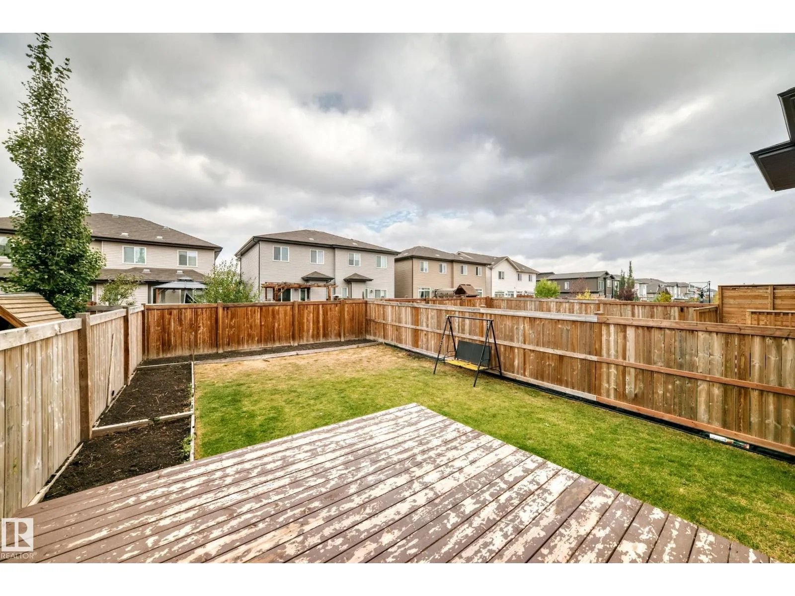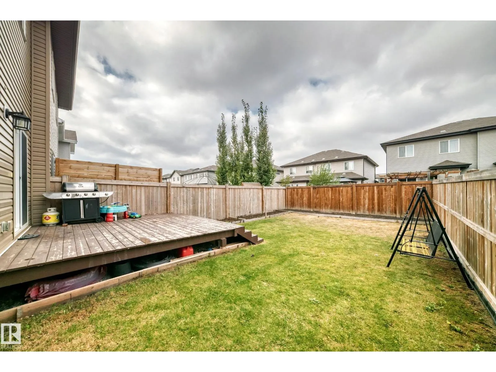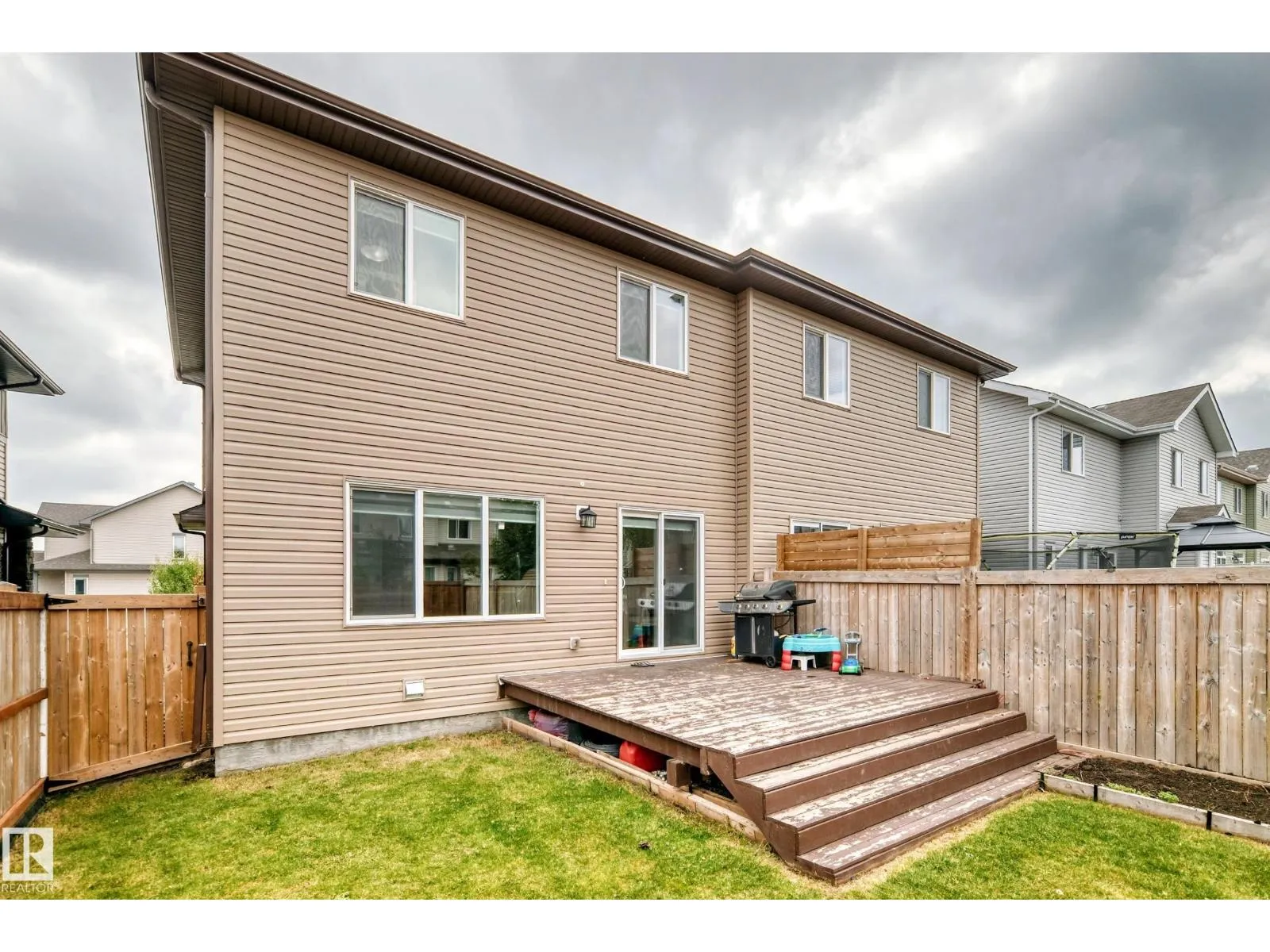 Spacious well-kept 1640 sq ft two storey home with a fresh coat of paint and new carpets. Three bedroom, three bath home with room to install a separate enterance in the quiet community of Rapperswill in North Edmonton. 9 ft ceilings on the main floor, quartz countertops, stainless steel appliances, laminate flooring throughout. Open concept kitchen w/ a huge walk-in pantry! Bright living room and dining room with patio doors to a large deck & fenced large backyard. Upper floor has 3 bedrooms, full bathroom and a full laundry room w/ a sink. Master bedroom includes walk-in closet and 4 piece en suite. Full unspoiled basement. 24ft deep double garage w/ extended driveway at 27 ft. Minutes to shopping centers, restaurants, LA fitness, etc. Easy access to the Henday, playgrounds, walking trails, and ponds. (id:27476)