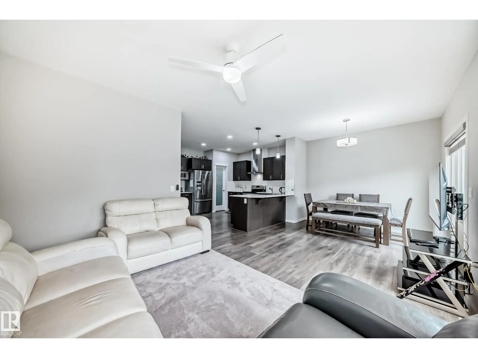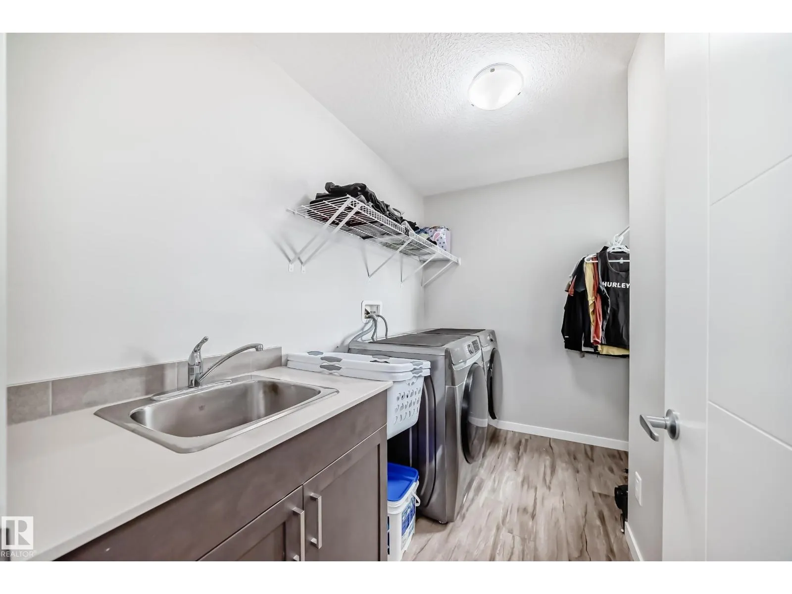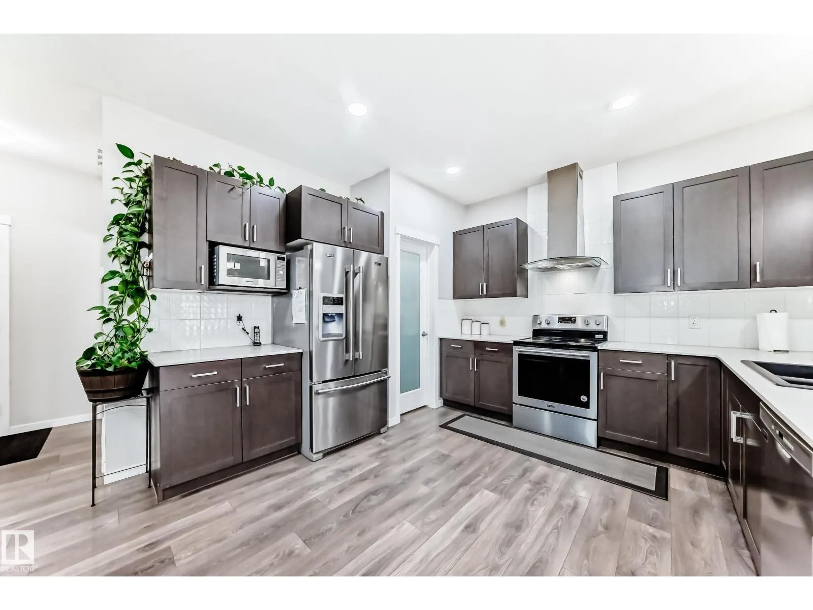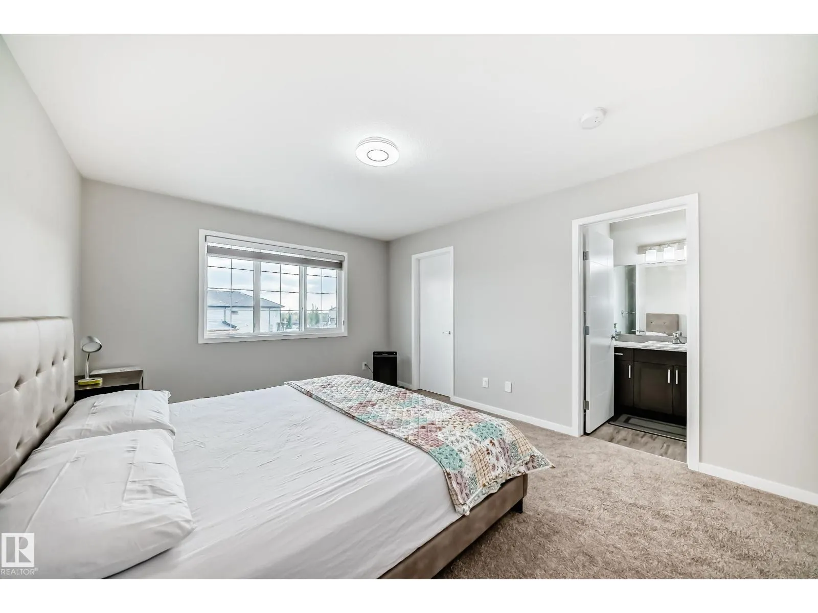 Spacious well-kept 1640 sq ft two storey home with a fresh coat of paint and new carpets. Three bedroom, three bath home with room to install a separate enterance in the quiet community of Rapperswill in North Edmonton. 9 ft ceilings on the main floor, quartz countertops, stainless steel appliances, laminate flooring throughout. Open concept kitchen w/ a huge walk-in pantry! Bright living room and dining room with patio doors to a large deck & fenced large backyard. Upper floor has 3 bedrooms, full bathroom and a full laundry room w/ a sink. Master bedroom includes walk-in closet and 4 piece en suite. Full unspoiled basement. 24ft deep double garage w/ extended driveway at 27 ft. Minutes to shopping centers, restaurants, LA fitness, etc. Easy access to the Henday, playgrounds, walking trails, and ponds. (id:27476)