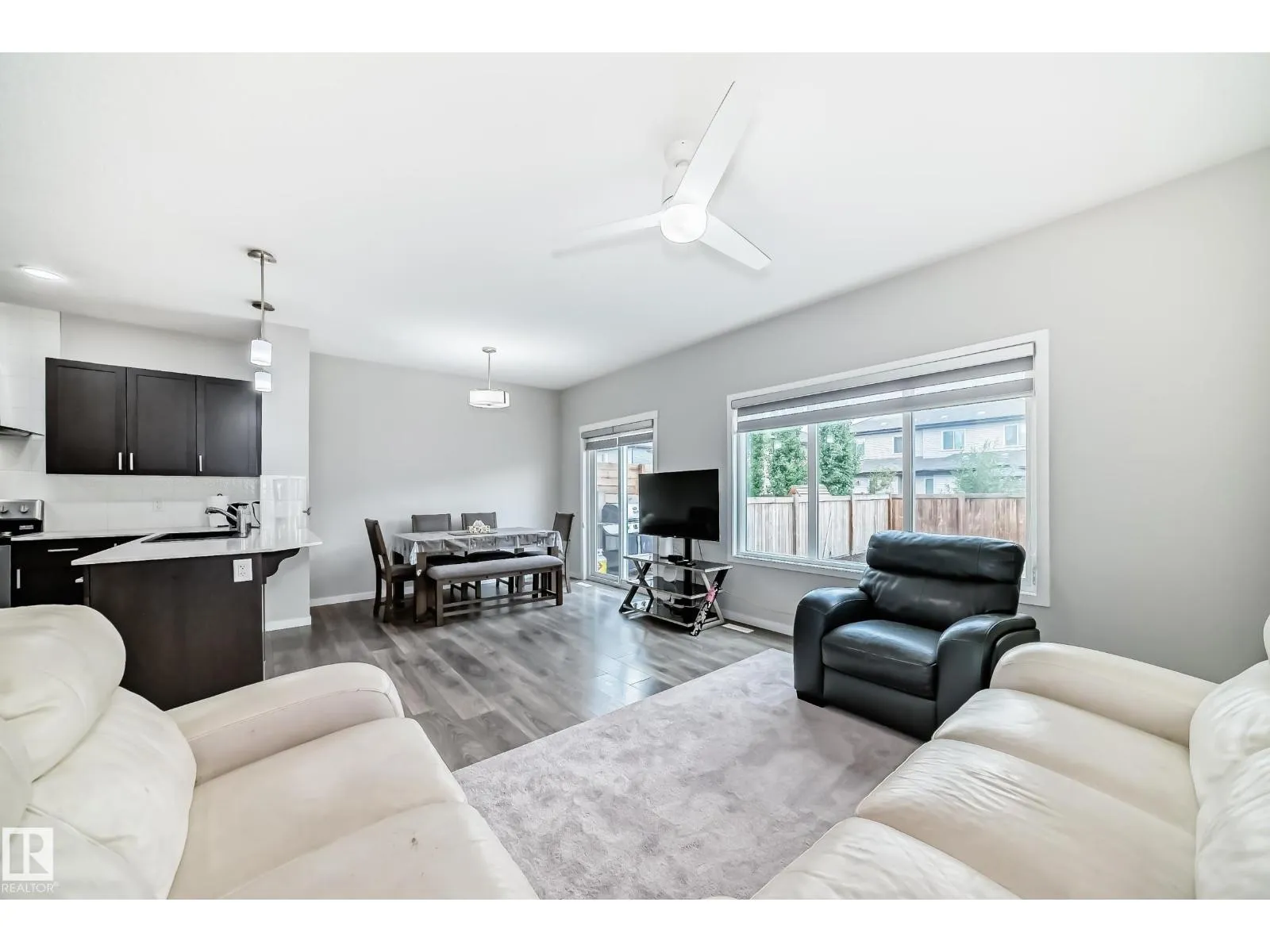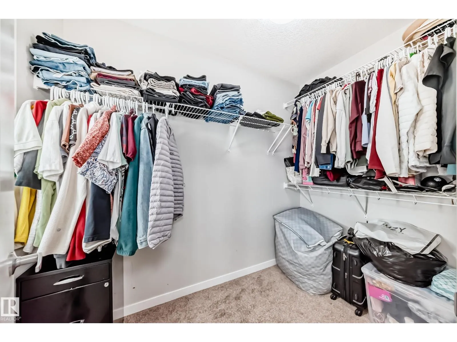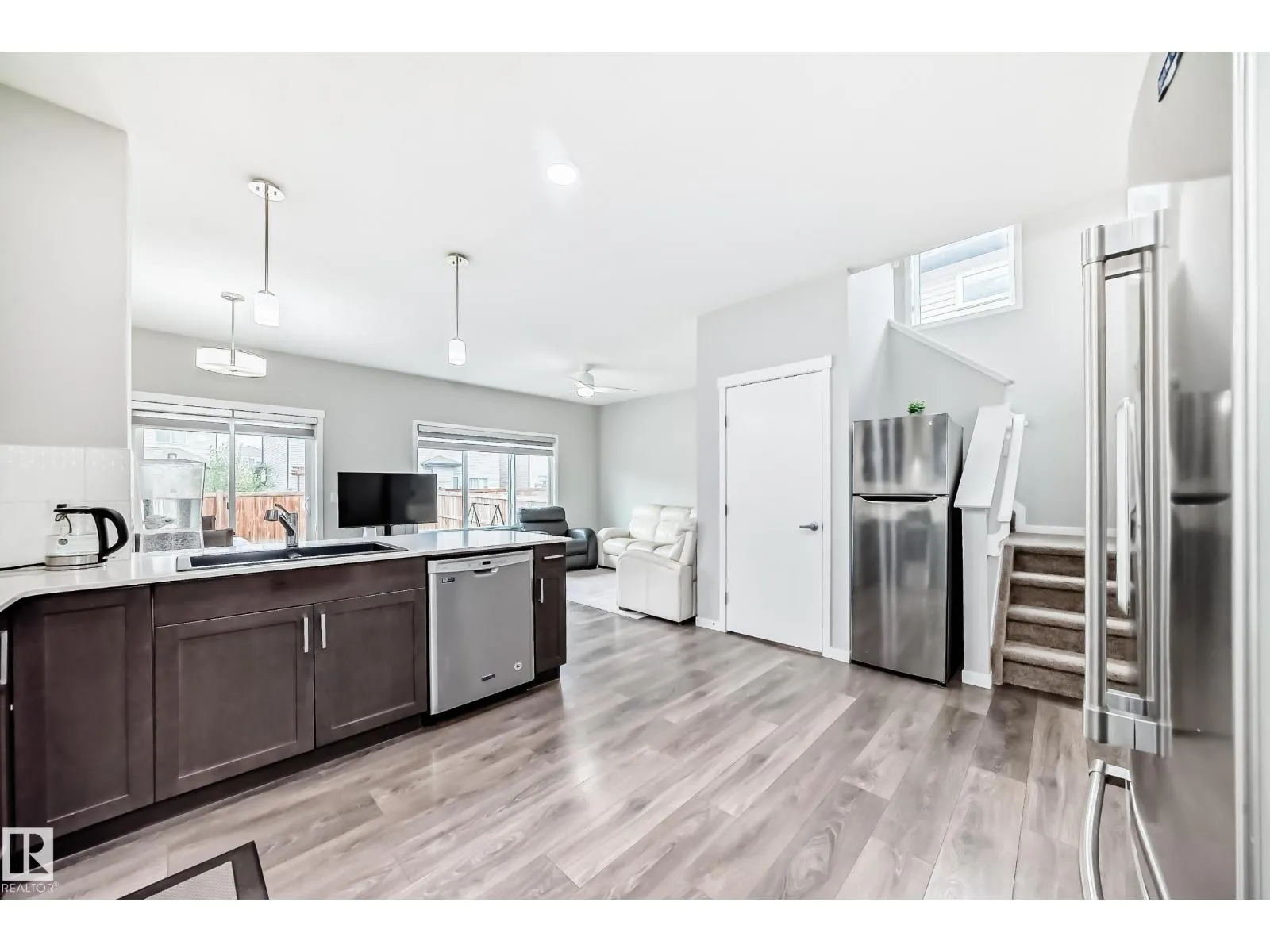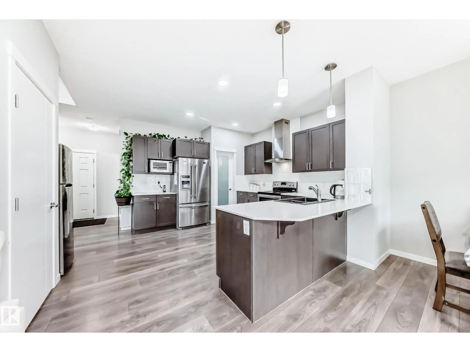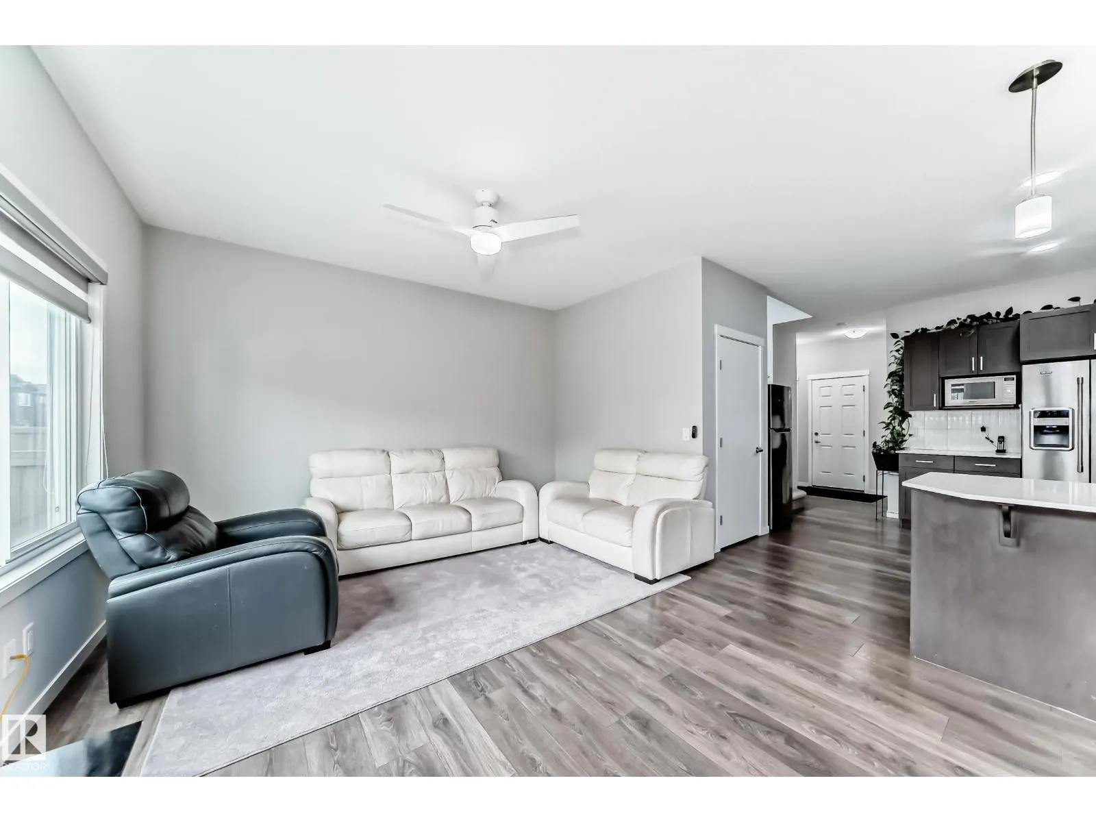 Spacious well-kept 1640 sq ft two storey home with a fresh coat of paint and new carpets. Three bedroom, three bath home with room to install a separate enterance in the quiet community of Rapperswill in North Edmonton. 9 ft ceilings on the main floor, quartz countertops, stainless steel appliances, laminate flooring throughout. Open concept kitchen w/ a huge walk-in pantry! Bright living room and dining room with patio doors to a large deck & fenced large backyard. Upper floor has 3 bedrooms, full bathroom and a full laundry room w/ a sink. Master bedroom includes walk-in closet and 4 piece en suite. Full unspoiled basement. 24ft deep double garage w/ extended driveway at 27 ft. Minutes to shopping centers, restaurants, LA fitness, etc. Easy access to the Henday, playgrounds, walking trails, and ponds. (id:27476)