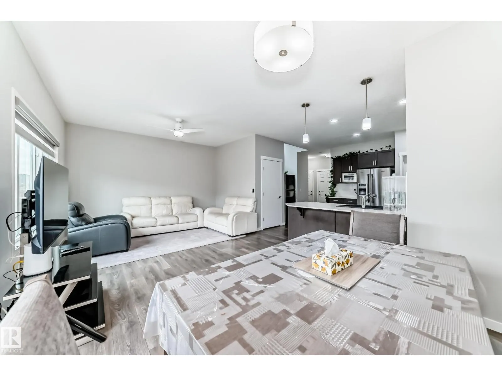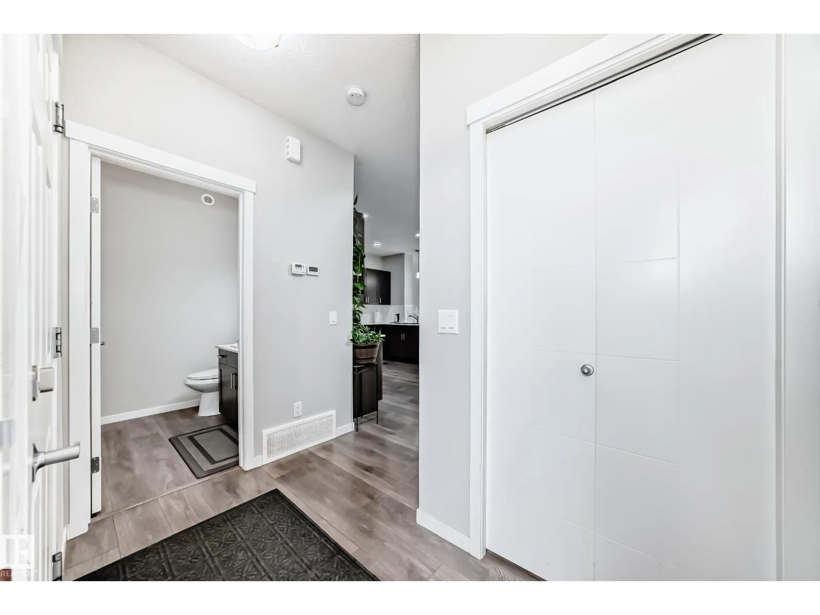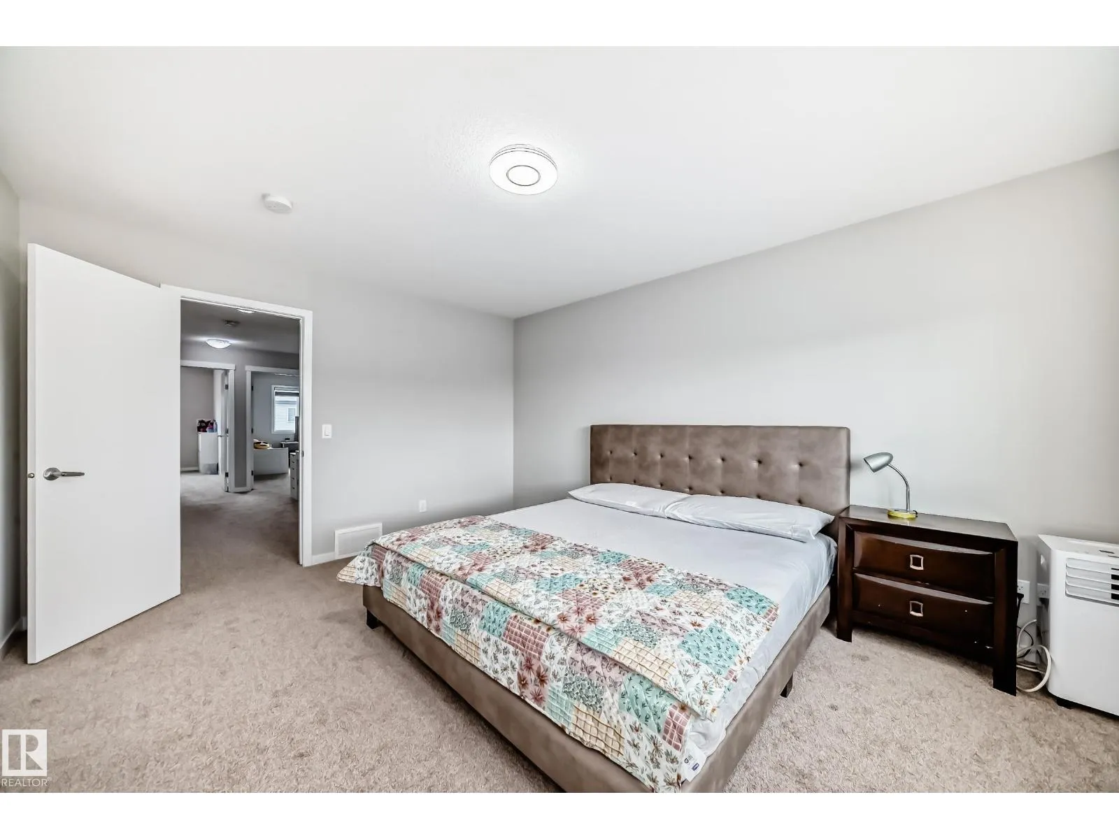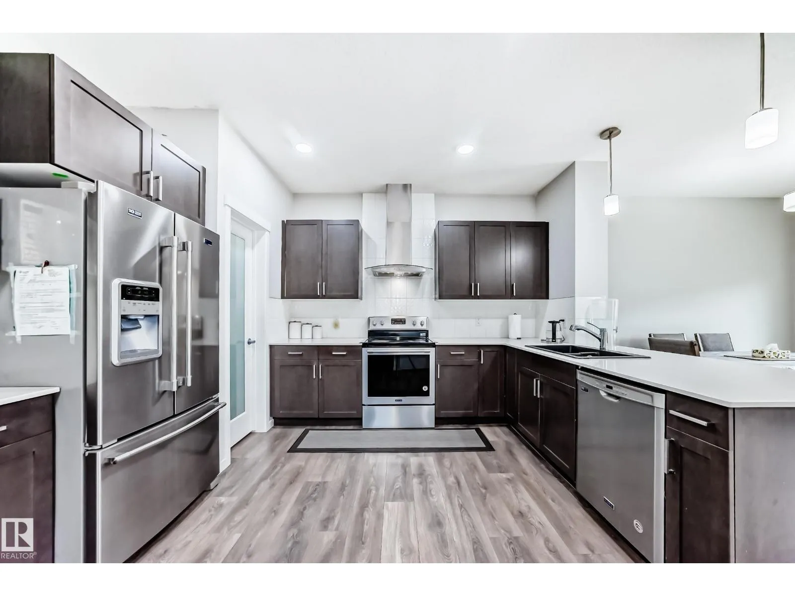 Spacious well-kept 1640 sq ft two storey home with a fresh coat of paint and new carpets. Three bedroom, three bath home with room to install a separate enterance in the quiet community of Rapperswill in North Edmonton. 9 ft ceilings on the main floor, quartz countertops, stainless steel appliances, laminate flooring throughout. Open concept kitchen w/ a huge walk-in pantry! Bright living room and dining room with patio doors to a large deck & fenced large backyard. Upper floor has 3 bedrooms, full bathroom and a full laundry room w/ a sink. Master bedroom includes walk-in closet and 4 piece en suite. Full unspoiled basement. 24ft deep double garage w/ extended driveway at 27 ft. Minutes to shopping centers, restaurants, LA fitness, etc. Easy access to the Henday, playgrounds, walking trails, and ponds. (id:27476)