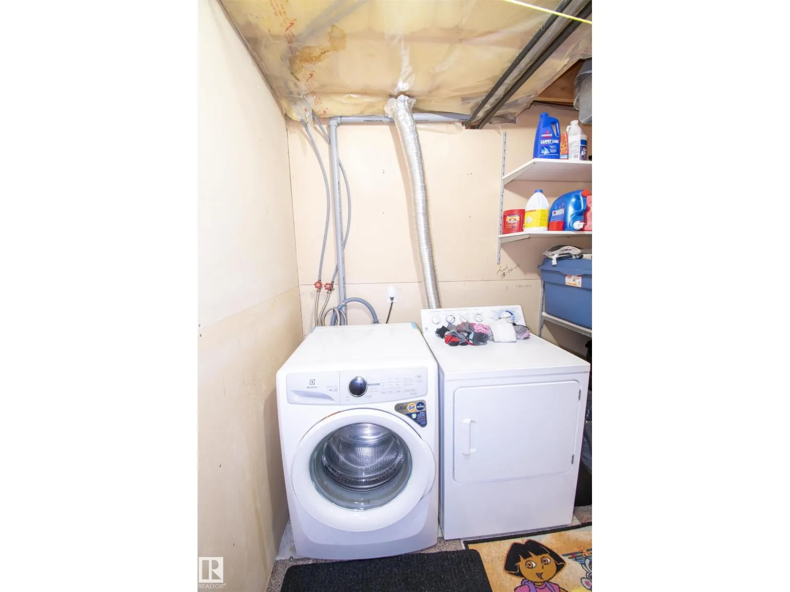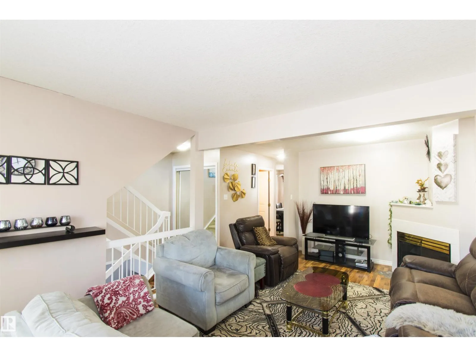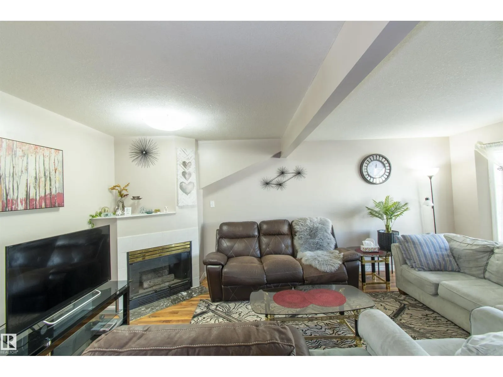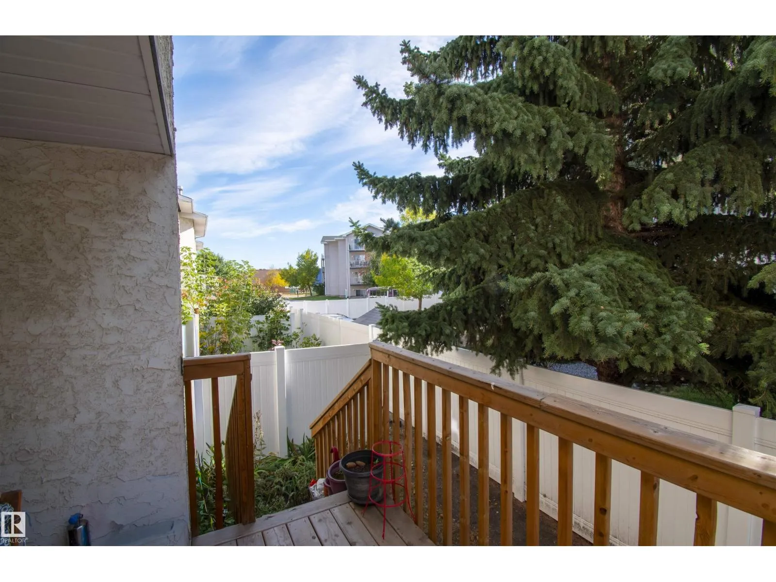The 2 bedrooms, 2.5 bathroom, 2 Storey townhouse in Terra Losa. Spacious floor plan with beautiful laminate floor throughout, the living area has a corner fireplace. Kitchen is bright, open to breakfast nook with large window and access to raised deck. The upper level has 2 bedrooms with lots of closet space, a master suite with full ensuite, jetted tub and shower, His and Hers closets with mirrored doors and organizers, Basement fully finished with recreation room, also with storage and in-unit laundry. Single attached garage- access directly from unit. Great poperty to be owned, in a self managed complex. Easy access to West Edmonton Mall, shopping center, schools, parks, restaurants, Anthony Henday and many more. Great property in a great complex and location. (id:27476)