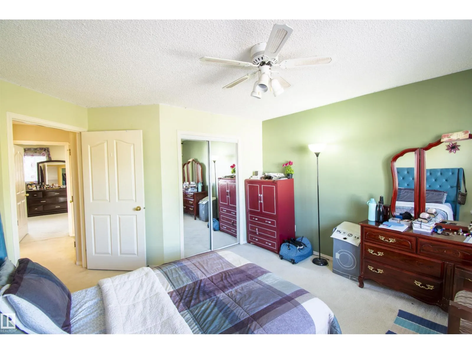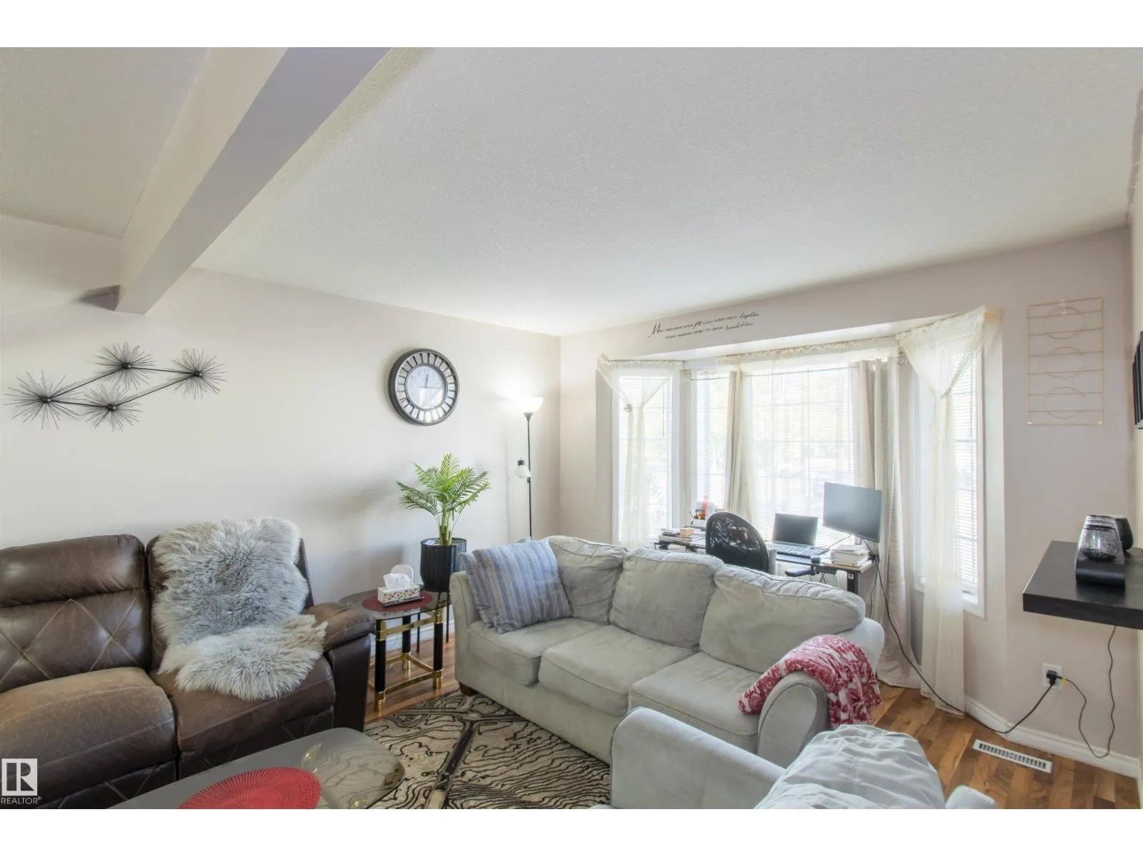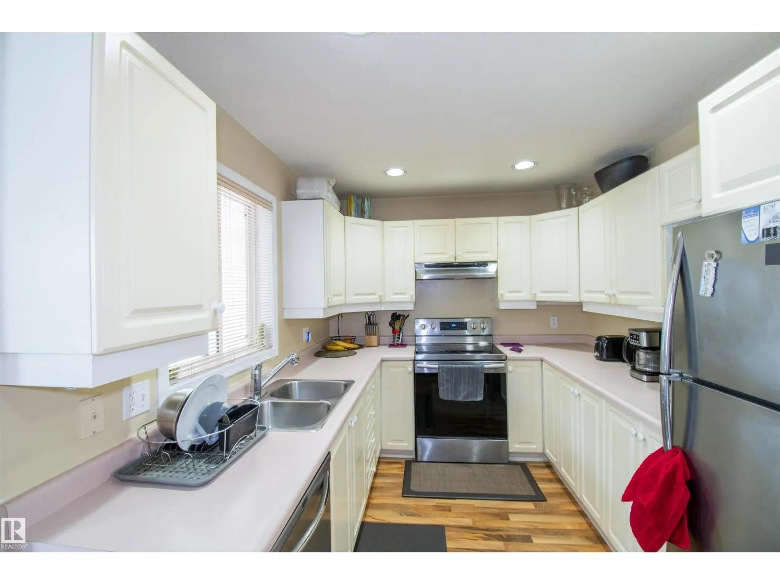 The 2 bedrooms, 2.5 bathroom, 2 Storey townhouse in Terra Losa. Spacious floor plan with beautiful laminate floor throughout, the living area has a corner fireplace. Kitchen is bright, open to breakfast nook with large window and access to raised deck. The upper level has 2 bedrooms with lots of closet space, a master suite with full ensuite, jetted tub and shower, His and Hers closets with mirrored doors and organizers, Basement fully finished with recreation room, also with storage and in-unit laundry. Single attached garage- access directly from unit. Great poperty to be owned, in a self managed complex. Easy access to West Edmonton Mall, shopping center, schools, parks, restaurants, Anthony Henday and many more. Great property in a great complex and location. (id:27476)