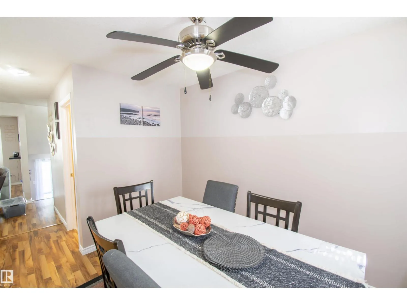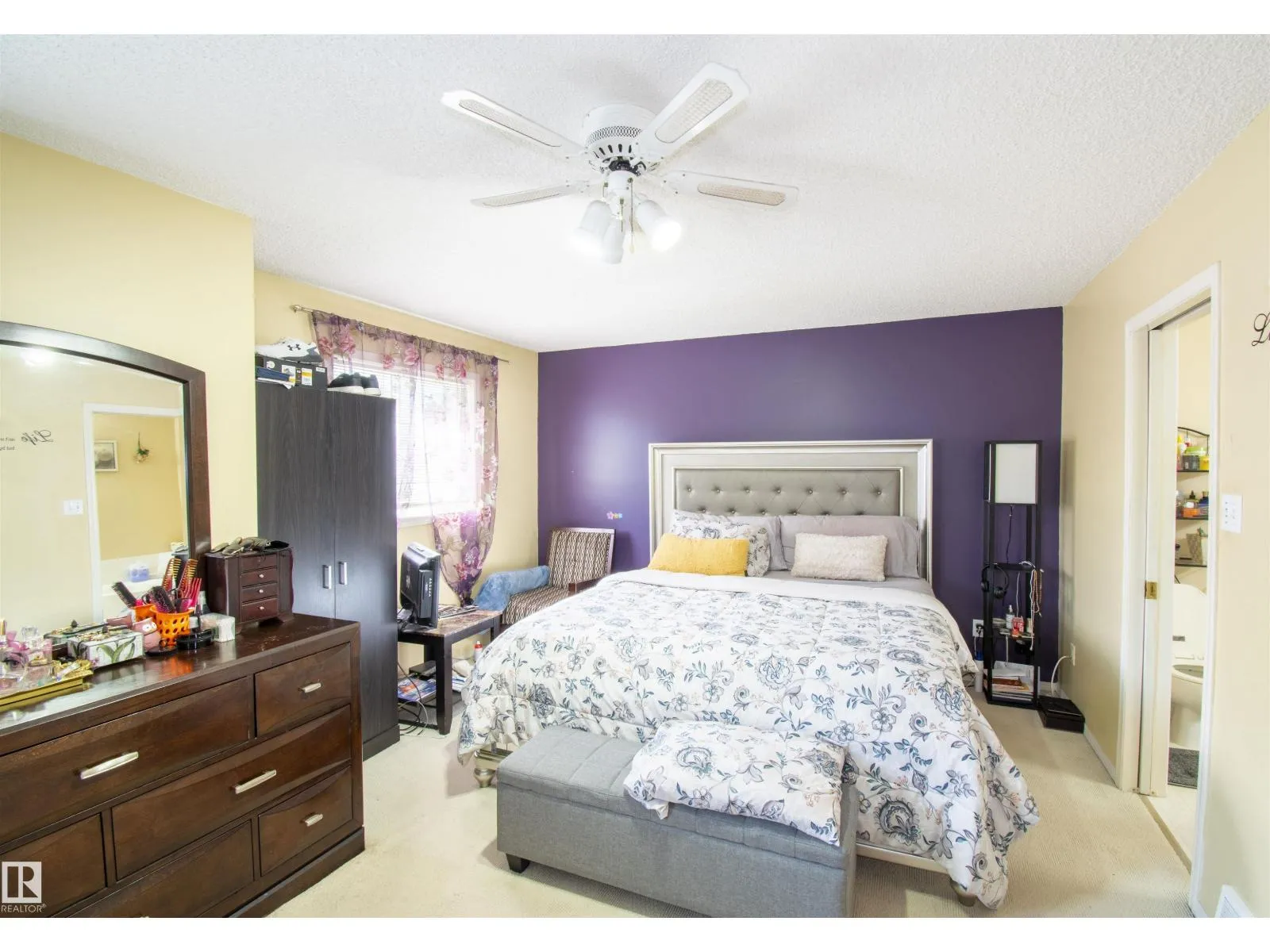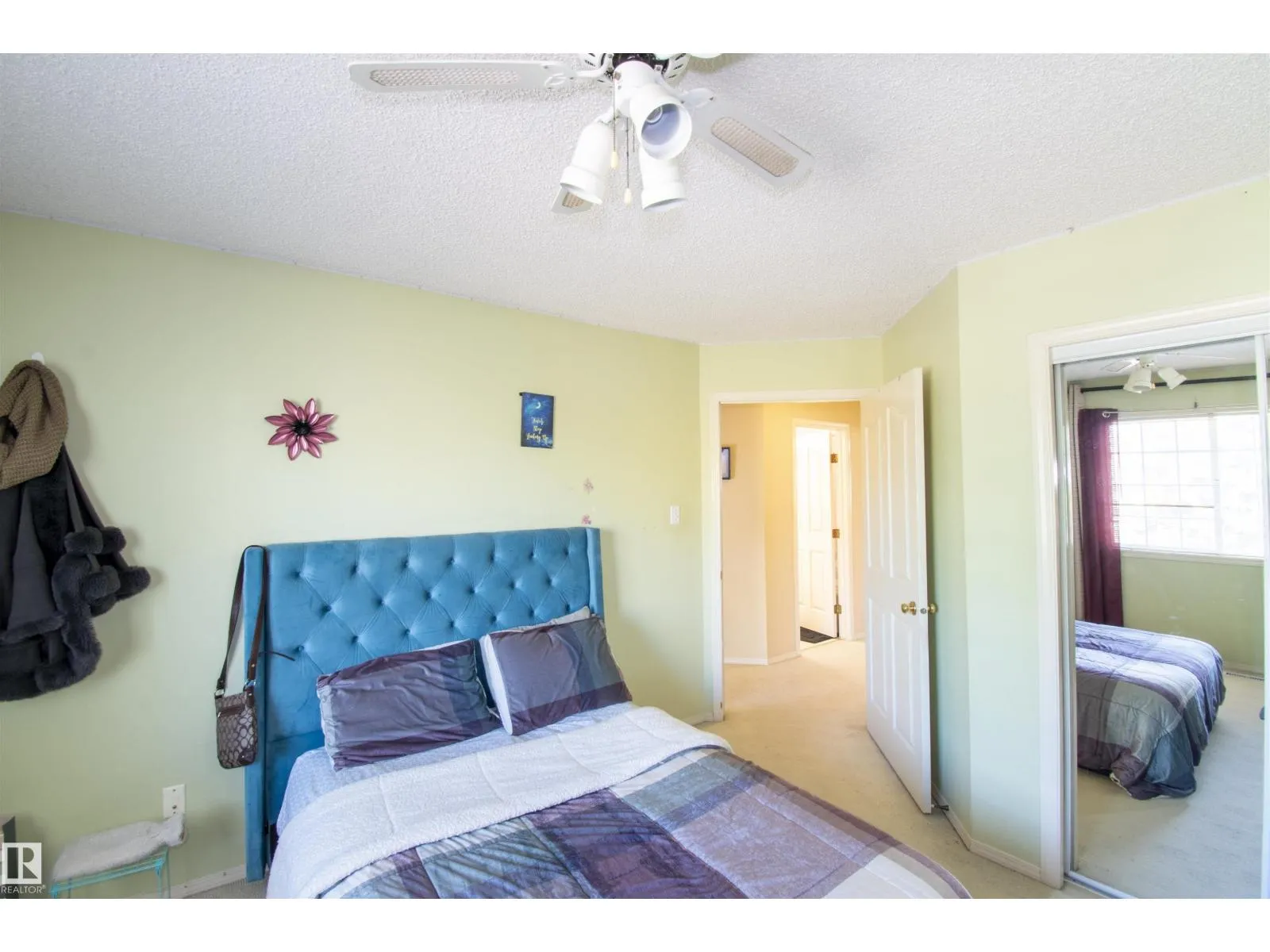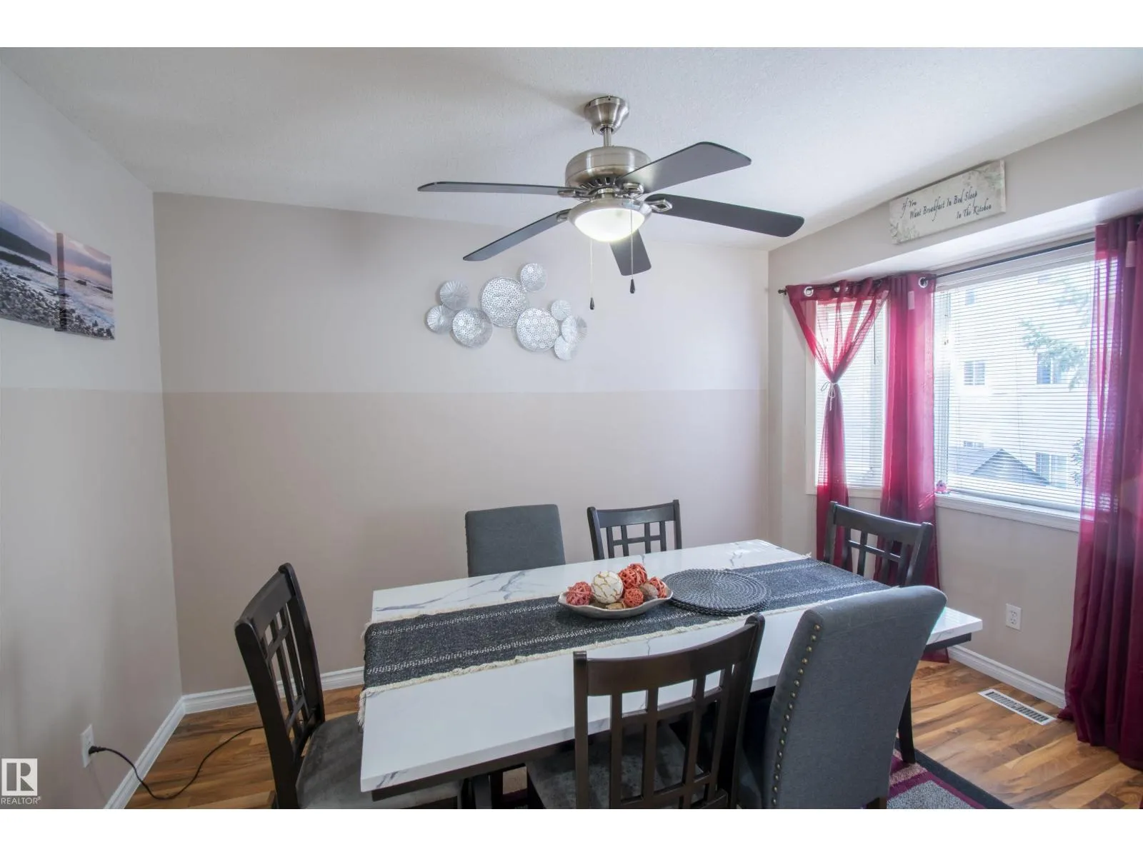 The 2 bedrooms, 2.5 bathroom, 2 Storey townhouse in Terra Losa. Spacious floor plan with beautiful laminate floor throughout, the living area has a corner fireplace. Kitchen is bright, open to breakfast nook with large window and access to raised deck. The upper level has 2 bedrooms with lots of closet space, a master suite with full ensuite, jetted tub and shower, His and Hers closets with mirrored doors and organizers, Basement fully finished with recreation room, also with storage and in-unit laundry. Single attached garage- access directly from unit. Great poperty to be owned, in a self managed complex. Easy access to West Edmonton Mall, shopping center, schools, parks, restaurants, Anthony Henday and many more. Great property in a great complex and location. (id:27476)