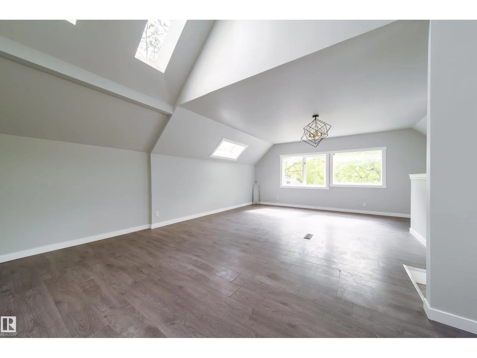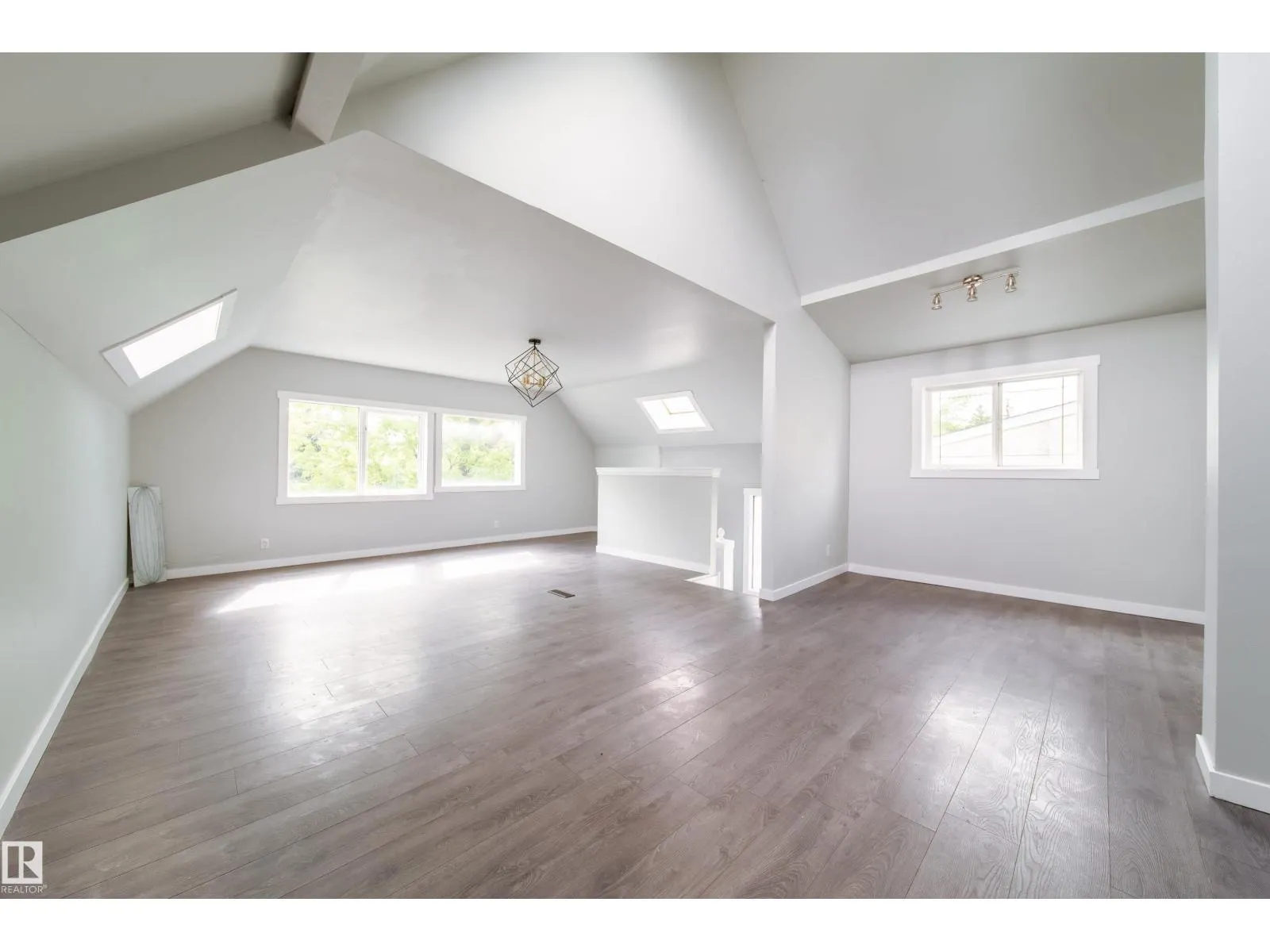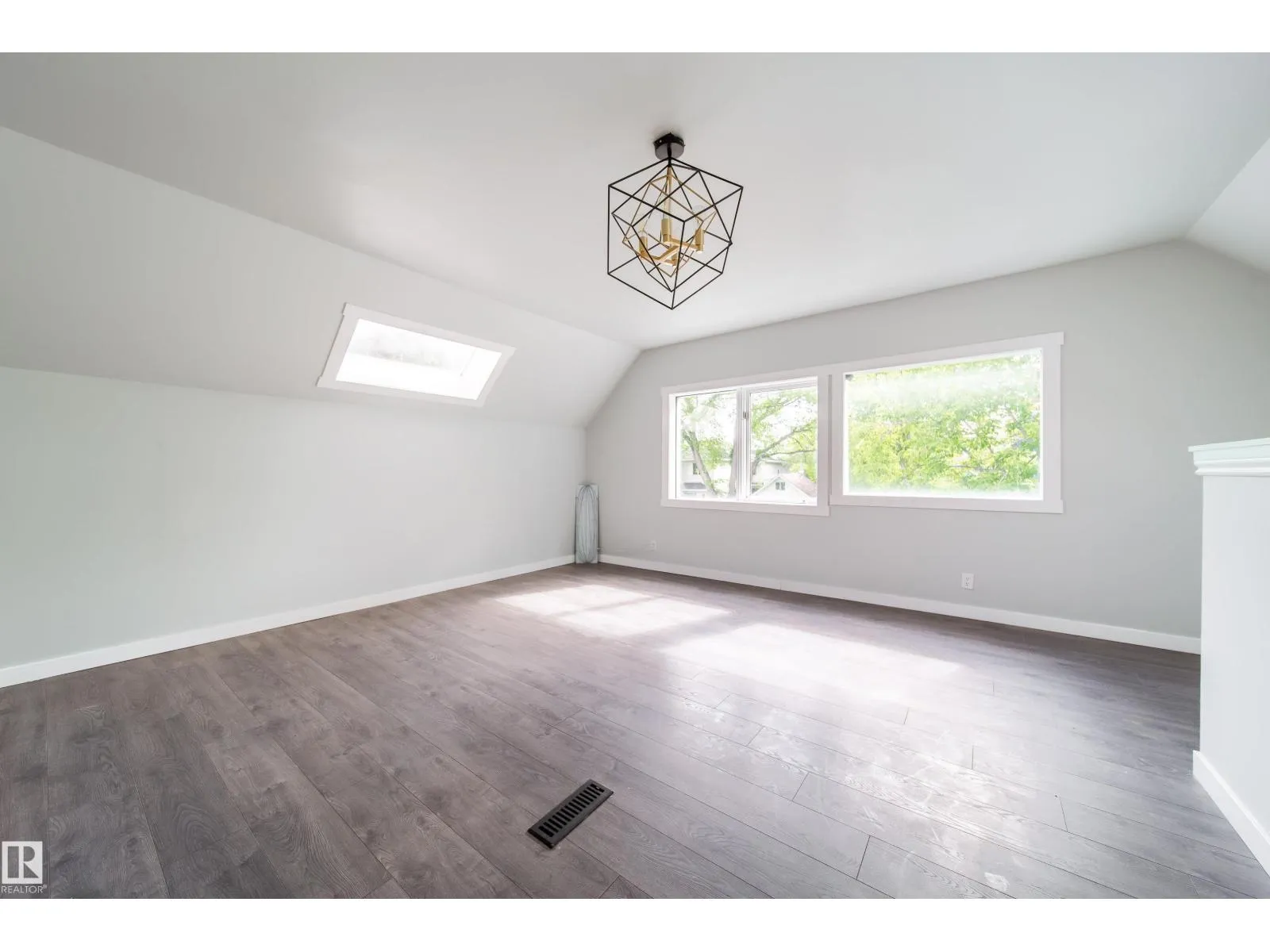Welcome to East Wood! Nestled on a quiet block. This charming 2-storey home is move in ready. With over 1500f livable space, RARE double ATTACHED garage she offers all the space needed. As you walk in you will love the boot room/porch perfect for taking in the west facing sun. The main floor front room would be a great office or additional bedroom and you will love the large windows throughout the main floor open concept dining, living room & kitchen with its updated cabinets, counters and appliances. As you make your way to the second floor, look up to the vaulted ceilings and skylights creating a naturally lit bonus room. With 2 large bedrooms and another bathroom, this is the perfect family home or rental. Updates in the last 6 years include: HWT, Furnace, Shingles, Appliances, Flooring, Windows, Kitchen & Cabinets. Close to schools, parks, public transit. Close to Yellowhead makes it an easy access to the downtown. PS. Huge lot. She is waiting for you. Welcome Home!! (id:27476)