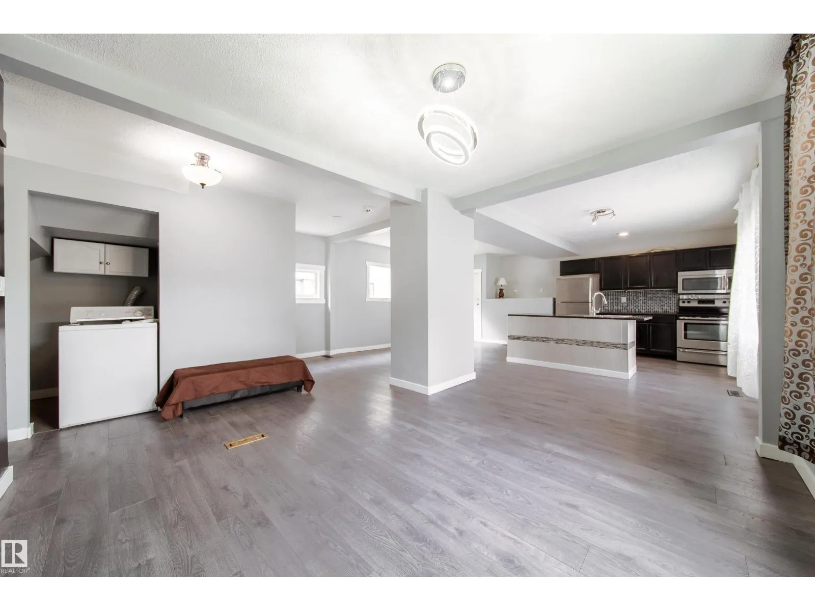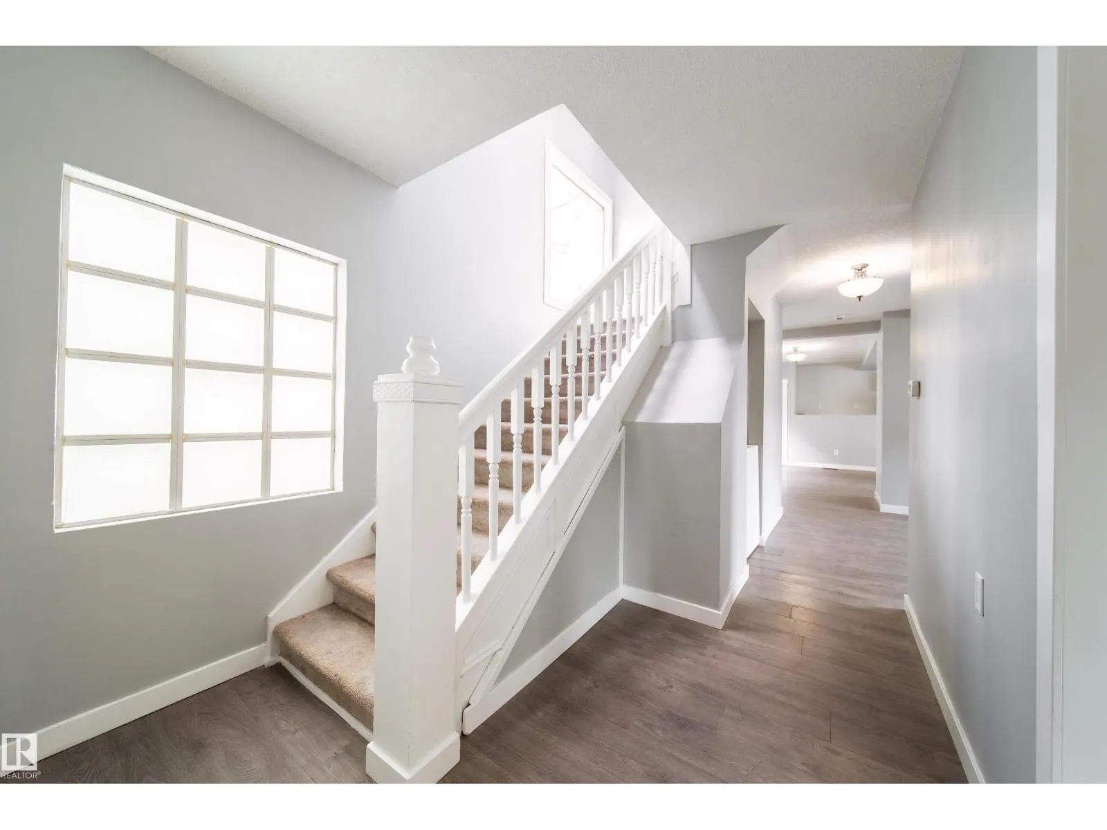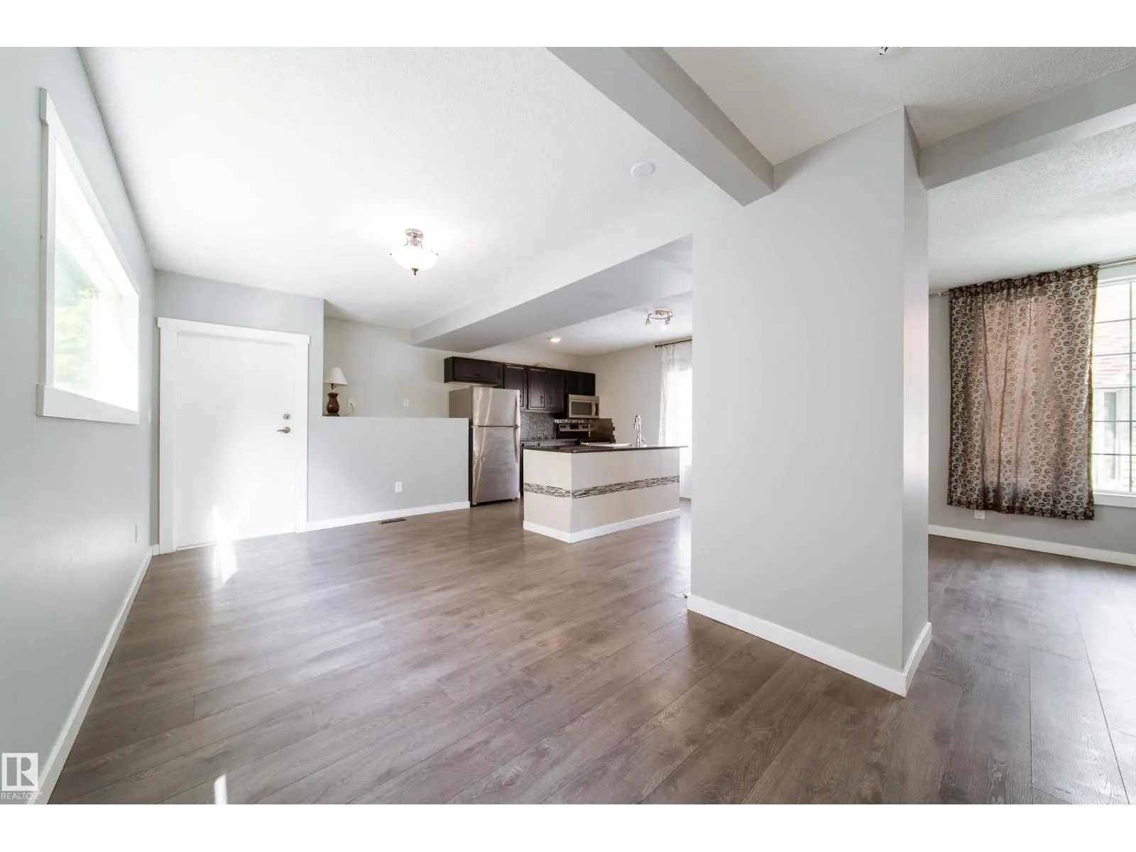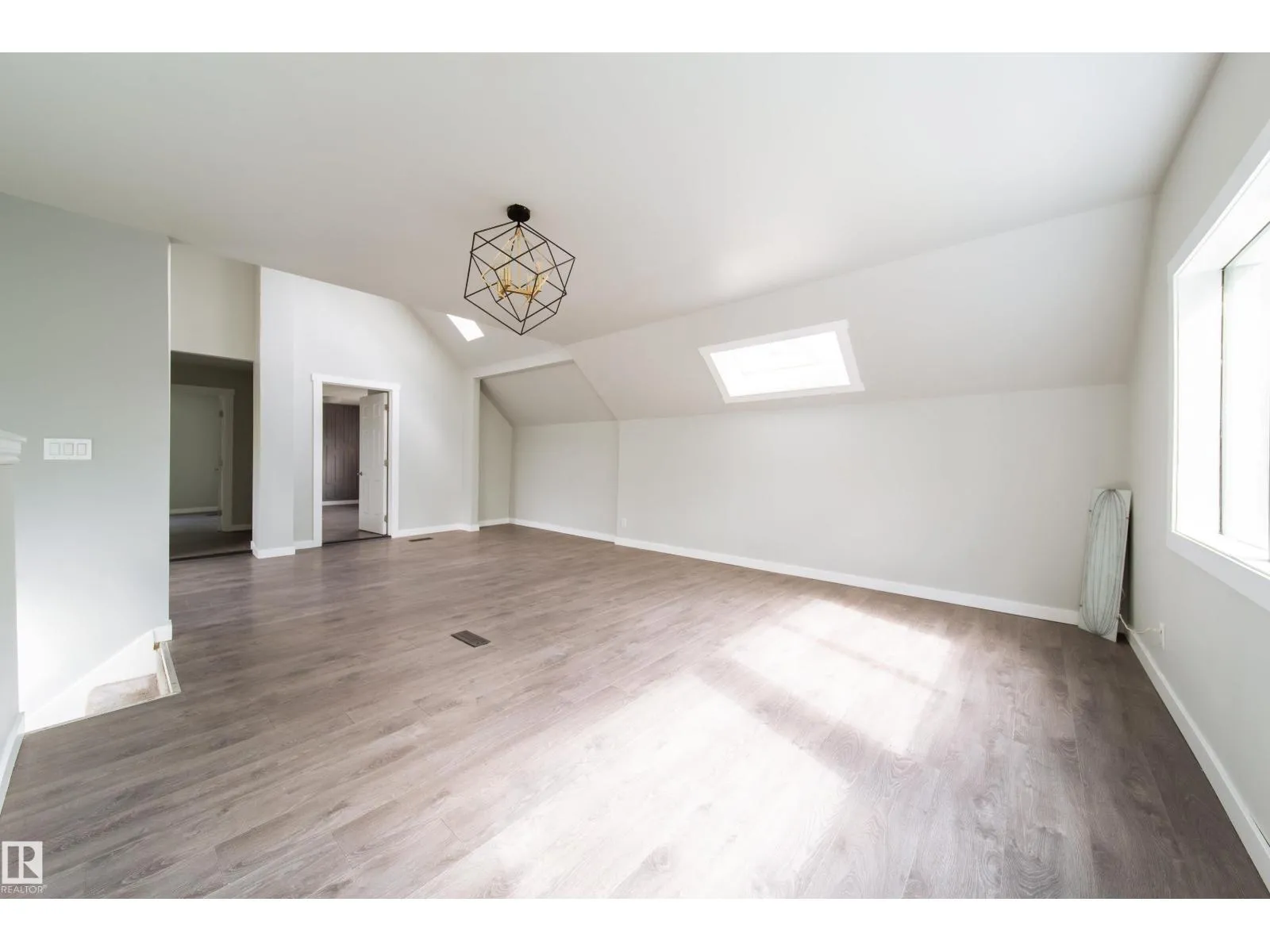 Welcome to East Wood! Nestled on a quiet block. This charming 2-storey home is move in ready. With over 1500f livable space, RARE double ATTACHED garage she offers all the space needed. As you walk in you will love the boot room/porch perfect for taking in the west facing sun. The main floor front room would be a great office or additional bedroom and you will love the large windows throughout the main floor open concept dining, living room & kitchen with its updated cabinets, counters and appliances. As you make your way to the second floor, look up to the vaulted ceilings and skylights creating a naturally lit bonus room. With 2 large bedrooms and another bathroom, this is the perfect family home or rental. Updates in the last 6 years include: HWT, Furnace, Shingles, Appliances, Flooring, Windows, Kitchen & Cabinets. Close to schools, parks, public transit. Close to Yellowhead makes it an easy access to the downtown. PS. Huge lot. She is waiting for you. Welcome Home!! (id:27476)
