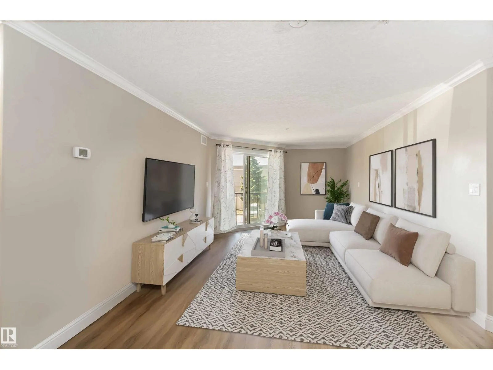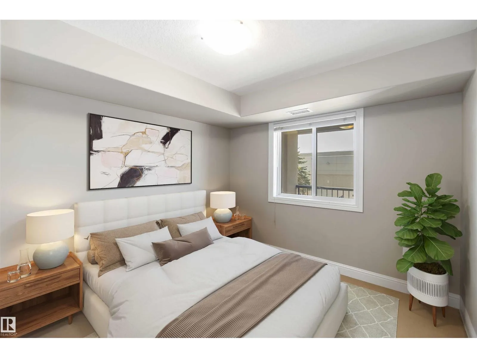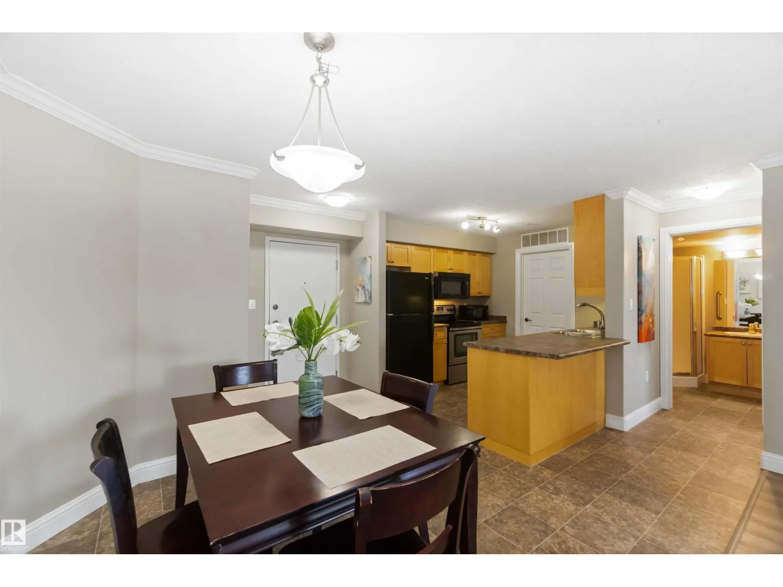 This 2-bedroom, 2-bathroom condo presents an excellent investment or future home opportunity. Currently tenant-occupied under a 12-month lease, itâs perfect for investors seeking a property with reliable income or for empty nesters planning to move in once the lease ends. Featuring a functional open-concept layout with crown moldings, California knockdown ceilings. This home blends style with practicality. The spacious kitchen boasts rich maple cabinetry, black appliances, a breakfast bar, and a dedicated dining area. The living room is upgraded with laminate flooring, while the bedrooms feature cozy wool carpets. The primary suite comfortably fits a king bed and includes a walk-in closet and a 5-piece ensuite. A second bedroom and full bath provide flexibility for family, guests, or a home office. Enjoy southwest-facing exposure for abundant natural light, in-suite laundry, heated underground parking with a storage cage and balcony. Pet-friendly, professionally managed building located close to amenities (id:27476)