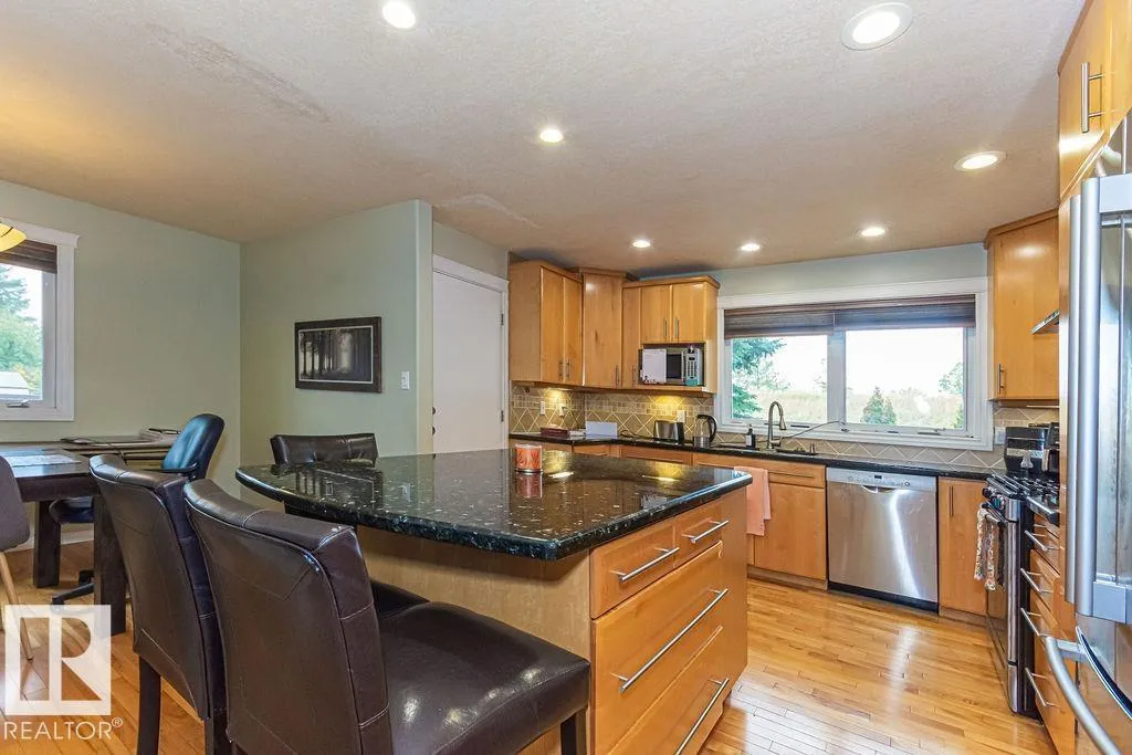 Unique upgraded bungalow! You canât judge a book by itâs cover & canât judge this home with a drive-by. The upgrades blend the old with the new in this 2500+ square foot of living space offering 5 beds and 3 bath to make this a comfortable family home. Located in a quiet crescent with too many upgrades to mention on a Massive 659 sq m. lot. Upstairs you will find your dream kitchen, master bedroom with ensuite, additional 2 beds, full bath and Laundry. Some features include updated windows, newer shingles, levelled driveway, Hardwood Floors, Off Leash dog park in Backyard, private backyard with cement patio, fire pit area and powered shed, wood burning fireplaces (up and down). The SEPARATE ENTRY basement hosts a SECOND kitchen, SECOND living space, and 2 BRIGHT bedrooms with full bath, separate laundry, and stainless appliances, perfect for multigenerational families. Excellent location in close proximity to Millwoods Rec Centre, South Edmonton Common, Cineplex, Anthony Henday, Town Centre Mall, LRT. (id:27476)