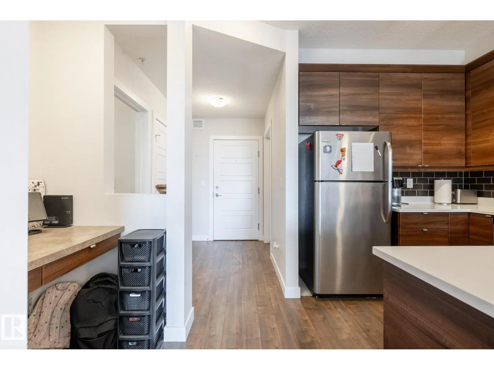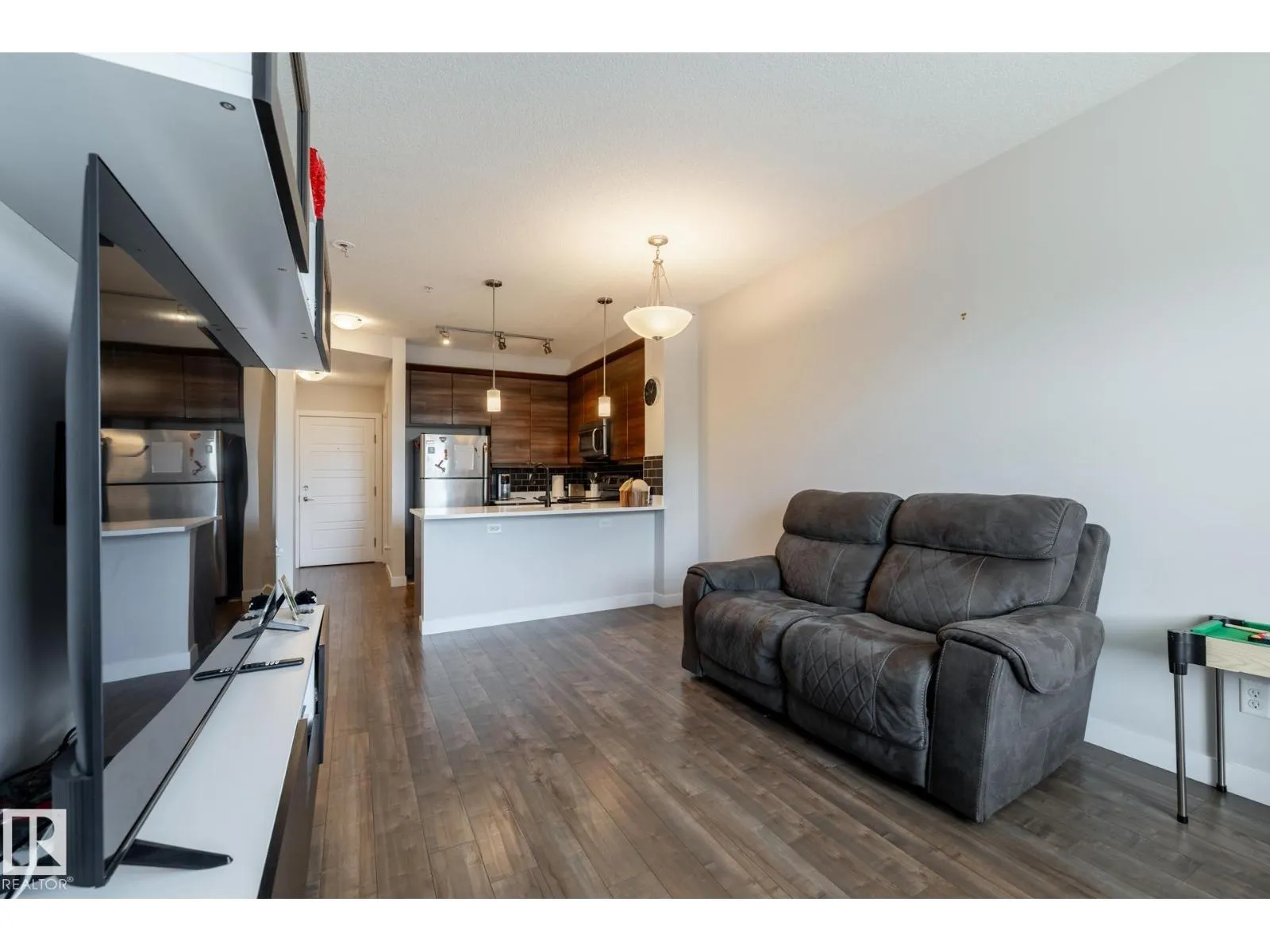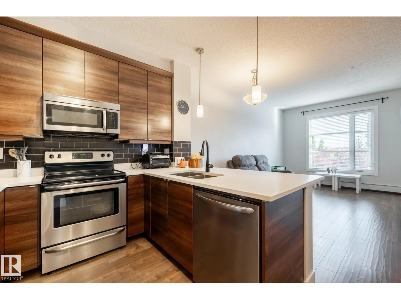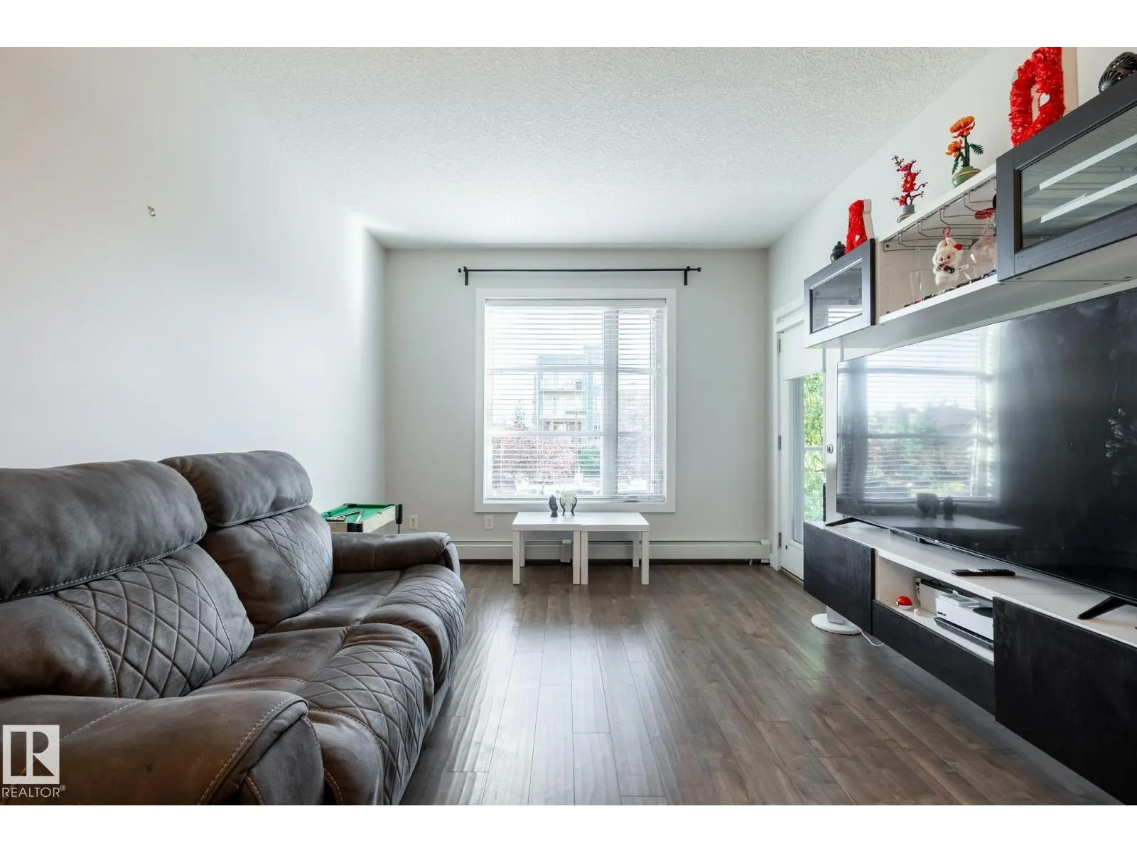 Welcome to life at The Ion in Ambleside, one of SW Edmontonâs most loved communities, where you can enjoy trails and parks right outside your door along with endless shopping + dining at the Currents of Windermere. This recently updated 2nd-floor condo feels bright and inviting with 9-foot ceilings, engineered hardwood floors & a seamless open layout. The updated kitchen shines with white quartz counters, while the bathroom carries the same elevated finishes + a modern tile surround. Your east-facing patio offers leafy views + a perfect sense of privacy. The bedroom is spacious with a walk-in closet, the laundry room has extra storage, and the built-in desk is ideal for work-from-home days. With heated underground parking, a storage unit, and building amenities including a gym, social room, picnic gazebo, and BBQ gas line, this home truly offers the full package. Perfect for a first home, a stylish downsize, or as an investment property - currently rented at $1550 per month. An incredible opportunity! (id:27476)