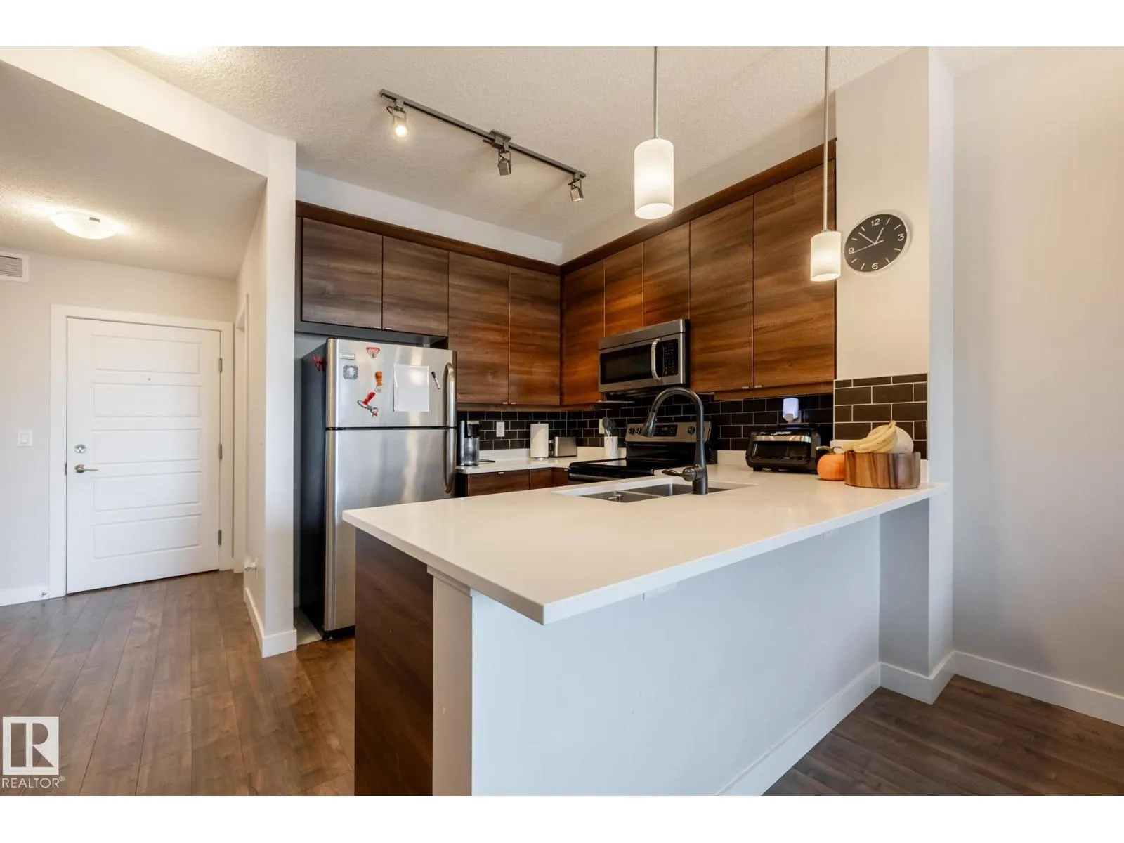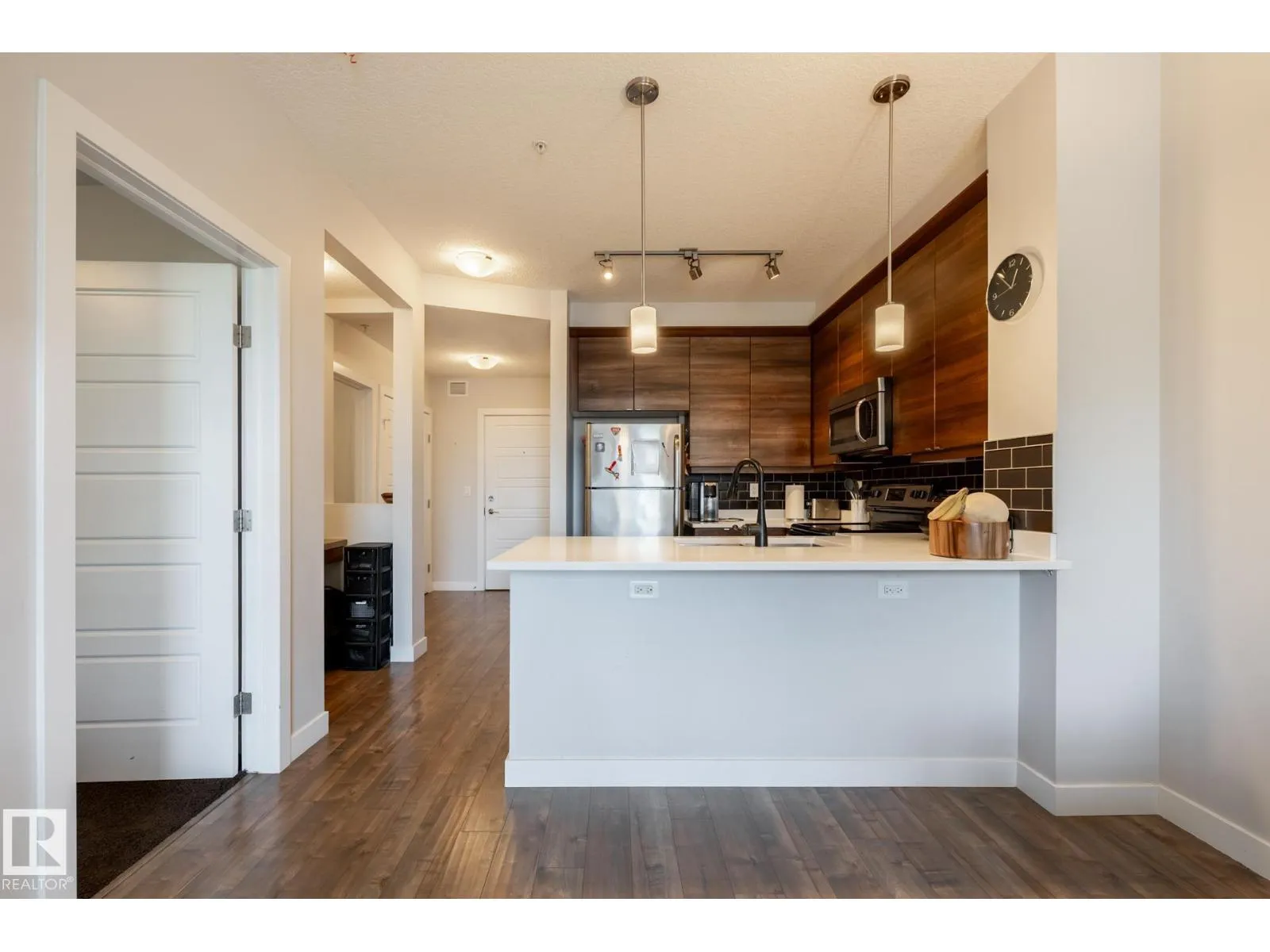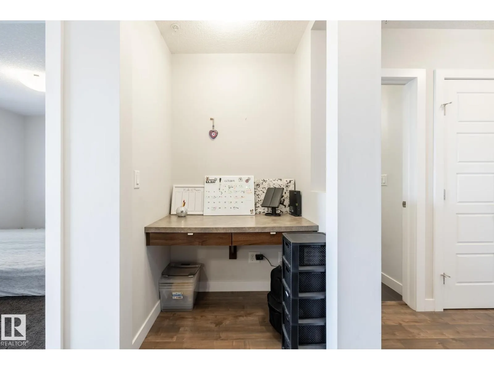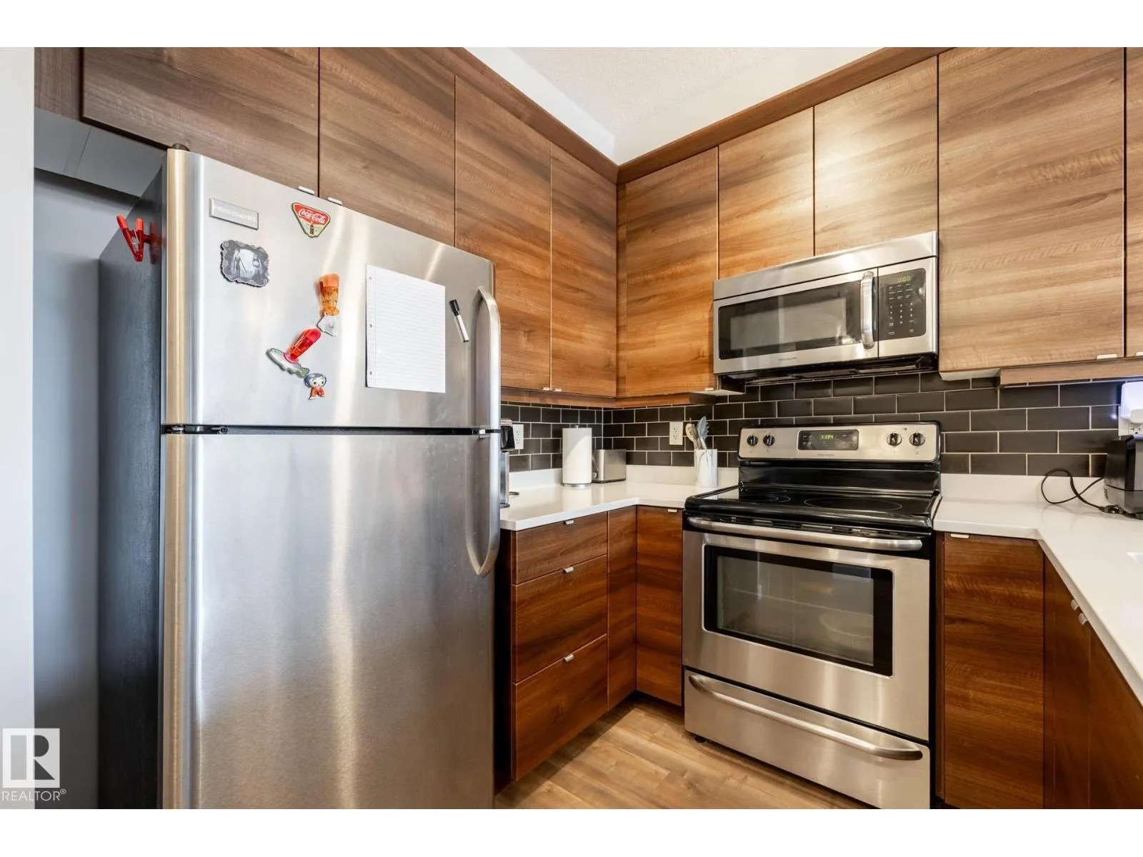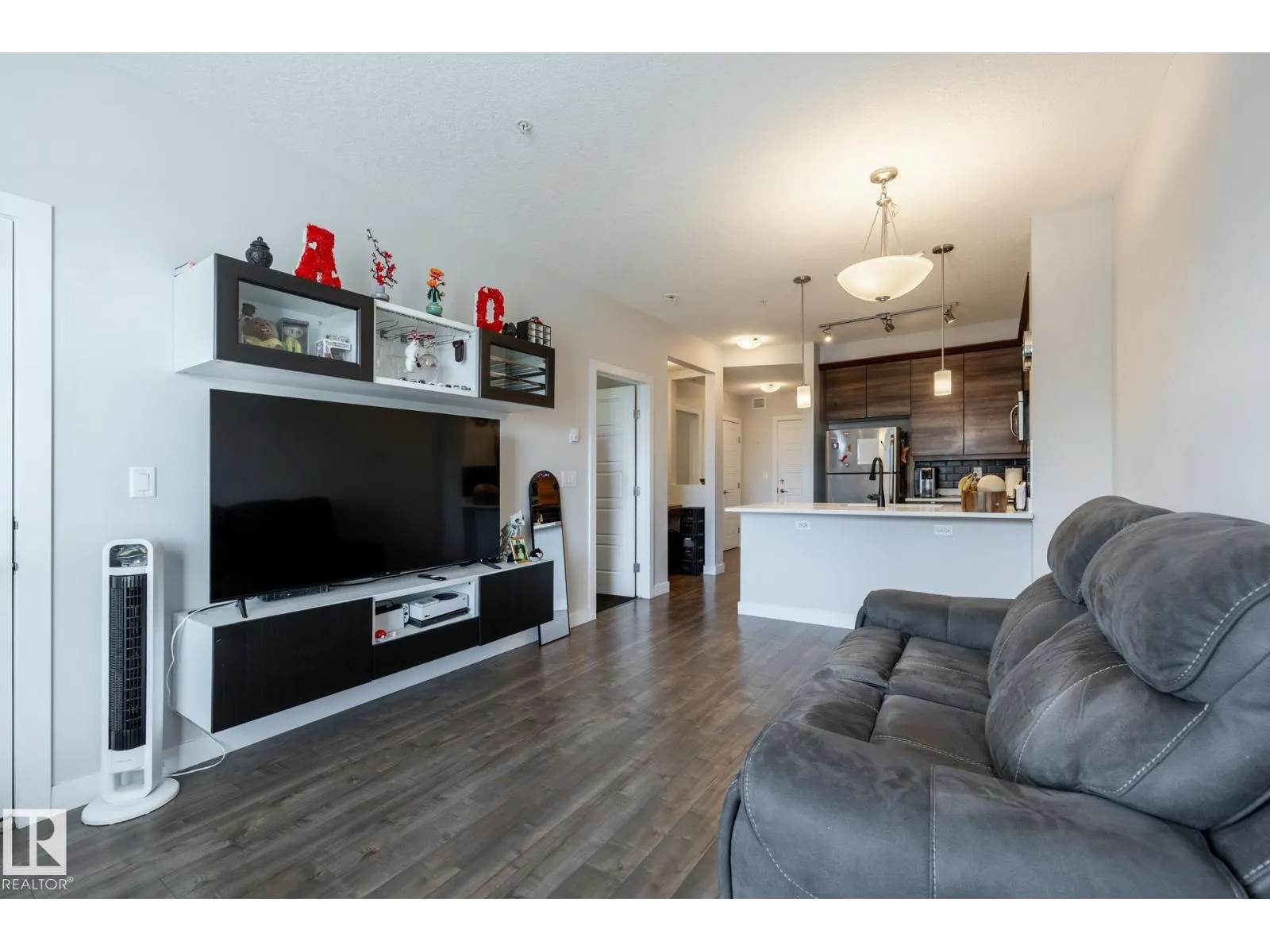 Welcome to life at The Ion in Ambleside, one of SW Edmontonâs most loved communities, where you can enjoy trails and parks right outside your door along with endless shopping + dining at the Currents of Windermere. This recently updated 2nd-floor condo feels bright and inviting with 9-foot ceilings, engineered hardwood floors & a seamless open layout. The updated kitchen shines with white quartz counters, while the bathroom carries the same elevated finishes + a modern tile surround. Your east-facing patio offers leafy views + a perfect sense of privacy. The bedroom is spacious with a walk-in closet, the laundry room has extra storage, and the built-in desk is ideal for work-from-home days. With heated underground parking, a storage unit, and building amenities including a gym, social room, picnic gazebo, and BBQ gas line, this home truly offers the full package. Perfect for a first home, a stylish downsize, or as an investment property - currently rented at $1550 per month. An incredible opportunity! (id:27476)