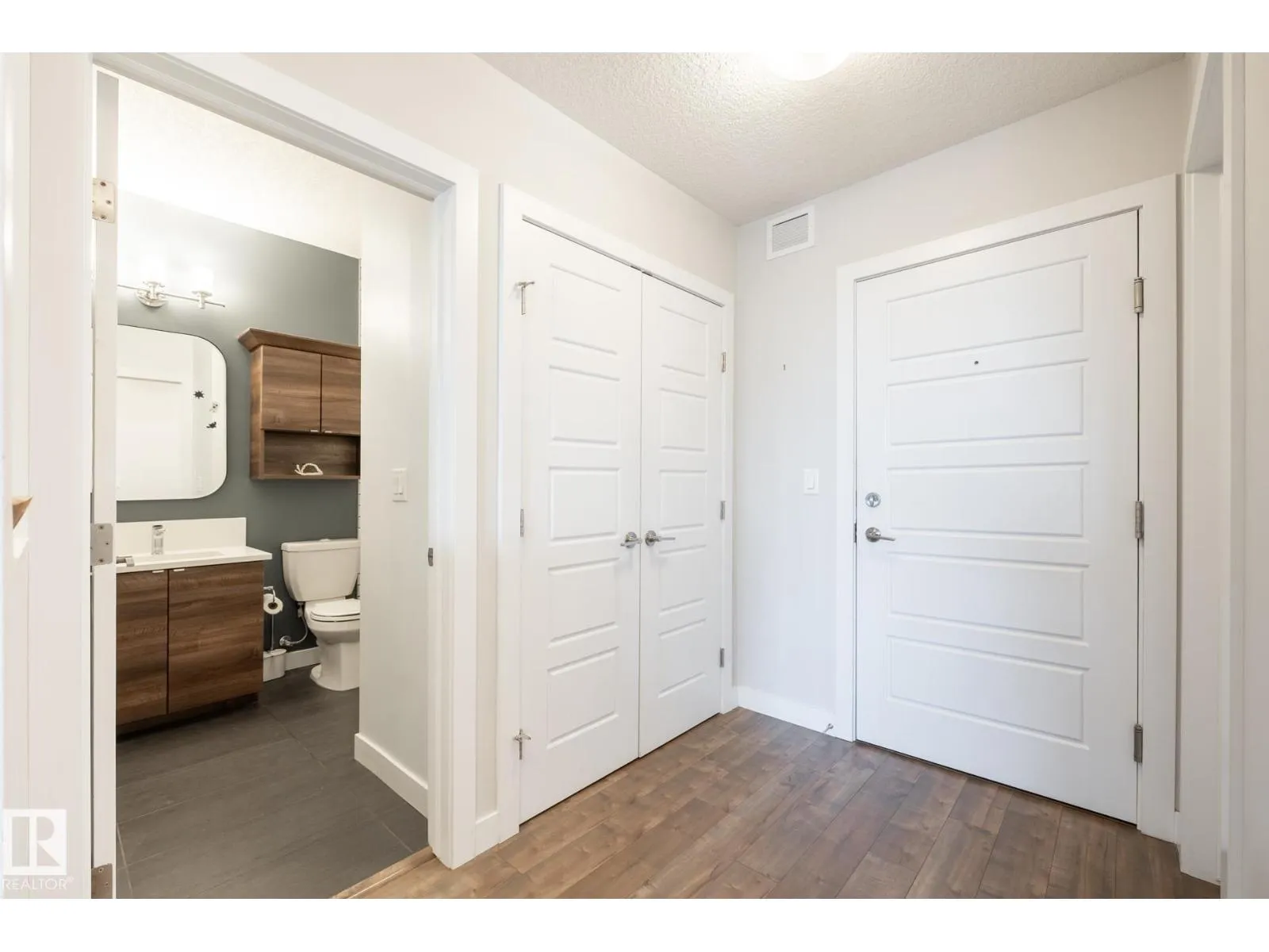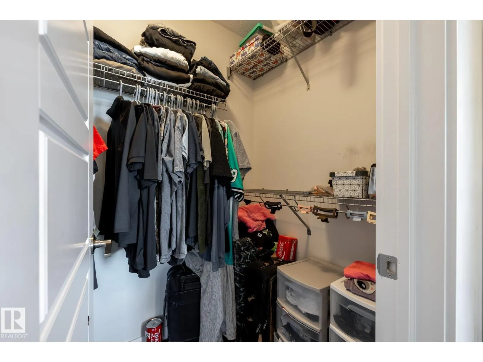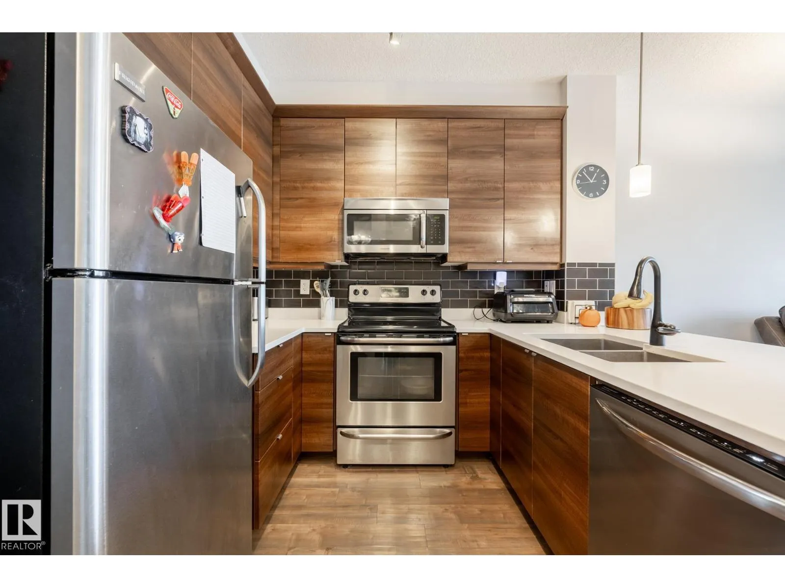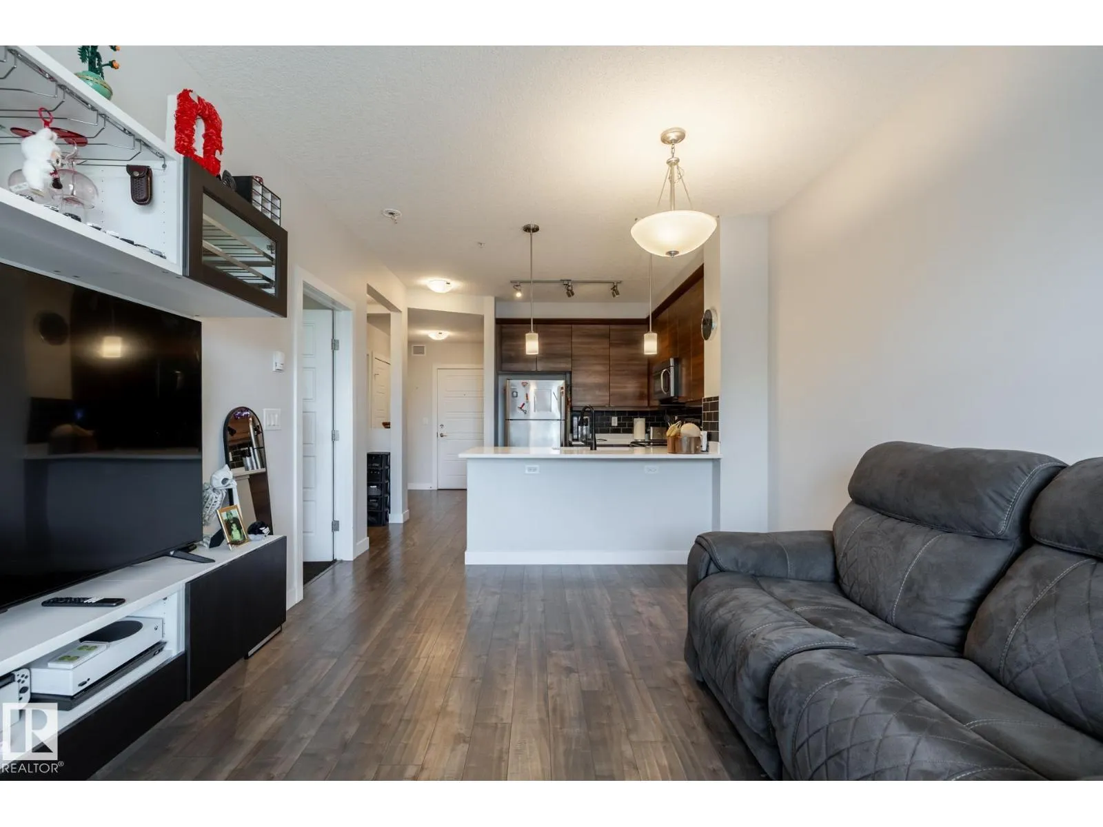 Welcome to life at The Ion in Ambleside, one of SW Edmontonâs most loved communities, where you can enjoy trails and parks right outside your door along with endless shopping + dining at the Currents of Windermere. This recently updated 2nd-floor condo feels bright and inviting with 9-foot ceilings, engineered hardwood floors & a seamless open layout. The updated kitchen shines with white quartz counters, while the bathroom carries the same elevated finishes + a modern tile surround. Your east-facing patio offers leafy views + a perfect sense of privacy. The bedroom is spacious with a walk-in closet, the laundry room has extra storage, and the built-in desk is ideal for work-from-home days. With heated underground parking, a storage unit, and building amenities including a gym, social room, picnic gazebo, and BBQ gas line, this home truly offers the full package. Perfect for a first home, a stylish downsize, or as an investment property - currently rented at $1550 per month. An incredible opportunity! (id:27476)