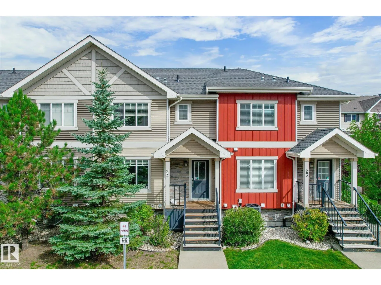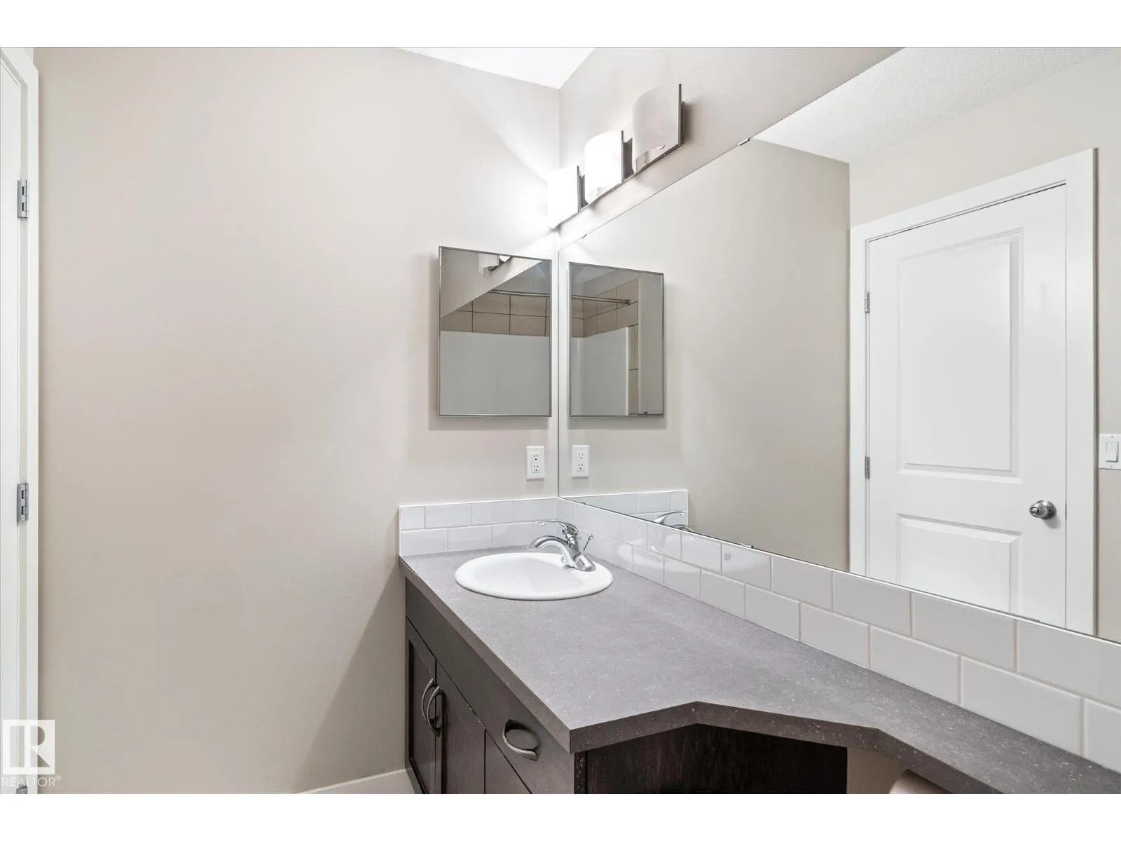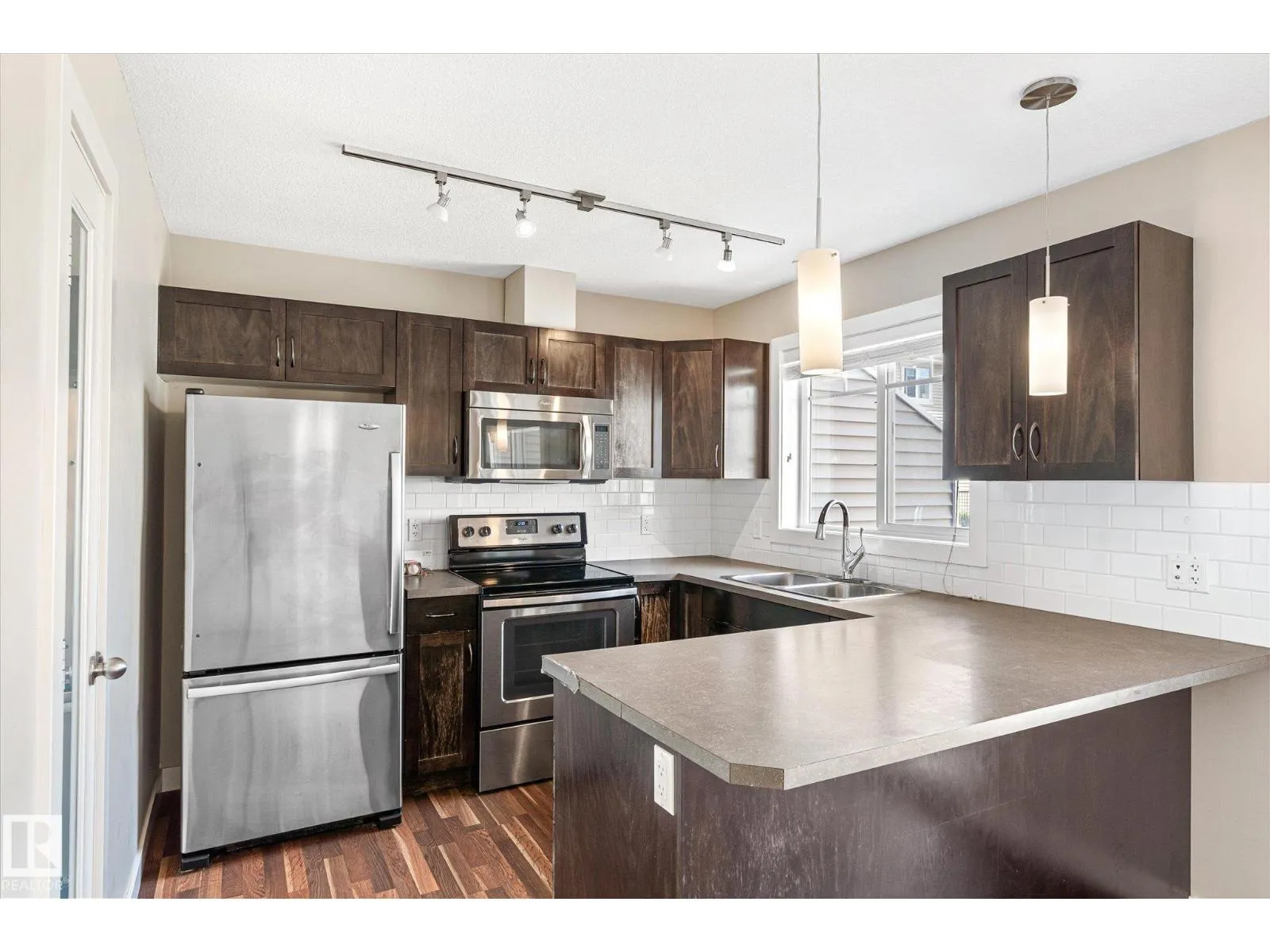 Looking for a larger floorplan with a larger garage? This condo boasts 1270 square feet and a 25 foot deep double garage, that is enough room to fit a truck! The glass staircase leads you upstairs to 2 bedrooms each with their own ensuite and tons of closet space. Perfect setup for room mates! The main floor has a sunny south facing living room that leads to the dining and kitchen area. Kitchen is nicely equipped with stainless steel appliances, pantry and tons of counter space. The dining area has patio doors that lead to your balcony to relax on. A half bathroom round out the main floor. The basement has a laundry area and leads to the double garage. South Terwillegar location is great for walking to restaurants, grocery store and shopping. There is a large park nearby and you also have easy access to transit and the Henday freeway. Excellent value in a prime location! (id:27476)