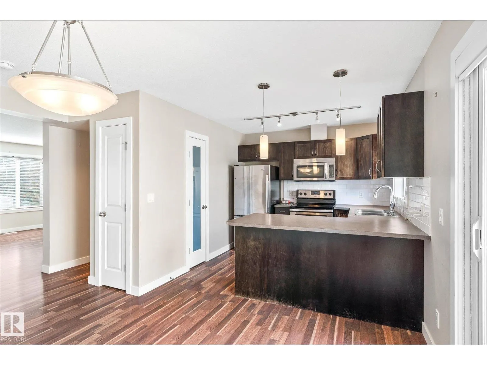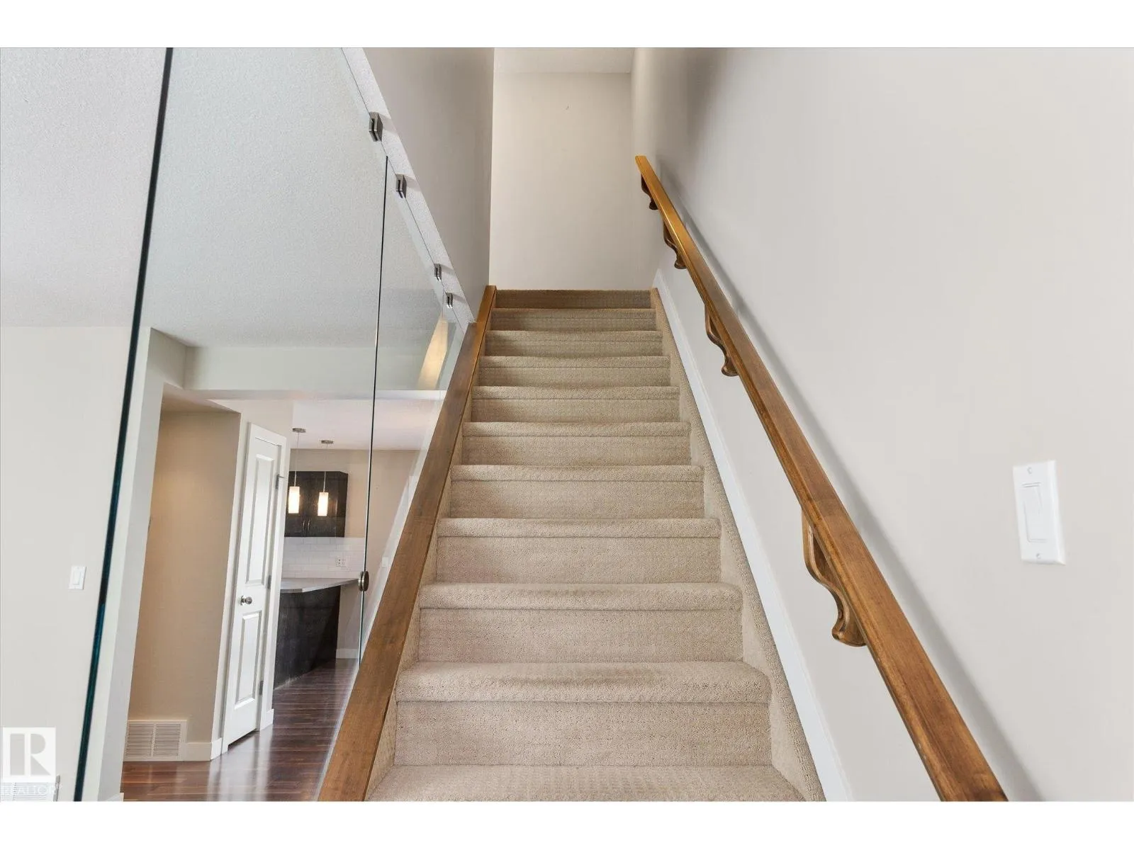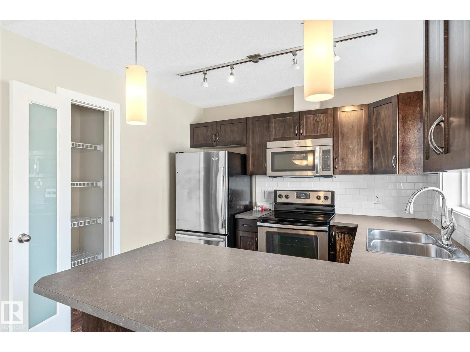 Looking for a larger floorplan with a larger garage? This condo boasts 1270 square feet and a 25 foot deep double garage, that is enough room to fit a truck! The glass staircase leads you upstairs to 2 bedrooms each with their own ensuite and tons of closet space. Perfect setup for room mates! The main floor has a sunny south facing living room that leads to the dining and kitchen area. Kitchen is nicely equipped with stainless steel appliances, pantry and tons of counter space. The dining area has patio doors that lead to your balcony to relax on. A half bathroom round out the main floor. The basement has a laundry area and leads to the double garage. South Terwillegar location is great for walking to restaurants, grocery store and shopping. There is a large park nearby and you also have easy access to transit and the Henday freeway. Excellent value in a prime location! (id:27476)