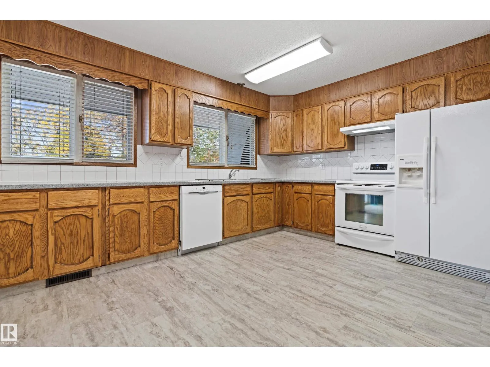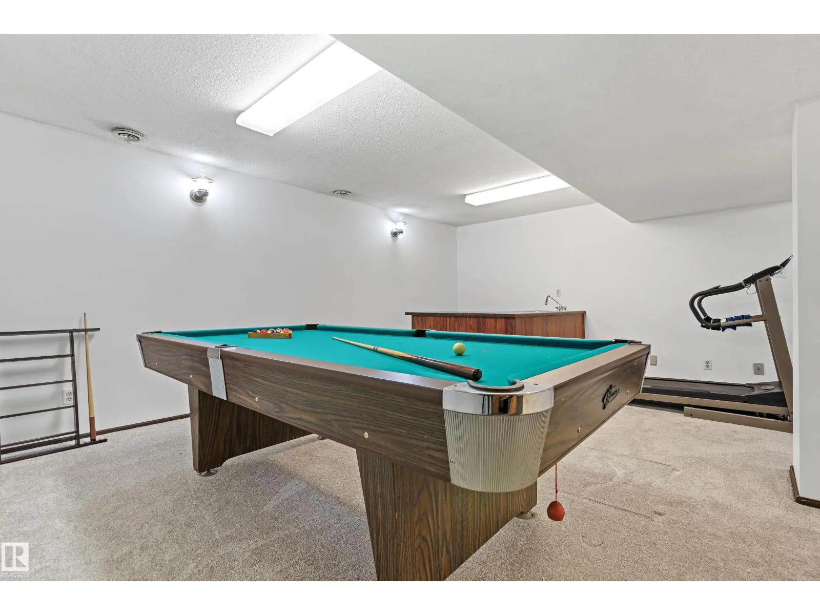 SEVEN bedrooms (4 up & 3 down) and 3 full bathrooms!! This 1539 sqft bungalow is very spacious, can accommodate 2 families and has loads of storage. Located on a large pie lot in a quiet crescent, this home also backs onto a park, has an underground sprinkler system, and has a double attached garage with long driveway that can park many vehicles.. The kitchen has corian counters, the hot water tank was replaced in 2019, and the shingles in 2014. The basement has newer carpet and is fully developed with the aforementioned 3 bedrooms, full bathroom, large storage rooms, and a large family room with pellet insert fireplace and pool table (is included). Close to MANY schools from K-12, walk to the bus, and near to Londonderry Mall, Manning Town Center and the LRT. (id:27476)