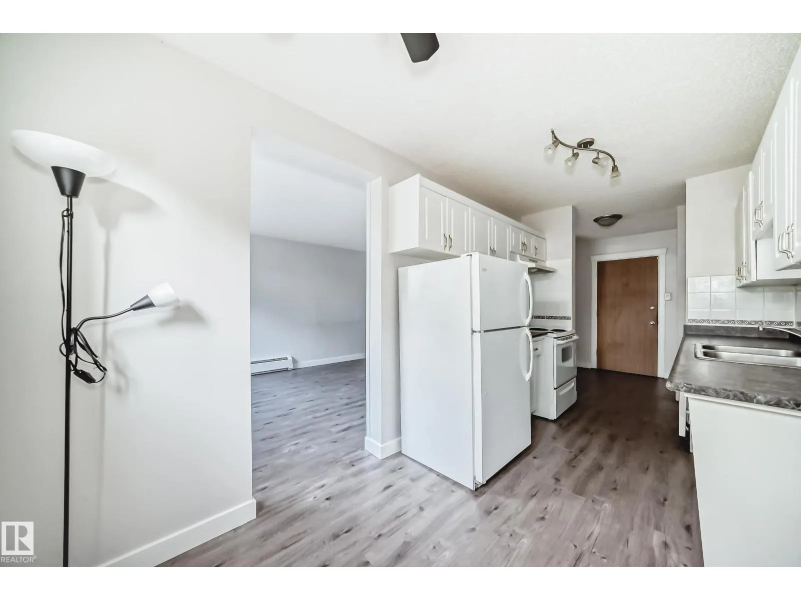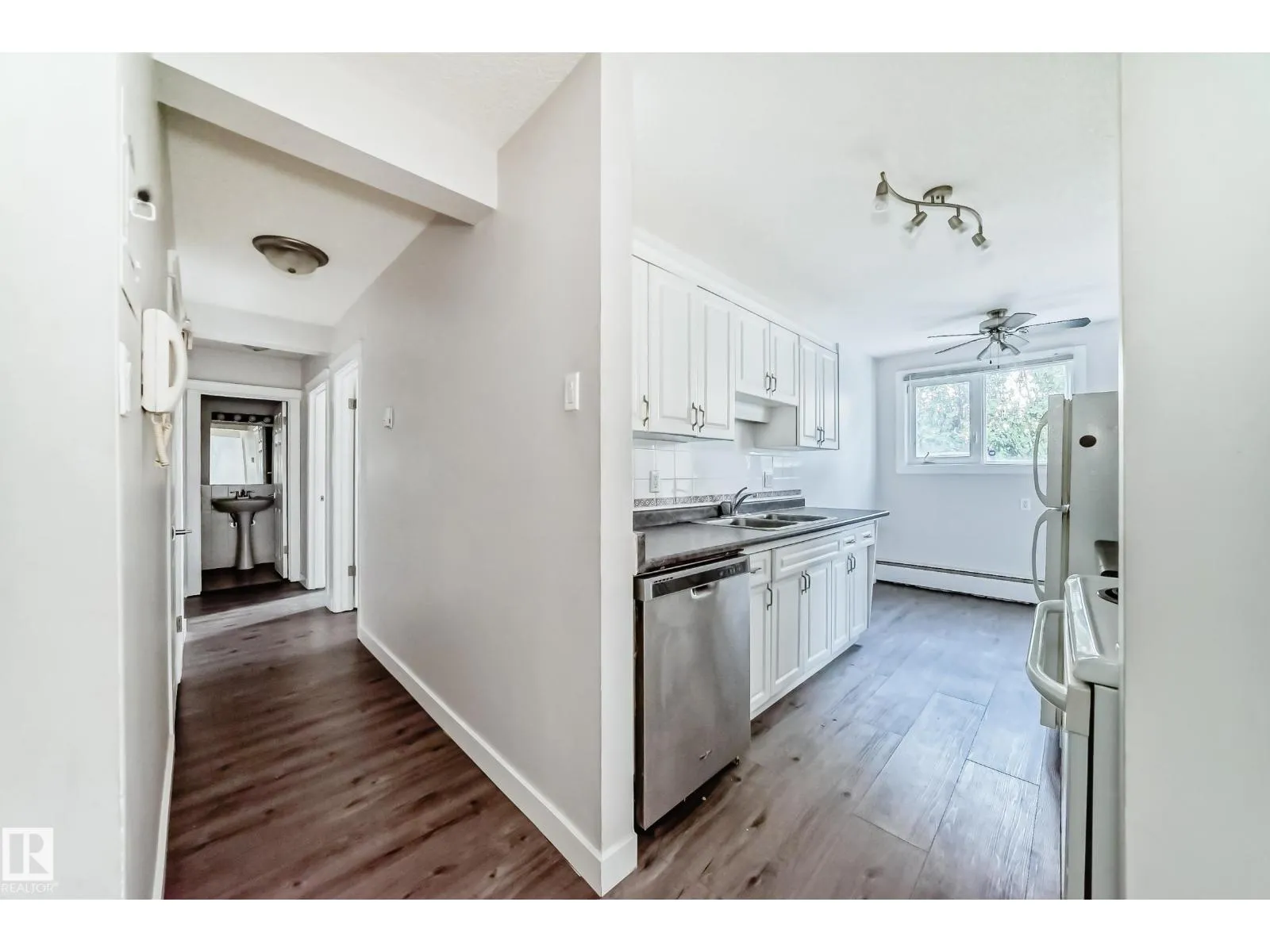 Renovated main-floor condo in Garden City Manor, Ottewell. Features a new kitchen, fresh paint, brand-new laminate flooring, two large bedrooms, a four-piece bath, in-suite laundry, six appliances, walk-in storage, new window coverings, energized parking, and a monitored alarm. Fantastic location with easy access to U of A, Downtown, Whyte Ave, Capilano, and Sherwood Park. Walking distance to Kingâs University and right next to Ottewell Shopping Centre with groceries, pharmacy, bakery, banking, and major transit. Quiet, well-kept 18+ adult-only buildingâideal for living or investment. (id:27476)
