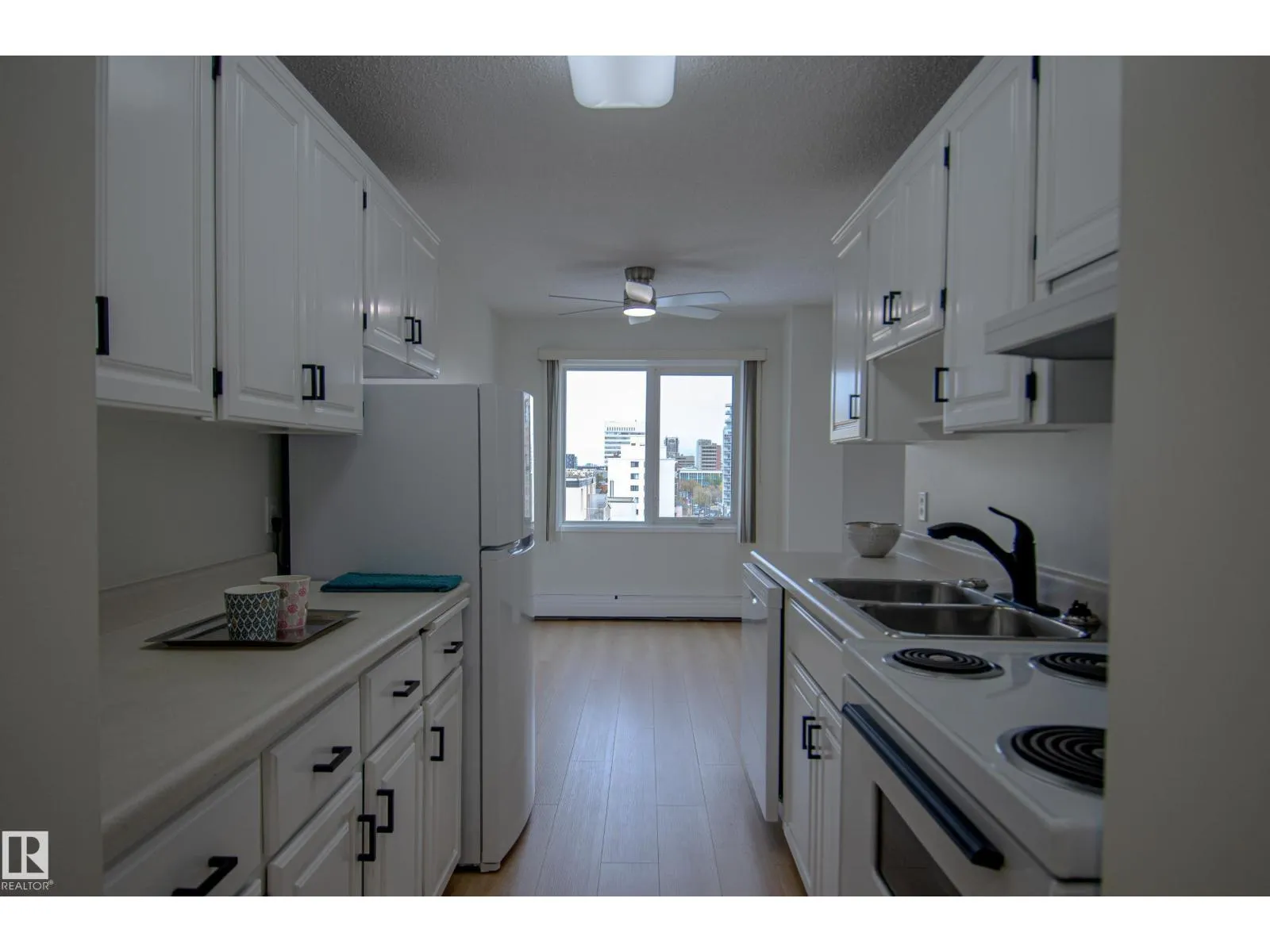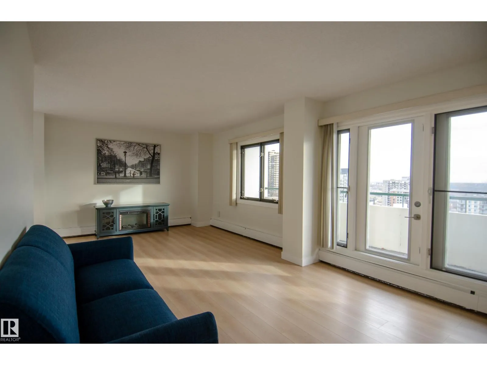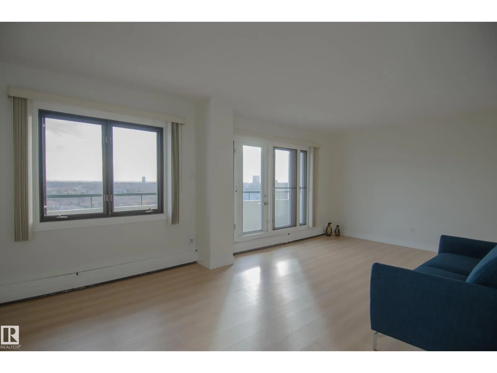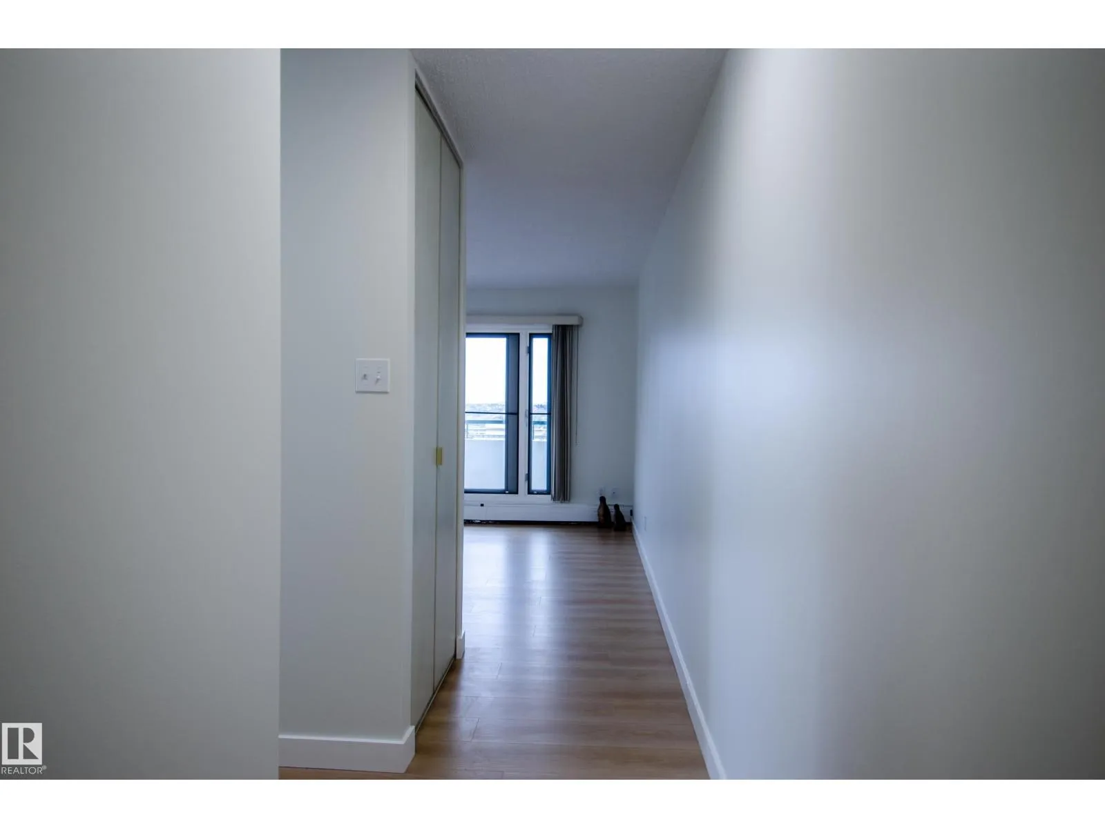 Perched high above the river valley, this renovated 1-bedroom condo blends modern style with spectacular views. The kitchen has been redesigned with updated cabinetry and modern details, while the bathroom is fully redone with a sleek, contemporary look. Luxury vinyl plank flooring flows throughout, creating a seamless and inviting feel. Expansive new windows and patio doors frame panoramic river valley views, filling the home with natural light. The open living and dining area is bright and welcoming, and the spacious bedroom easily fits a king-sized bed. Step onto the private balcony to take in breathtaking sceneryâperfect for morning coffee or quiet evenings. This well-managed building offers excellent amenities, including a fitness room, games room, and rooftop basketball and tennis courts, plus secure underground parking. A stylish retreat in the heart of downtown with scenery that is hard to match. (id:27476)