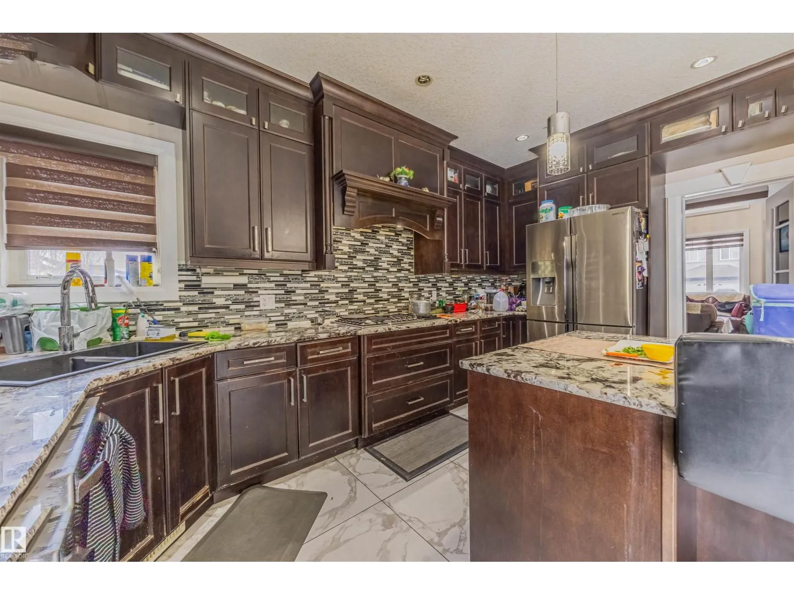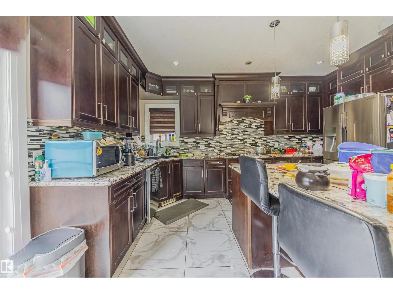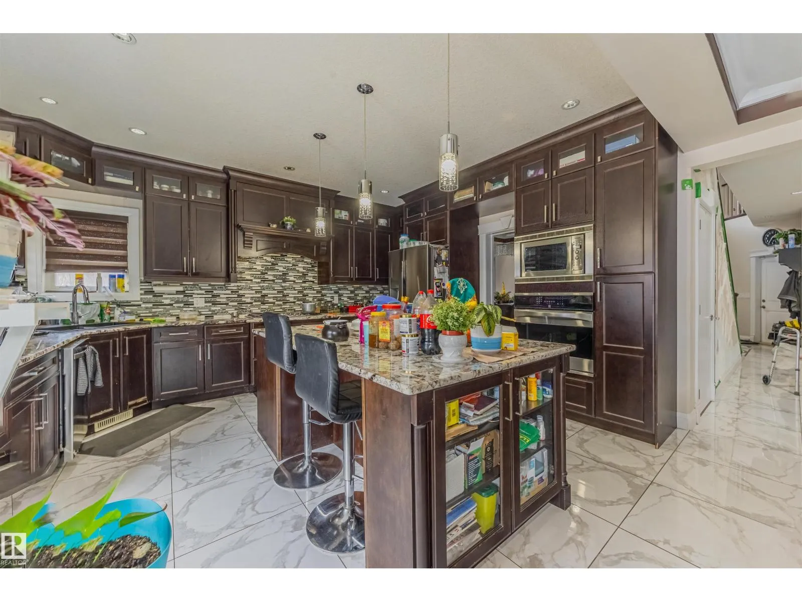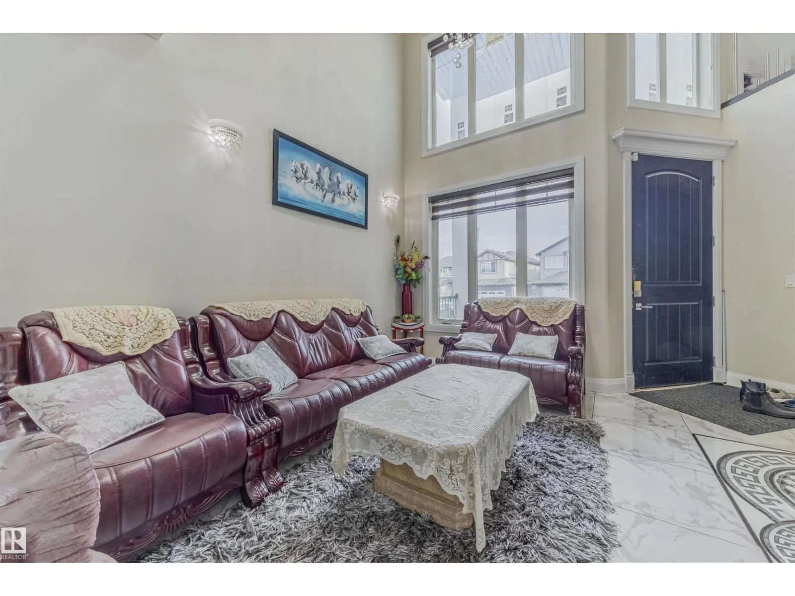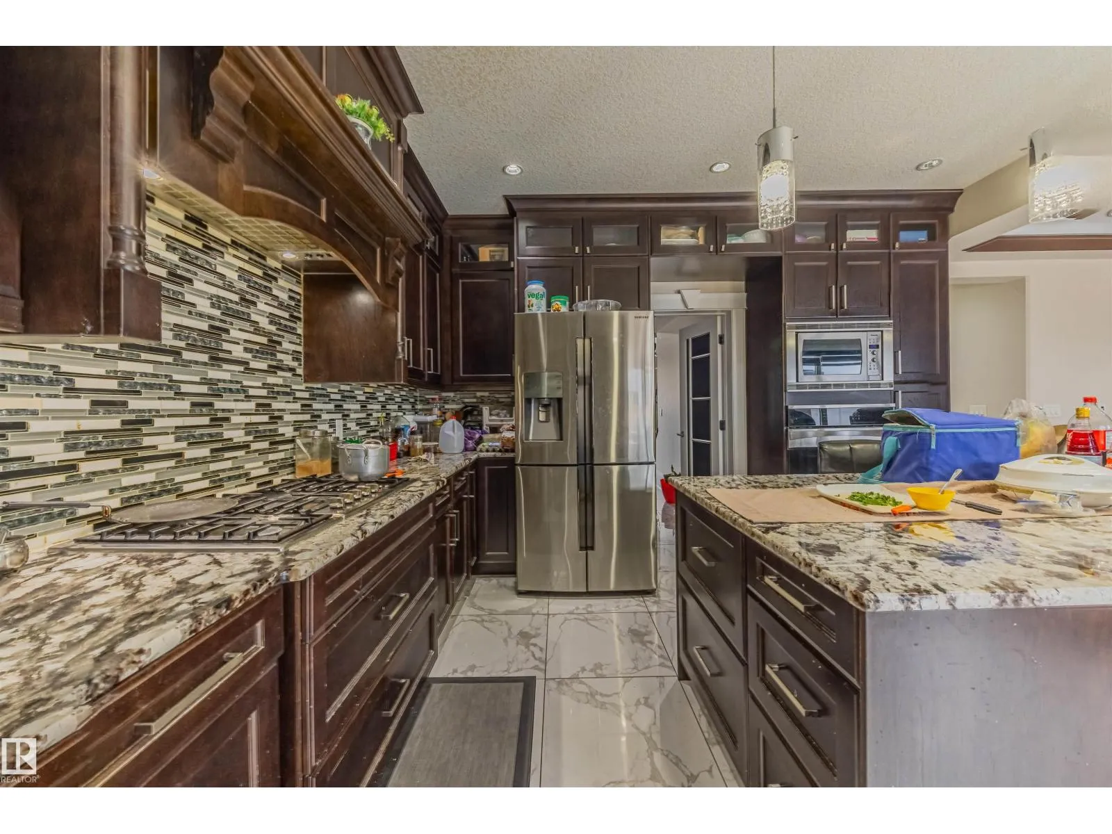 Custom-built Mcconachie treasure 5 bed, 4 full bath, 2546 sqft home designed for functionality! Step into a grand foyer w/ soaring double-height windows & an open-to-below design. Throughout, find beautiful millwork, including coffered ceilings, custom wall detailing, built-in cabinetry & panelled accents. The main floor boasts a dining room, two living areasâone w/ a NG fireplaceâflowing into a chefâs kitchen w/ espresso cabinetry, glass inserts, granite countertops & large island. Patio doors open to a spacious deck & fenced yard. A main-floor bedroom w/ custom wall detailing & full 4-piece bath is perfect for guests or multi-generational living. Upstairs is a dream for large families, featuring versatile loft/bonus area & 4 spacious bedrooms all w/ walk-in closets. Primary suite impresses w/ dual walk-in closets & 5-piece ensuite w/ a soaker tub, dual sinks & a walk-in shower. Second bedroom w/ its own 4-piece ensuite offers added privacy & convenience. All this + separate basement side entrance! (id:27476)
