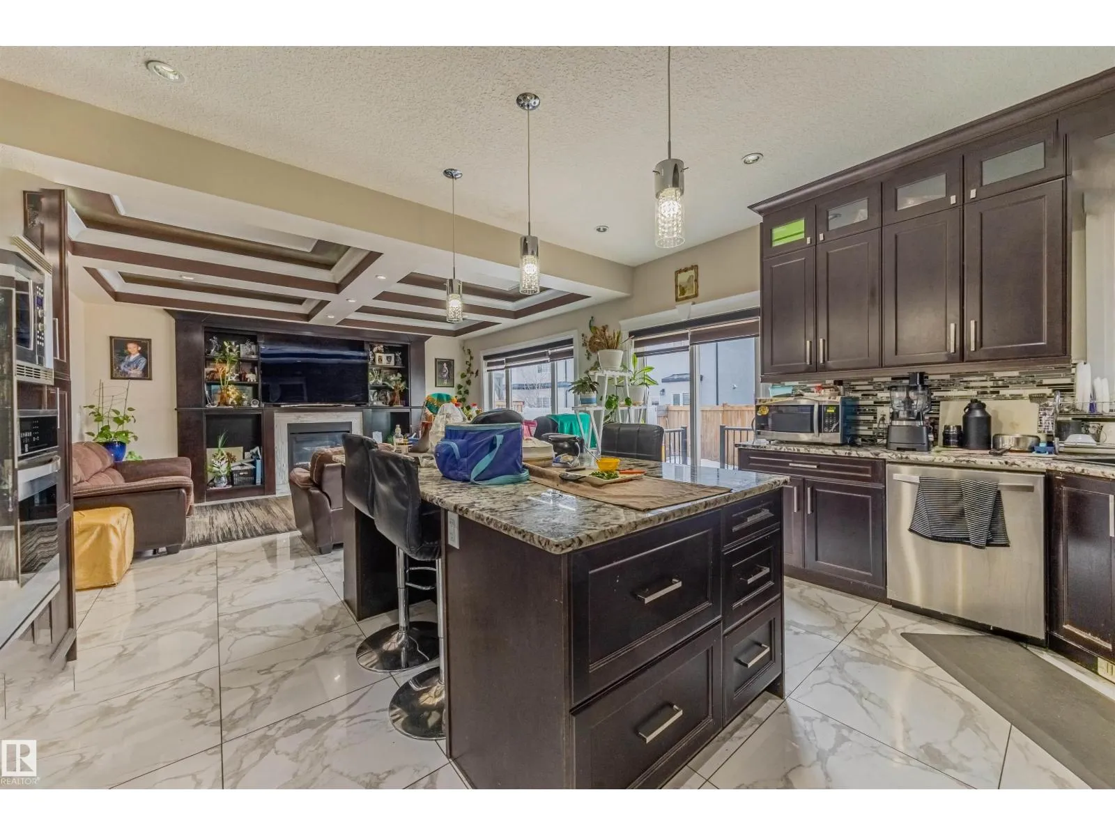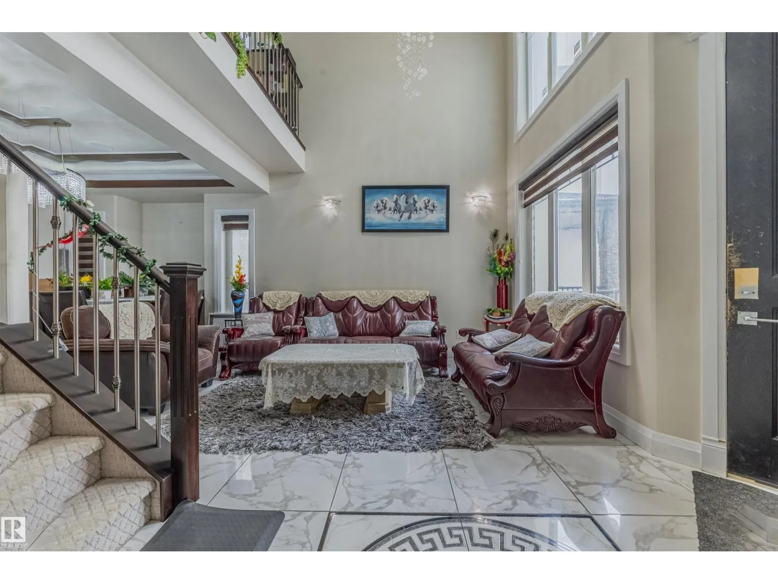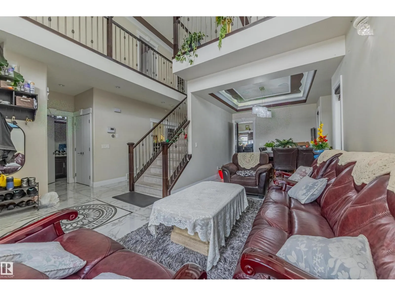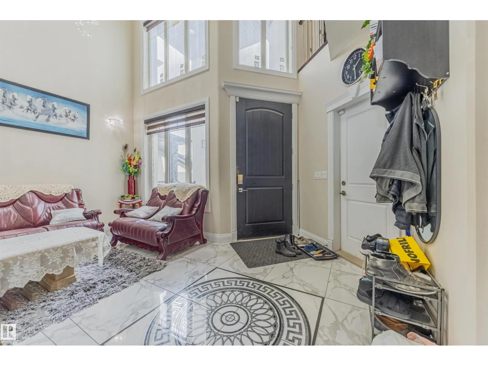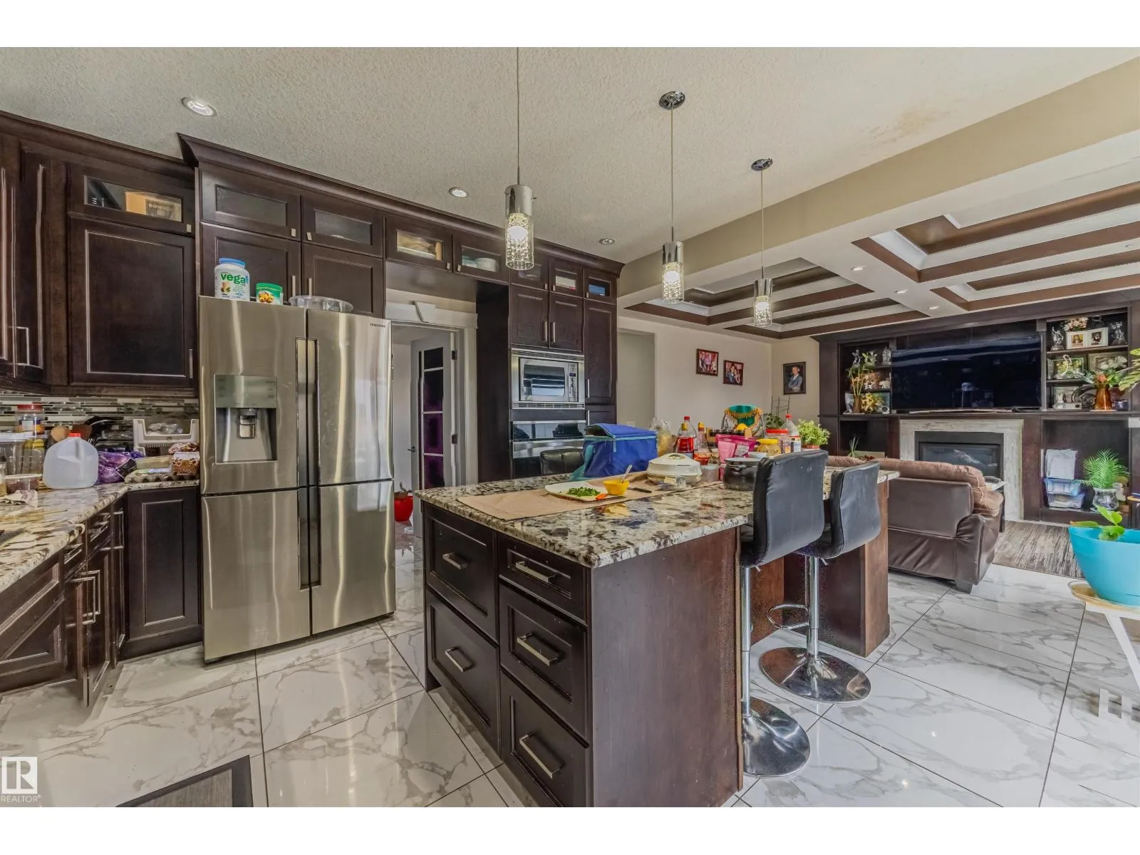 Custom-built Mcconachie treasure 5 bed, 4 full bath, 2546 sqft home designed for functionality! Step into a grand foyer w/ soaring double-height windows & an open-to-below design. Throughout, find beautiful millwork, including coffered ceilings, custom wall detailing, built-in cabinetry & panelled accents. The main floor boasts a dining room, two living areasâone w/ a NG fireplaceâflowing into a chefâs kitchen w/ espresso cabinetry, glass inserts, granite countertops & large island. Patio doors open to a spacious deck & fenced yard. A main-floor bedroom w/ custom wall detailing & full 4-piece bath is perfect for guests or multi-generational living. Upstairs is a dream for large families, featuring versatile loft/bonus area & 4 spacious bedrooms all w/ walk-in closets. Primary suite impresses w/ dual walk-in closets & 5-piece ensuite w/ a soaker tub, dual sinks & a walk-in shower. Second bedroom w/ its own 4-piece ensuite offers added privacy & convenience. All this + separate basement side entrance! (id:27476)