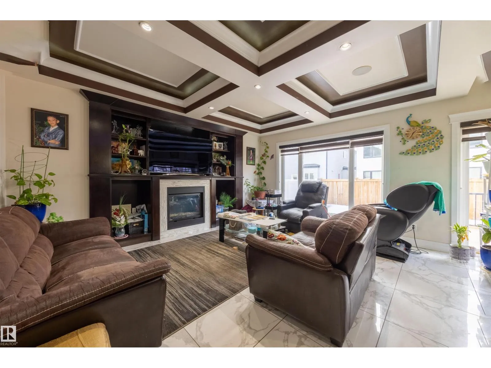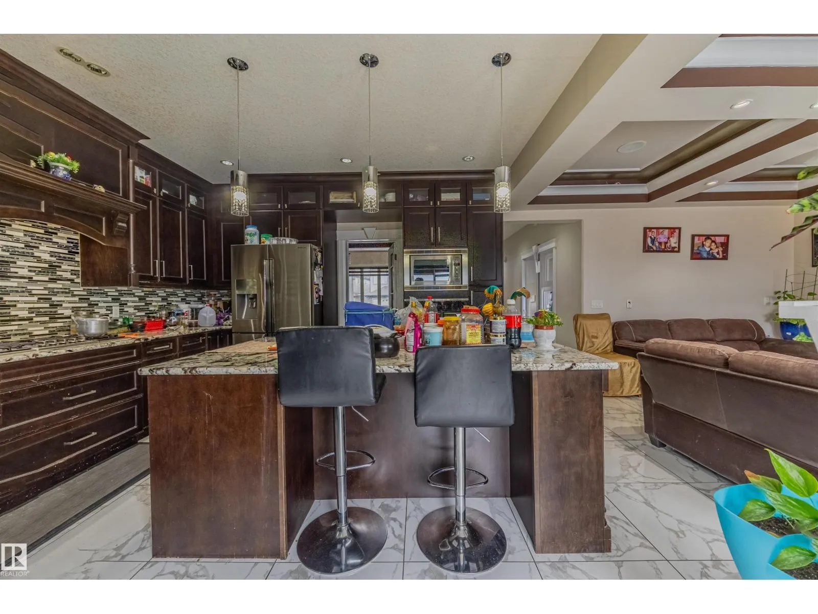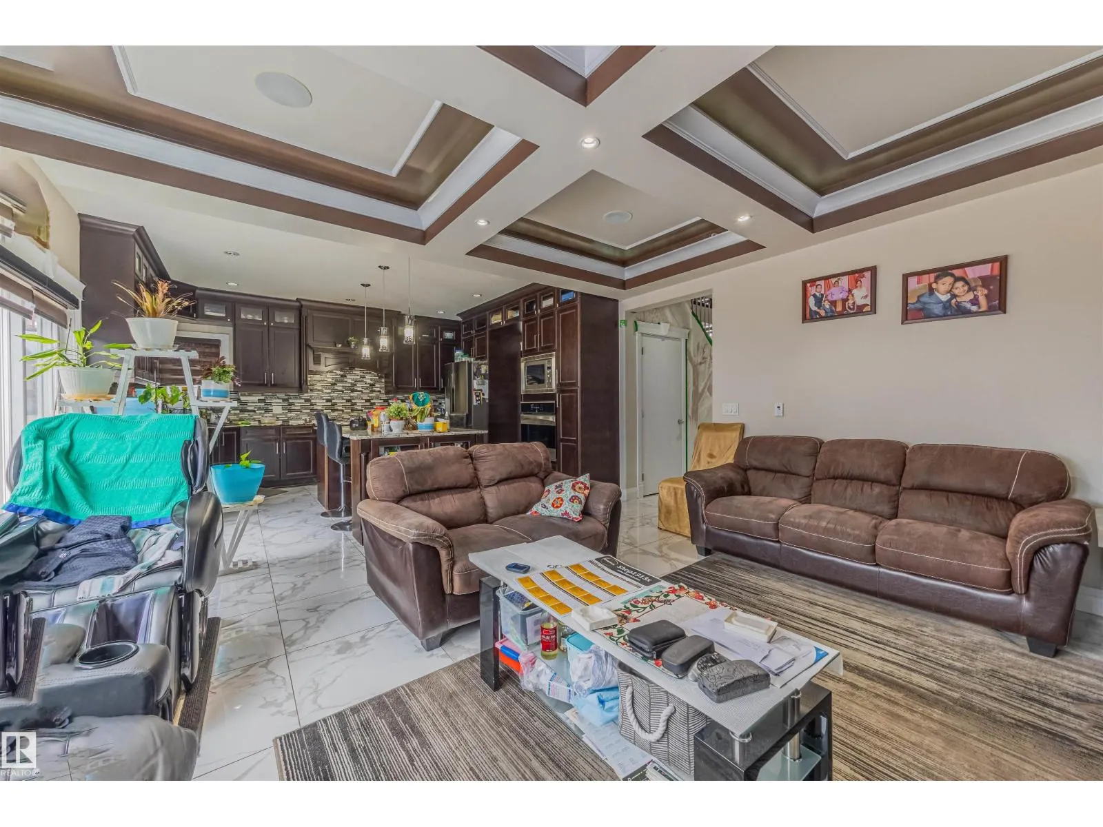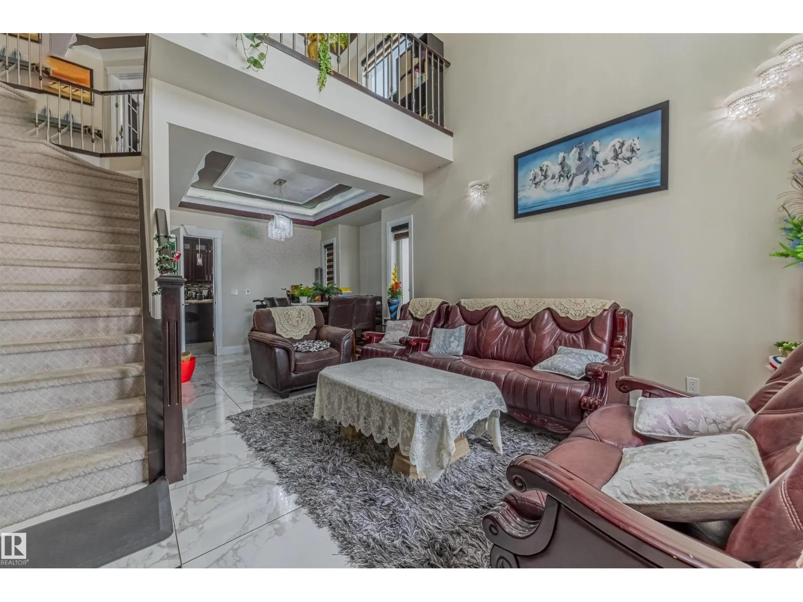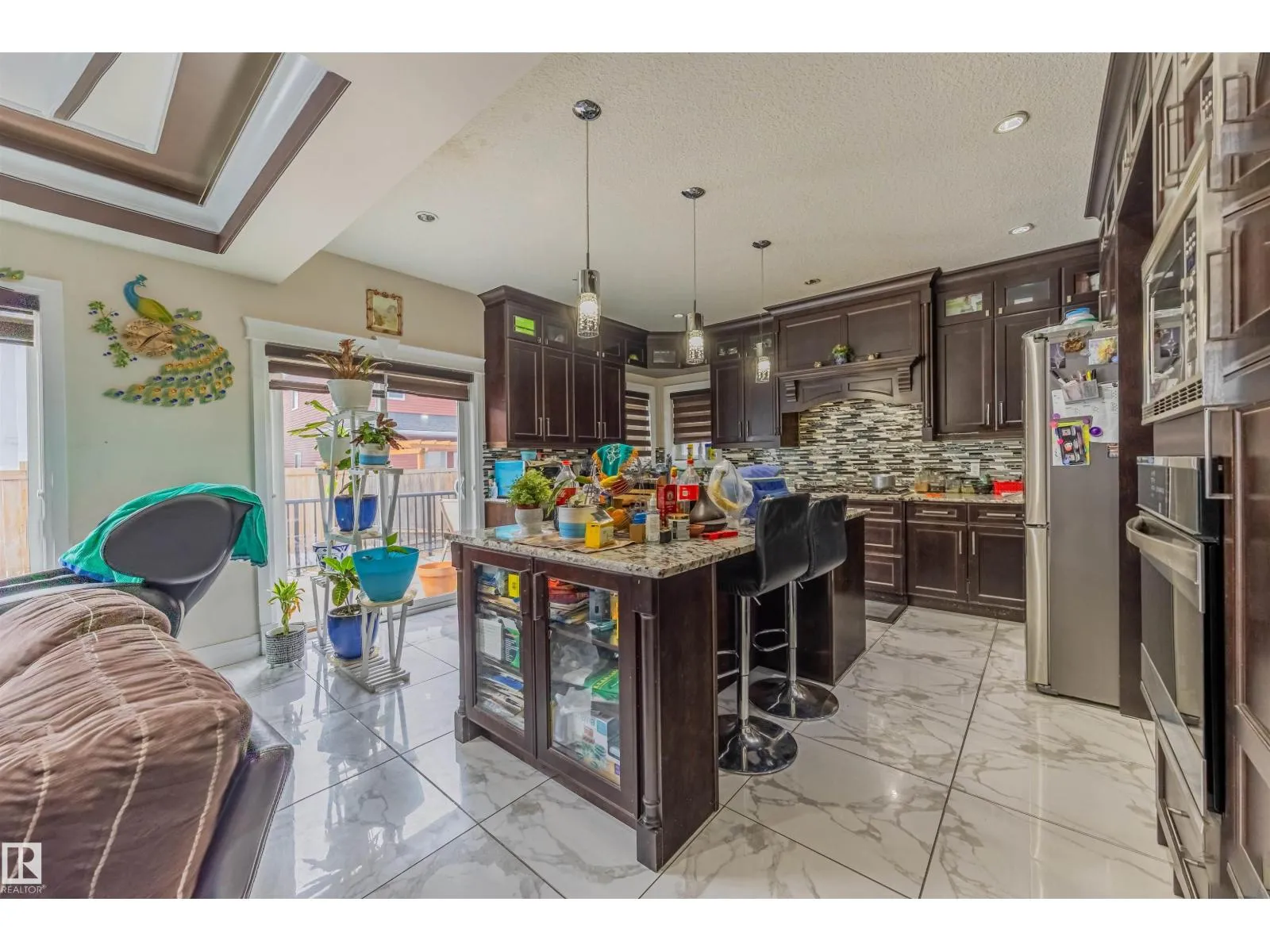 Custom-built Mcconachie treasure 5 bed, 4 full bath, 2546 sqft home designed for functionality! Step into a grand foyer w/ soaring double-height windows & an open-to-below design. Throughout, find beautiful millwork, including coffered ceilings, custom wall detailing, built-in cabinetry & panelled accents. The main floor boasts a dining room, two living areasâone w/ a NG fireplaceâflowing into a chefâs kitchen w/ espresso cabinetry, glass inserts, granite countertops & large island. Patio doors open to a spacious deck & fenced yard. A main-floor bedroom w/ custom wall detailing & full 4-piece bath is perfect for guests or multi-generational living. Upstairs is a dream for large families, featuring versatile loft/bonus area & 4 spacious bedrooms all w/ walk-in closets. Primary suite impresses w/ dual walk-in closets & 5-piece ensuite w/ a soaker tub, dual sinks & a walk-in shower. Second bedroom w/ its own 4-piece ensuite offers added privacy & convenience. All this + separate basement side entrance! (id:27476)