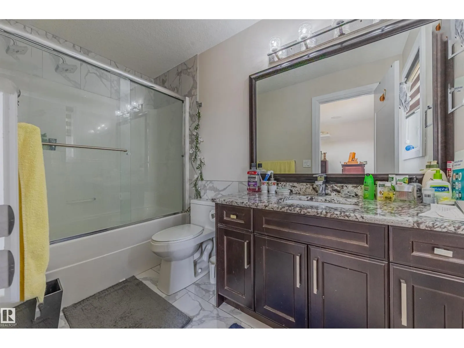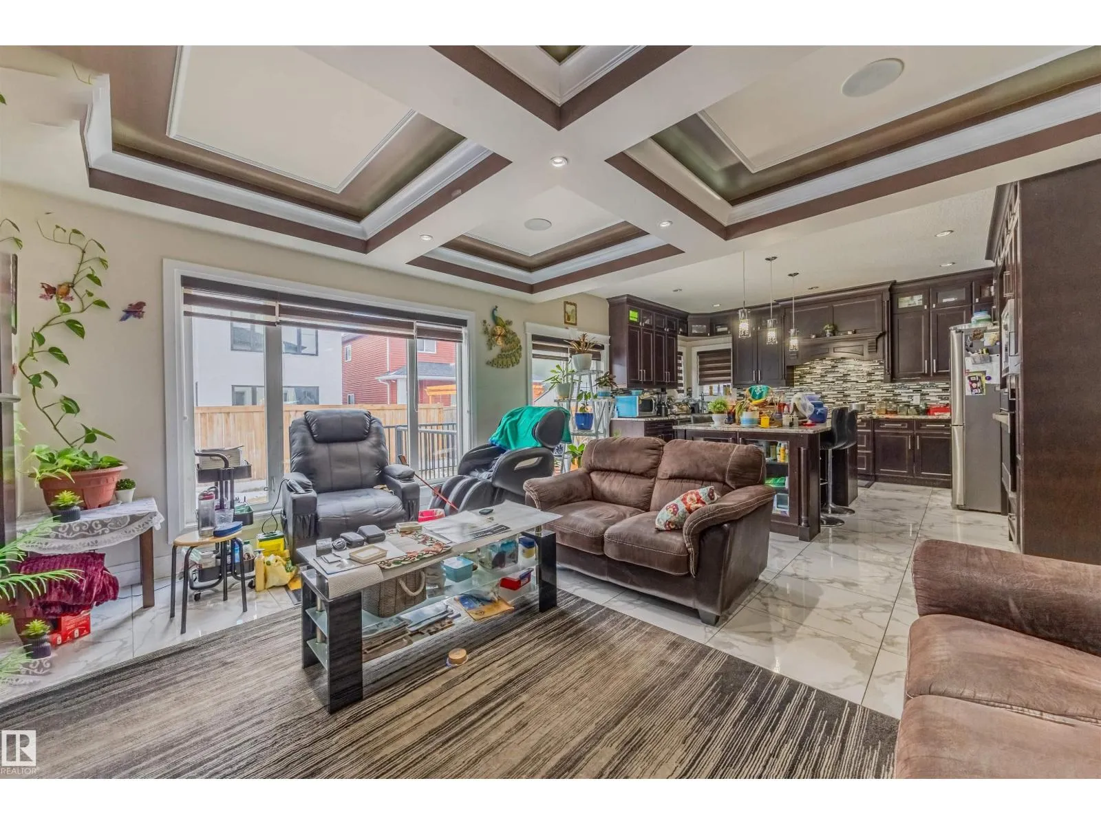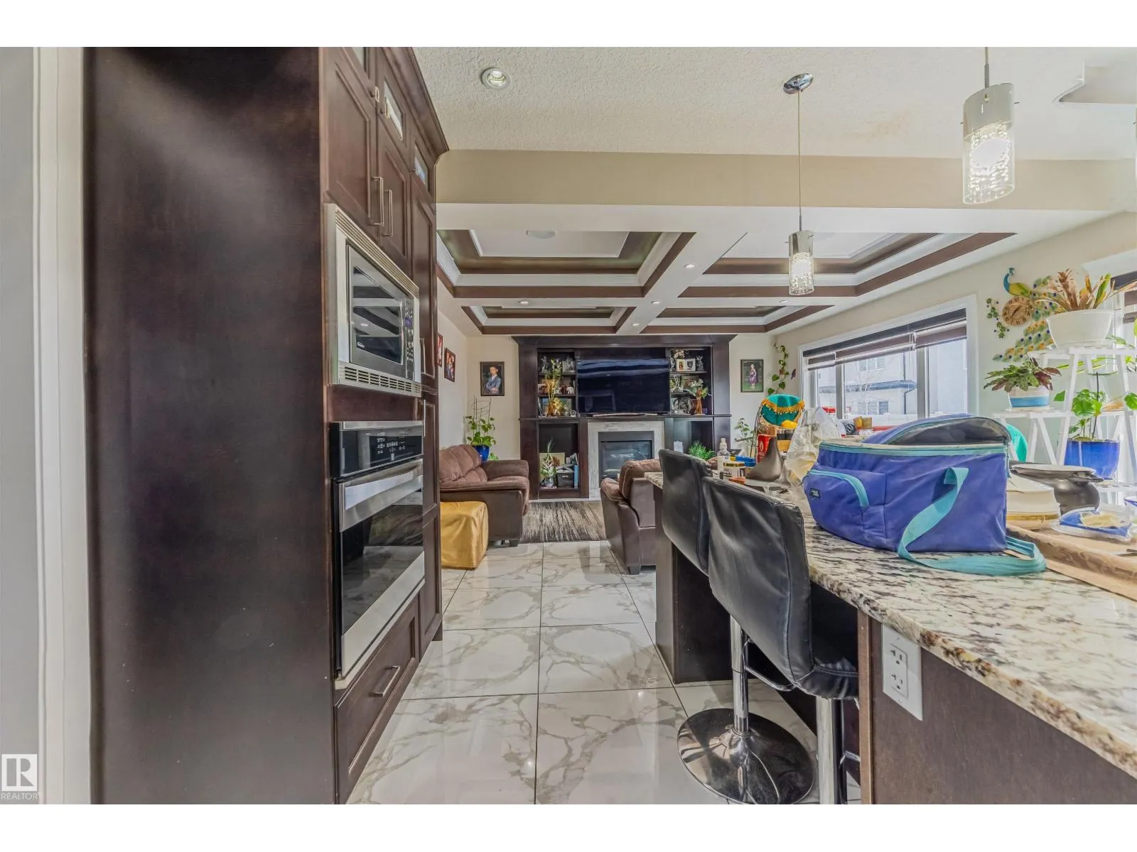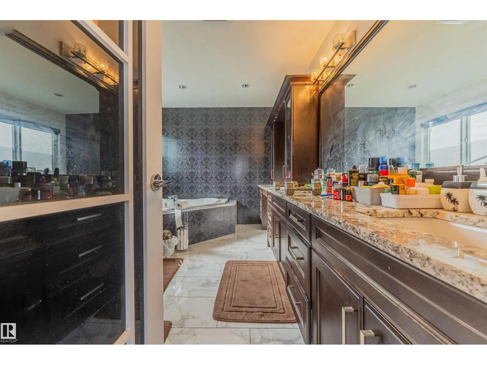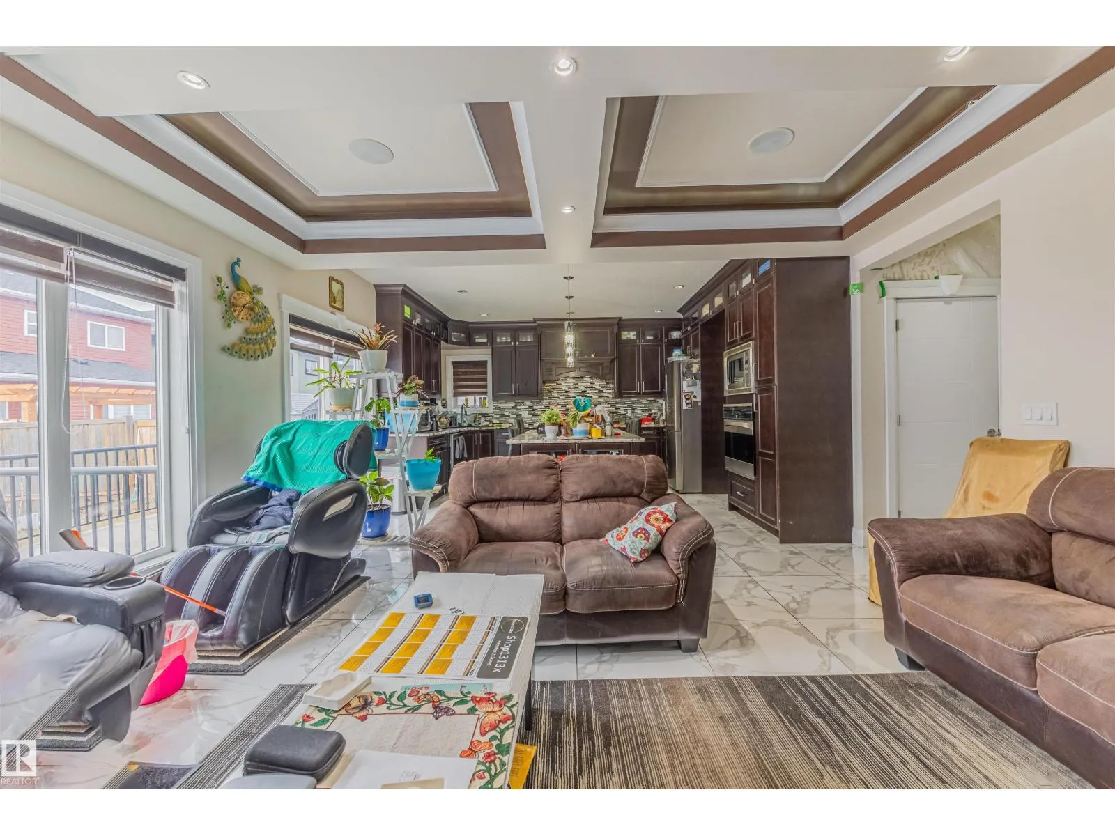 Custom-built Mcconachie treasure 5 bed, 4 full bath, 2546 sqft home designed for functionality! Step into a grand foyer w/ soaring double-height windows & an open-to-below design. Throughout, find beautiful millwork, including coffered ceilings, custom wall detailing, built-in cabinetry & panelled accents. The main floor boasts a dining room, two living areasâone w/ a NG fireplaceâflowing into a chefâs kitchen w/ espresso cabinetry, glass inserts, granite countertops & large island. Patio doors open to a spacious deck & fenced yard. A main-floor bedroom w/ custom wall detailing & full 4-piece bath is perfect for guests or multi-generational living. Upstairs is a dream for large families, featuring versatile loft/bonus area & 4 spacious bedrooms all w/ walk-in closets. Primary suite impresses w/ dual walk-in closets & 5-piece ensuite w/ a soaker tub, dual sinks & a walk-in shower. Second bedroom w/ its own 4-piece ensuite offers added privacy & convenience. All this + separate basement side entrance! (id:27476)