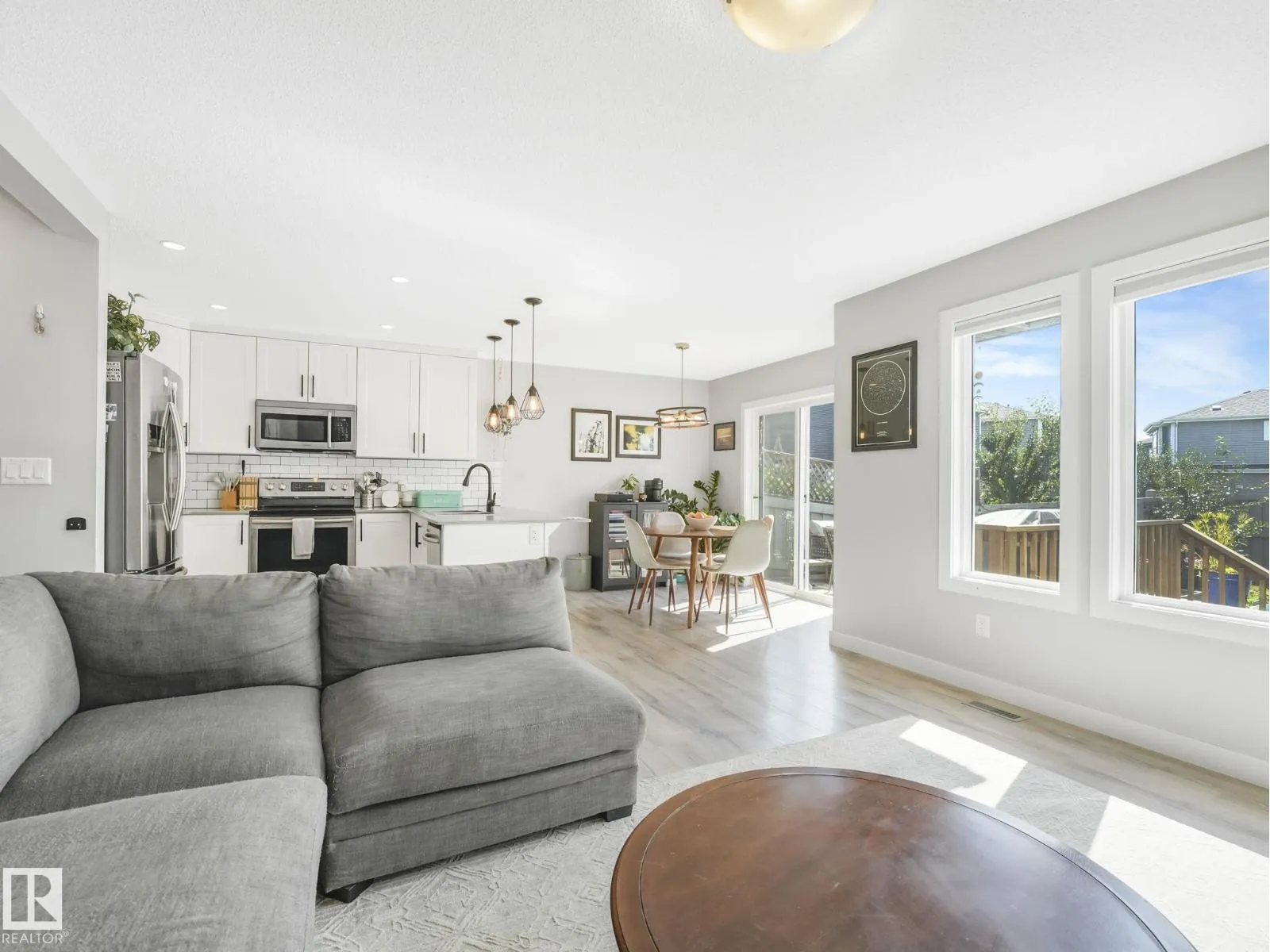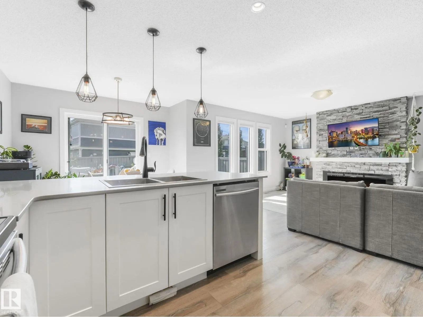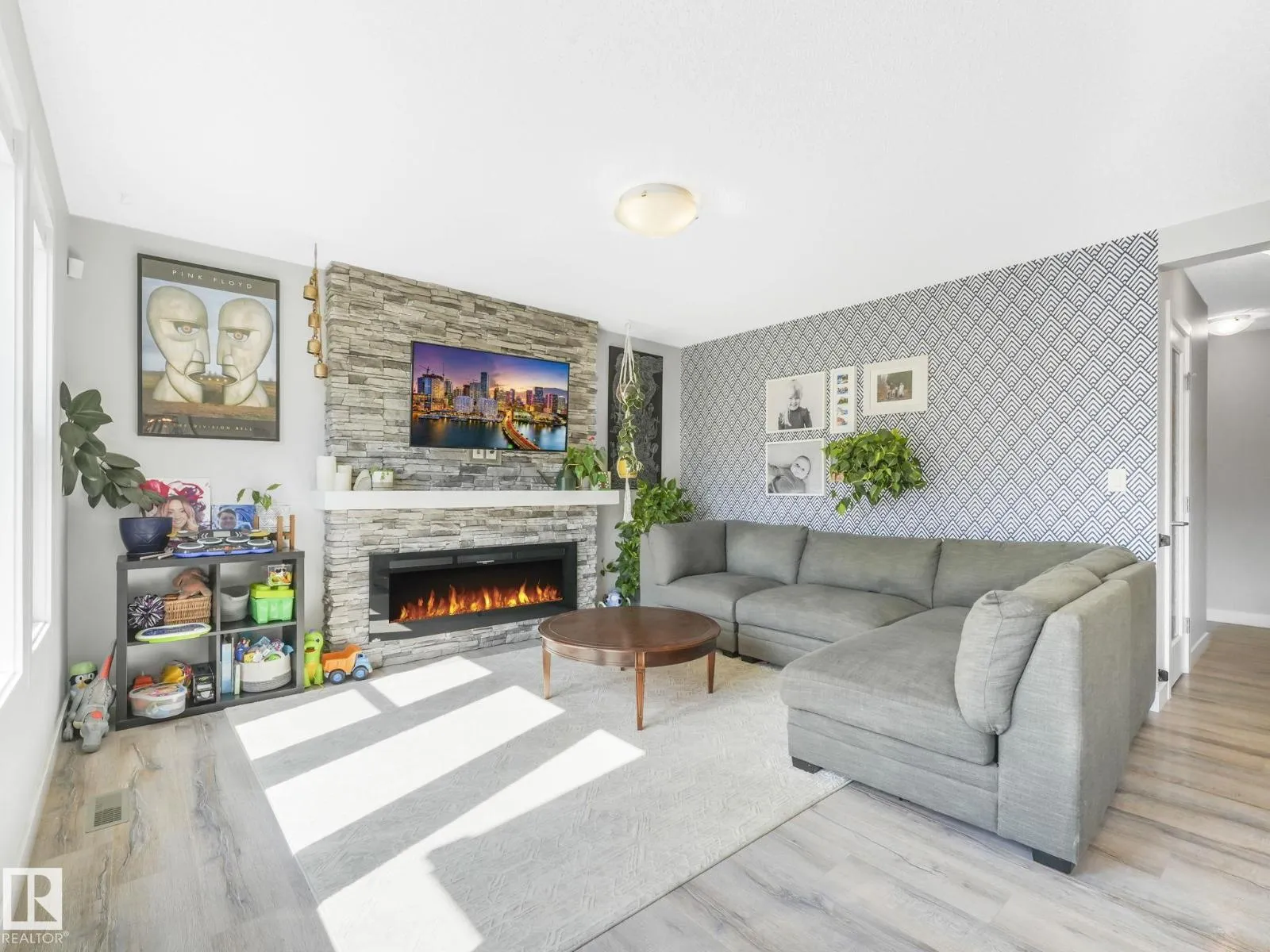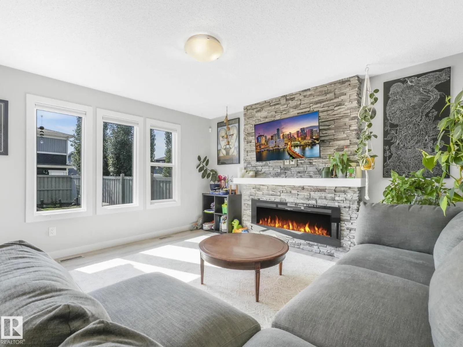 Bright 2-Storey in Rosenthal with South-Facing Yard! Welcome to this stunning 1,537 sqft detached home in the desirable west Edmonton community of Rosenthal. Thoughtfully designed with 3 bedrooms, 2.5 baths, and a bonus room, this home is perfect for families. The bright and open main floor features a modern kitchen with white cabinetry, quartz countertops, subway tile backsplash, stainless steel appliances, and a large peninsula island that overlooks the dining area and cozy living room with a stone feature wall and fireplace. Upstairs youâll find a spacious primary suite with a private ensuite, two very sizable additional bedrooms, a full bath, and a versatile bonus room ideal for a home office, play space, or media room. The unfinished basement offers plenty of potential to customize to your needs. Enjoy the convenience of a double attached garage plus a fully fenced, south-facing backyard with a large deck, all on a generous lot with no neighbours directly behind. Mins to schools, shopping and transit (id:27476)