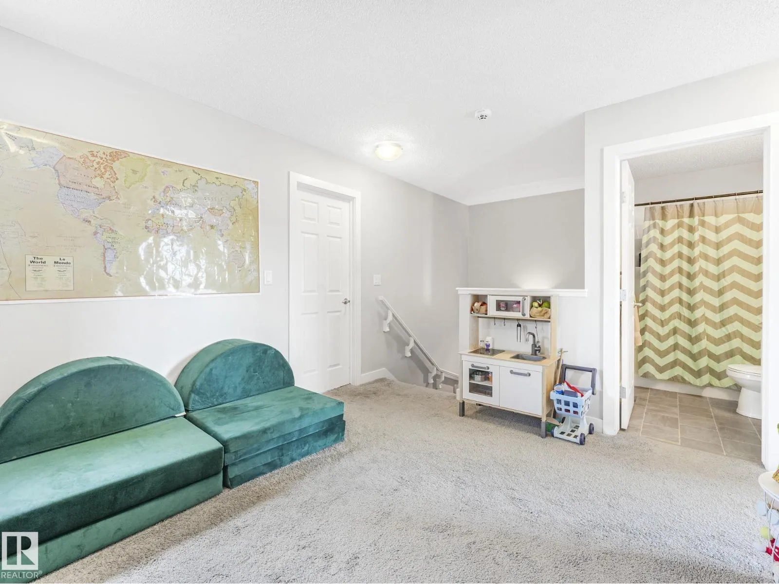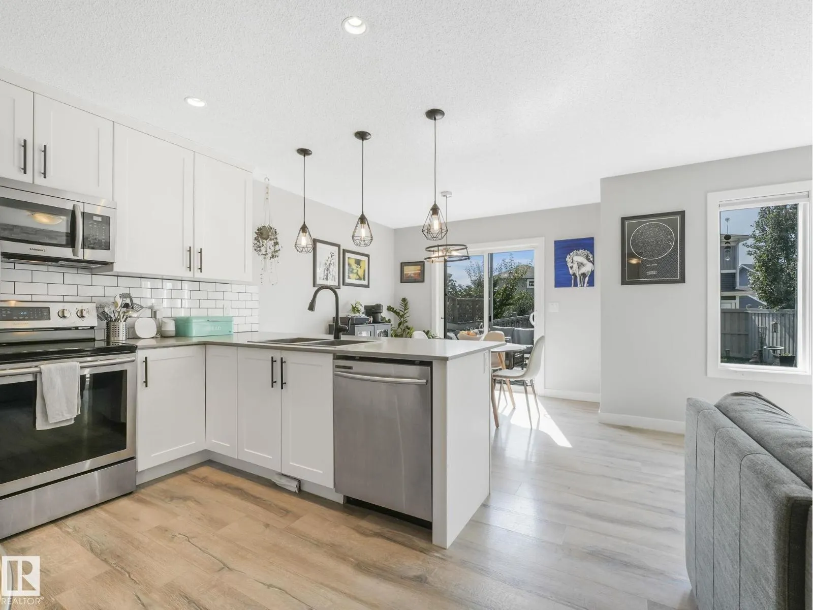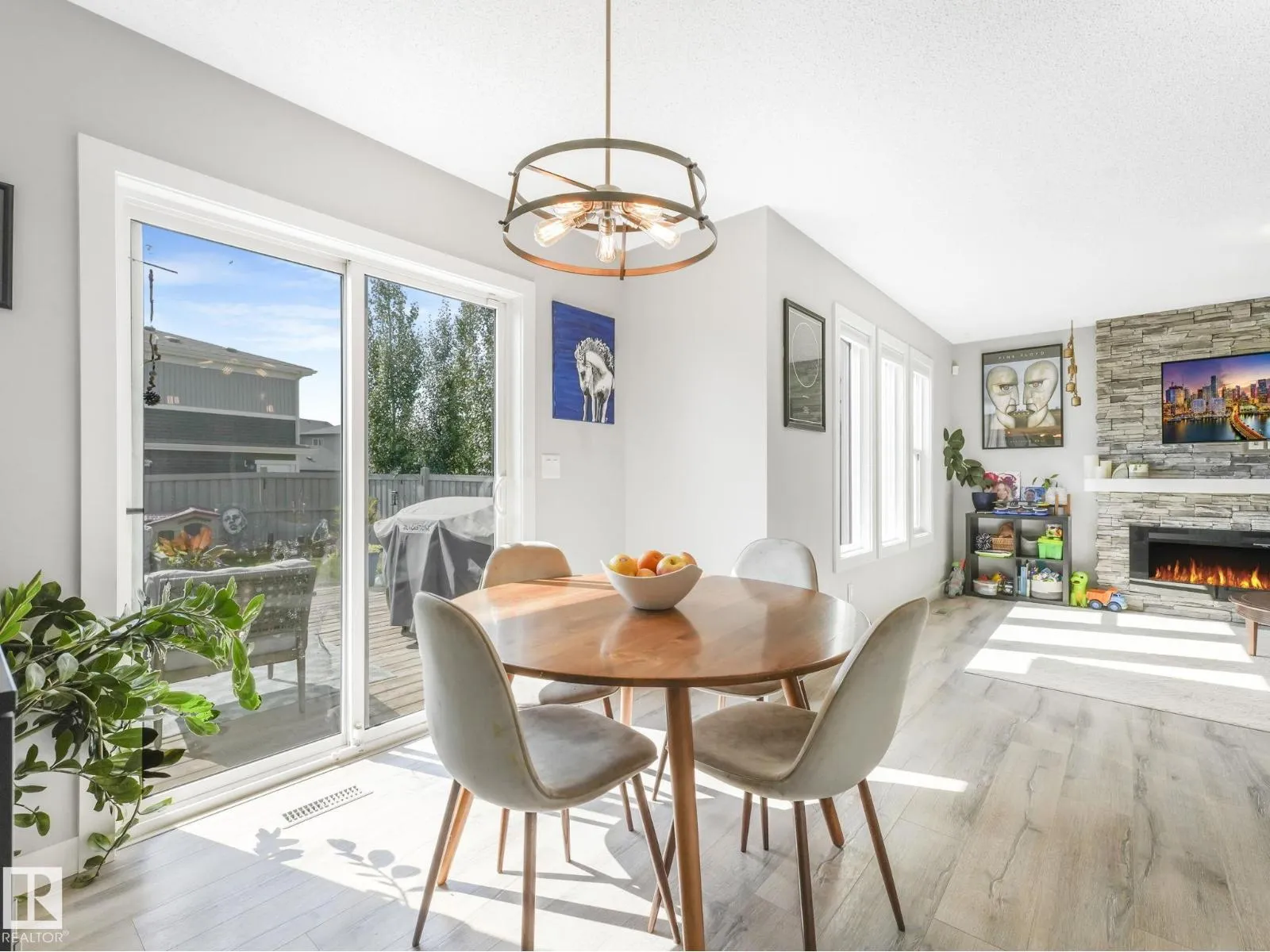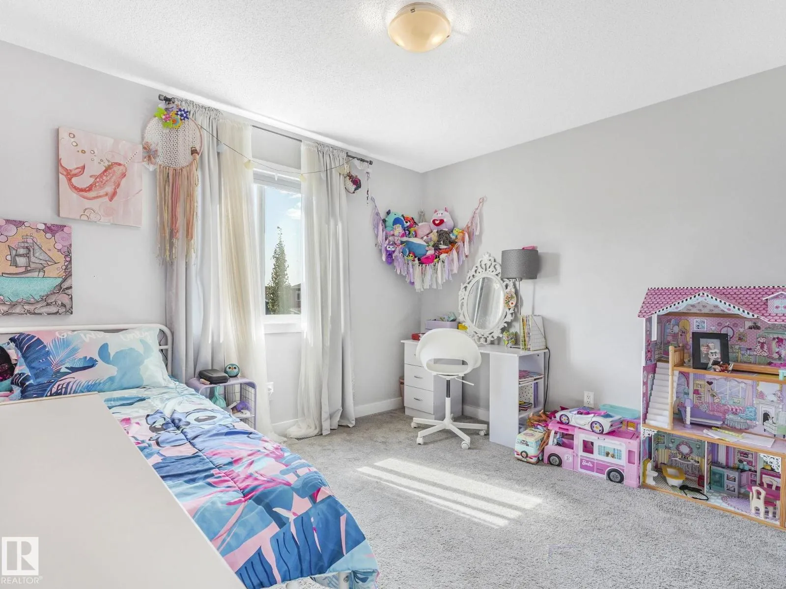 Bright 2-Storey in Rosenthal with South-Facing Yard! Welcome to this stunning 1,537 sqft detached home in the desirable west Edmonton community of Rosenthal. Thoughtfully designed with 3 bedrooms, 2.5 baths, and a bonus room, this home is perfect for families. The bright and open main floor features a modern kitchen with white cabinetry, quartz countertops, subway tile backsplash, stainless steel appliances, and a large peninsula island that overlooks the dining area and cozy living room with a stone feature wall and fireplace. Upstairs youâll find a spacious primary suite with a private ensuite, two very sizable additional bedrooms, a full bath, and a versatile bonus room ideal for a home office, play space, or media room. The unfinished basement offers plenty of potential to customize to your needs. Enjoy the convenience of a double attached garage plus a fully fenced, south-facing backyard with a large deck, all on a generous lot with no neighbours directly behind. Mins to schools, shopping and transit (id:27476)