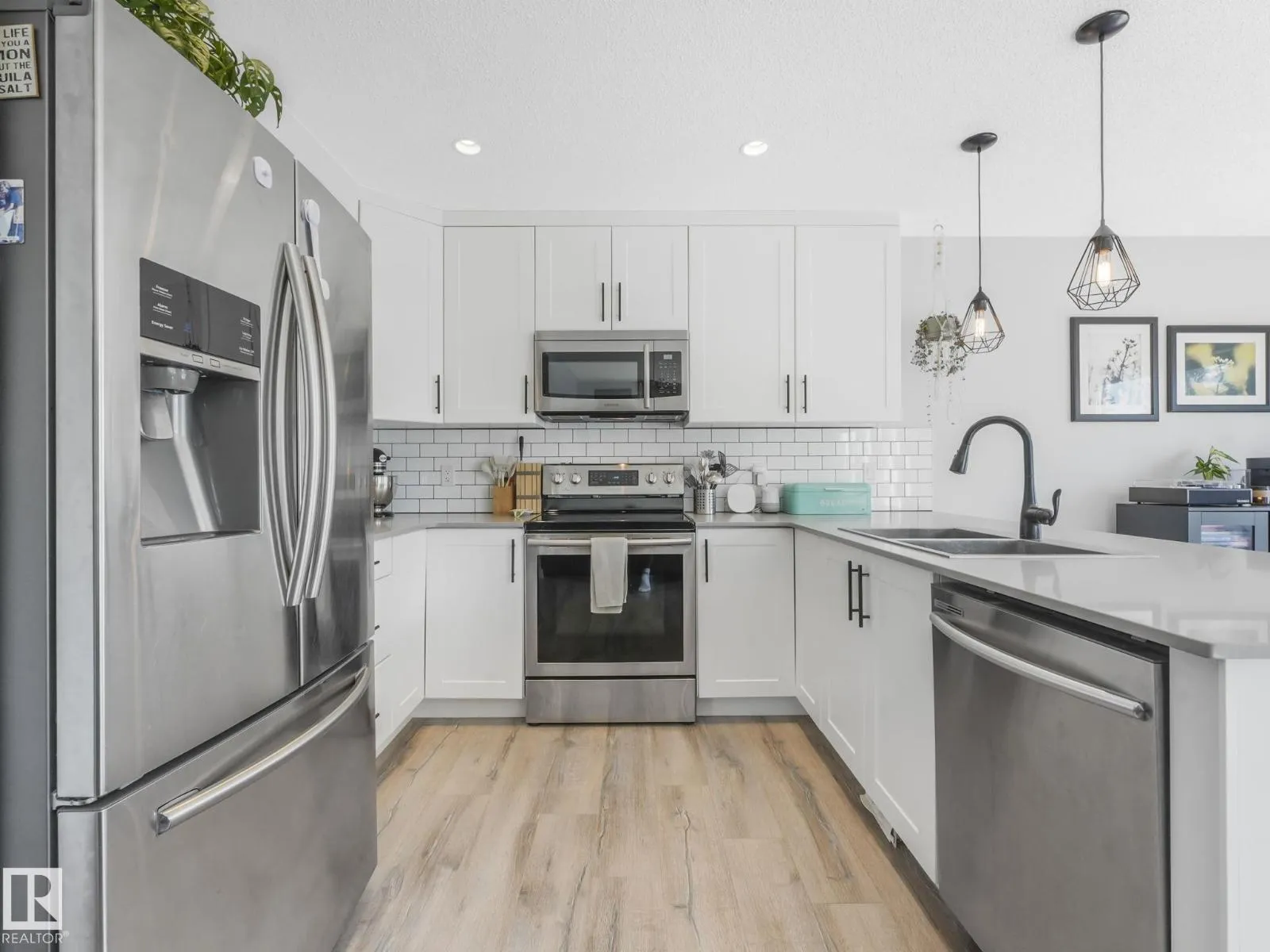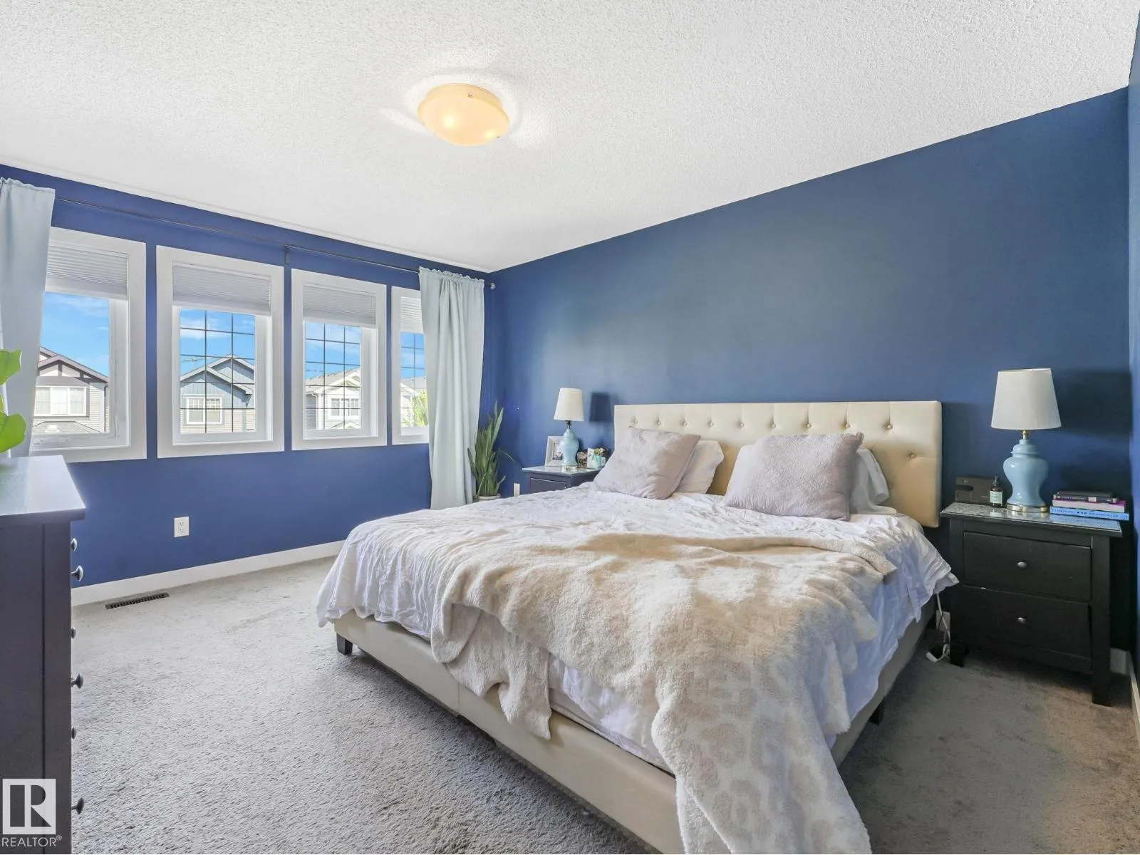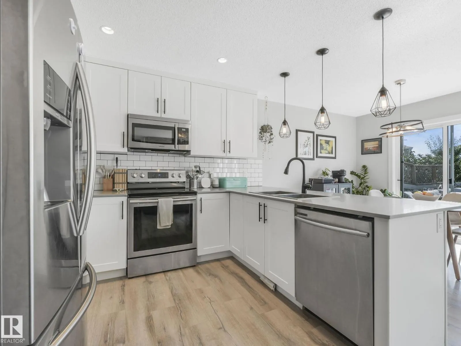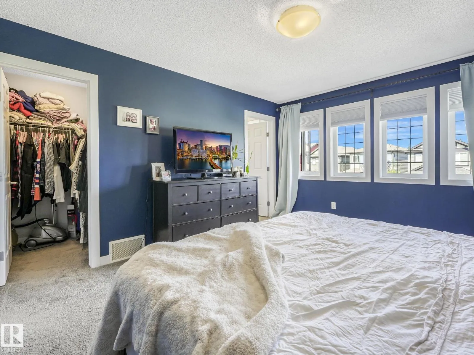 Bright 2-Storey in Rosenthal with South-Facing Yard! Welcome to this stunning 1,537 sqft detached home in the desirable west Edmonton community of Rosenthal. Thoughtfully designed with 3 bedrooms, 2.5 baths, and a bonus room, this home is perfect for families. The bright and open main floor features a modern kitchen with white cabinetry, quartz countertops, subway tile backsplash, stainless steel appliances, and a large peninsula island that overlooks the dining area and cozy living room with a stone feature wall and fireplace. Upstairs youâll find a spacious primary suite with a private ensuite, two very sizable additional bedrooms, a full bath, and a versatile bonus room ideal for a home office, play space, or media room. The unfinished basement offers plenty of potential to customize to your needs. Enjoy the convenience of a double attached garage plus a fully fenced, south-facing backyard with a large deck, all on a generous lot with no neighbours directly behind. Mins to schools, shopping and transit (id:27476)