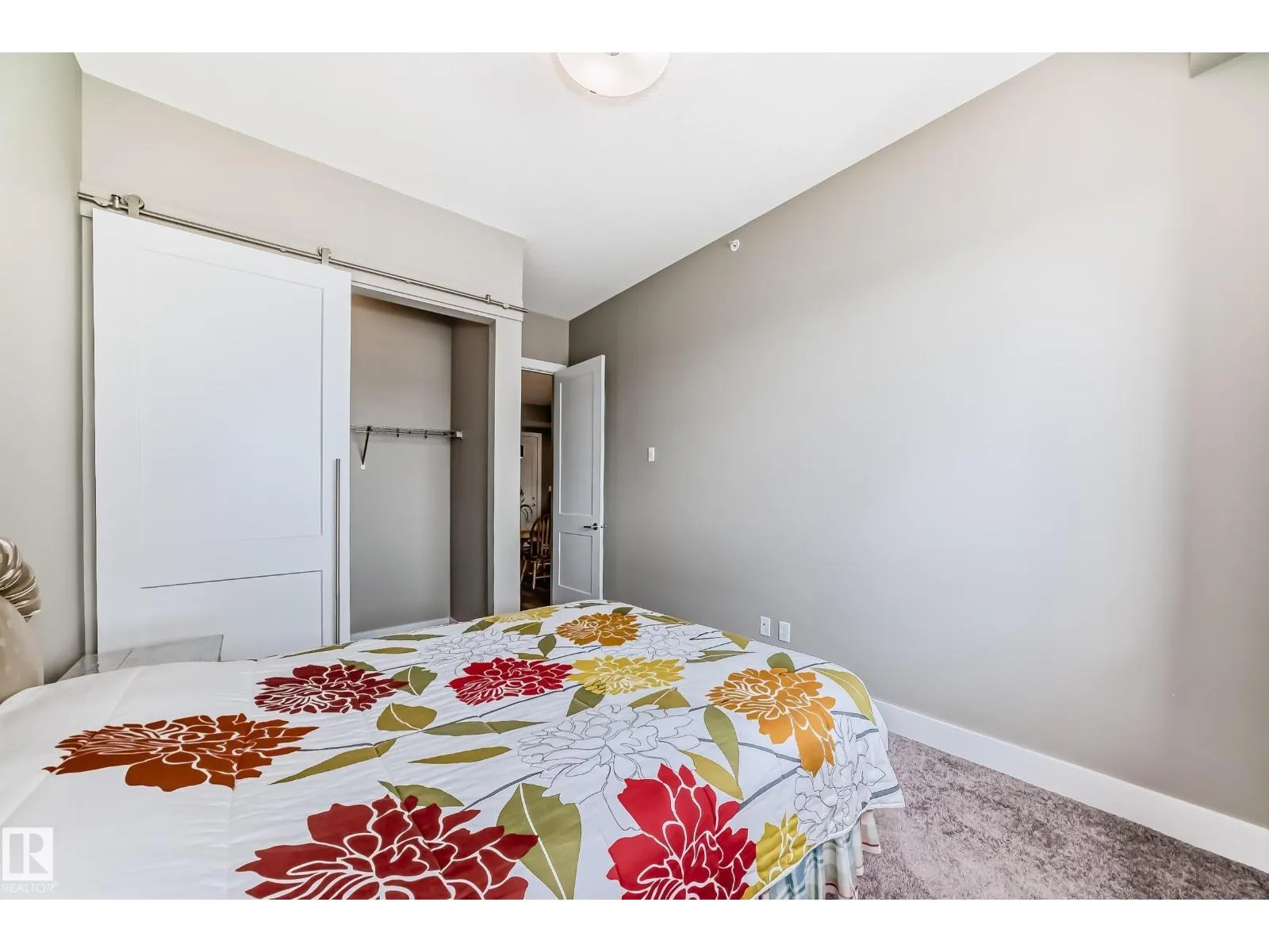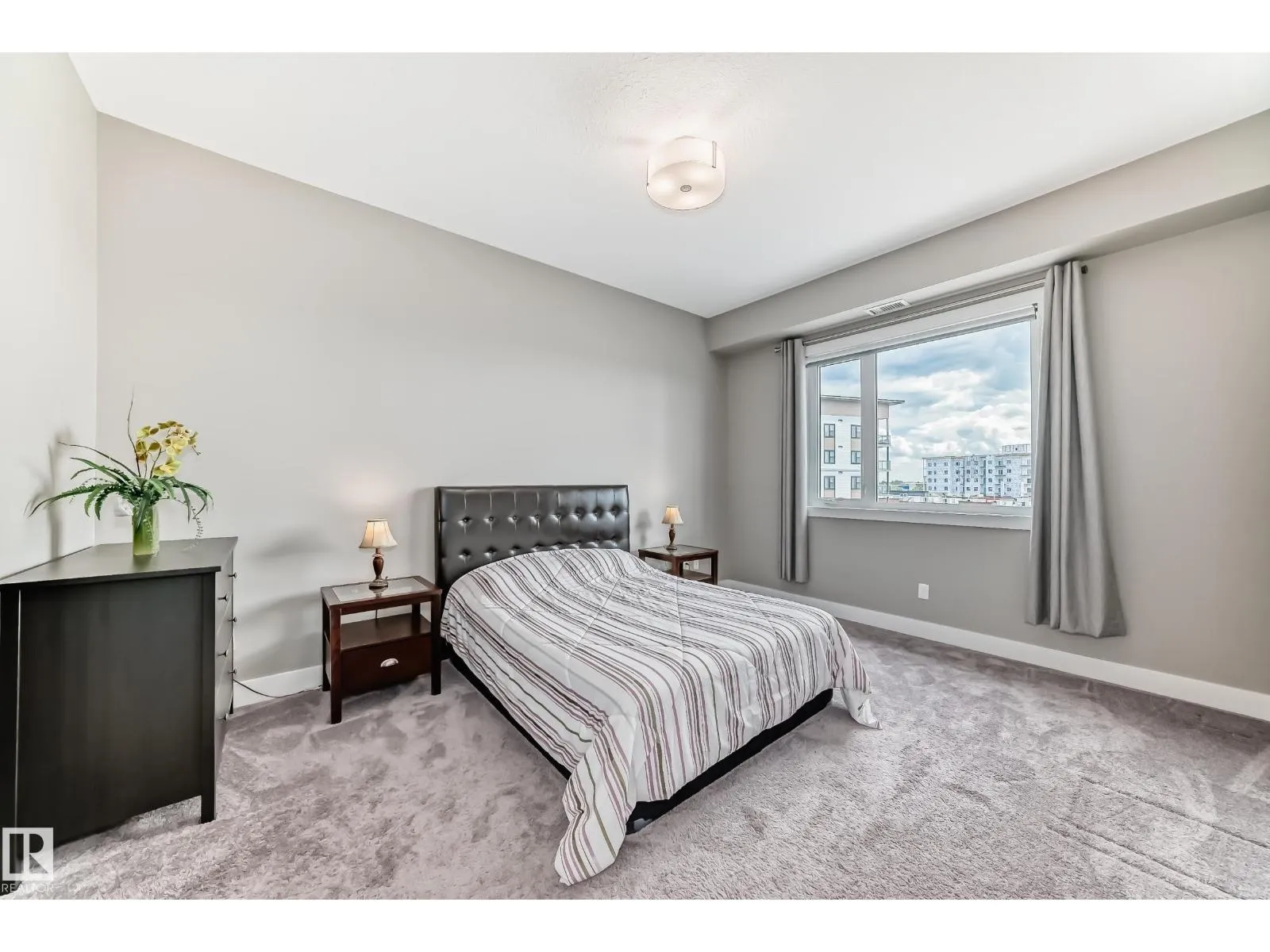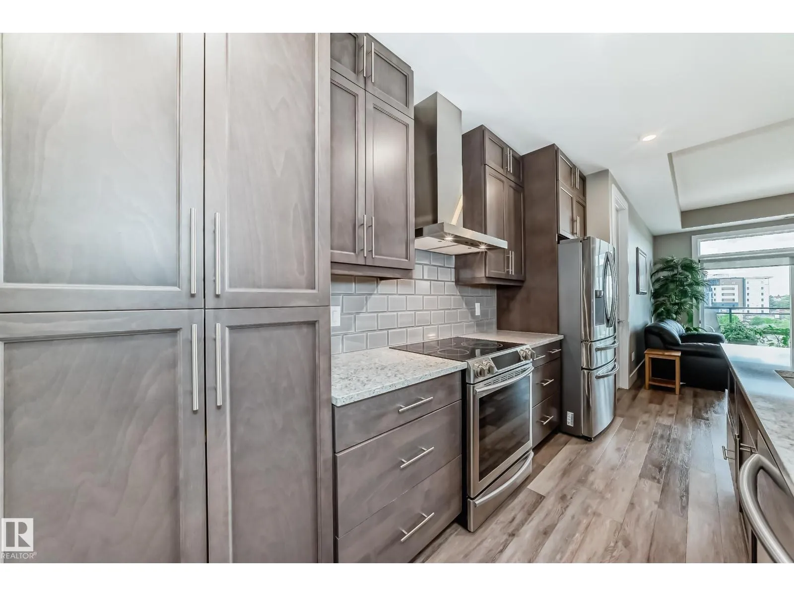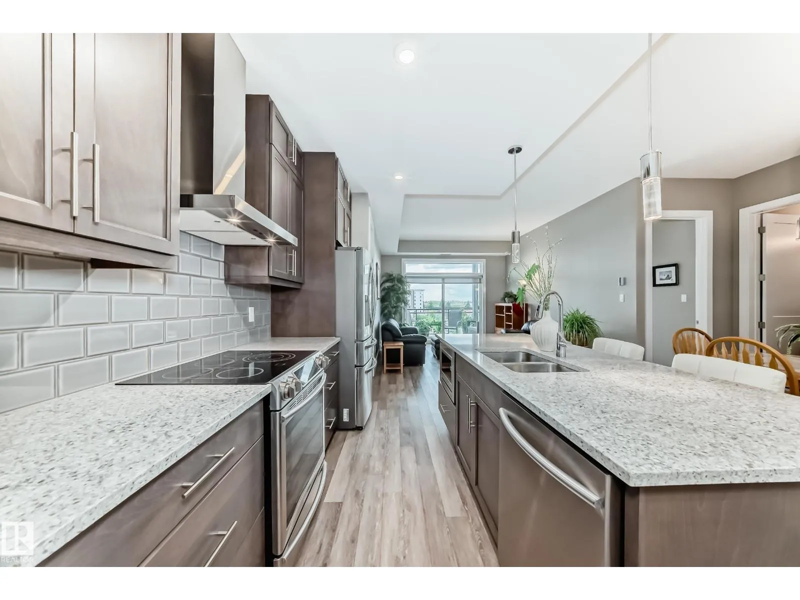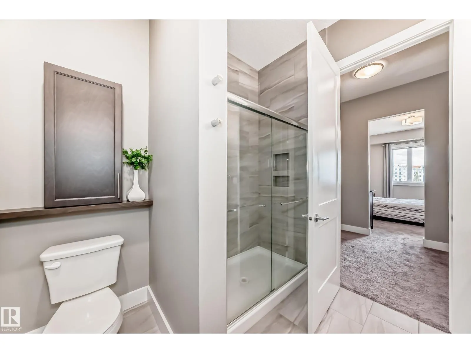 Welcome to this Superior Curb Appeal top floor, 2 bedrooms, 2 bathrooms condo offers Unparalleled Value and Build Quality, situated in the desirable Griesbach community! only steps to Lakes, Park, Playground, Walking-trail, K-9 School, Shopping, shops, restaurants, Northgate ETS, etc... Features open concept, large & bright 10 ft ceiling living room with luxury vinyl plank floorings throughout enhance the sophistication & elevate the allure of this home! Great balcony offers beautify downtown view & perfect for summer BBQ! Spacious kitchen boasts SS appliances, large kitchen island, quartz countertops & an abundance of cabinets. 2 sizable bedrooms & a 4 piece bathroom. King-sized master bedroom c/w a 4pc en-suite & walk-through closet. An in-suite laundry with high-end front load washer & dryer. Title heated underground parking stall with a storage cage. Building amenities including fitness room, guest suite & social room. Shows 10/10! Quick possession available. Just move-in & ENJOY! (id:27476)