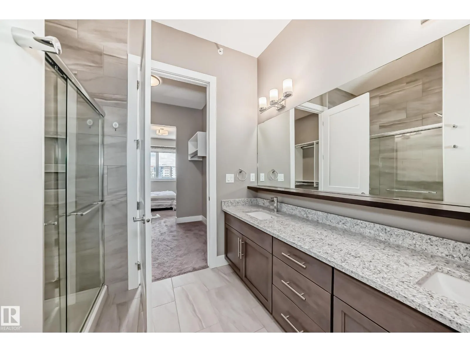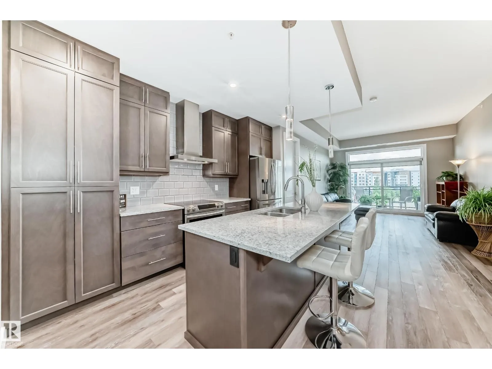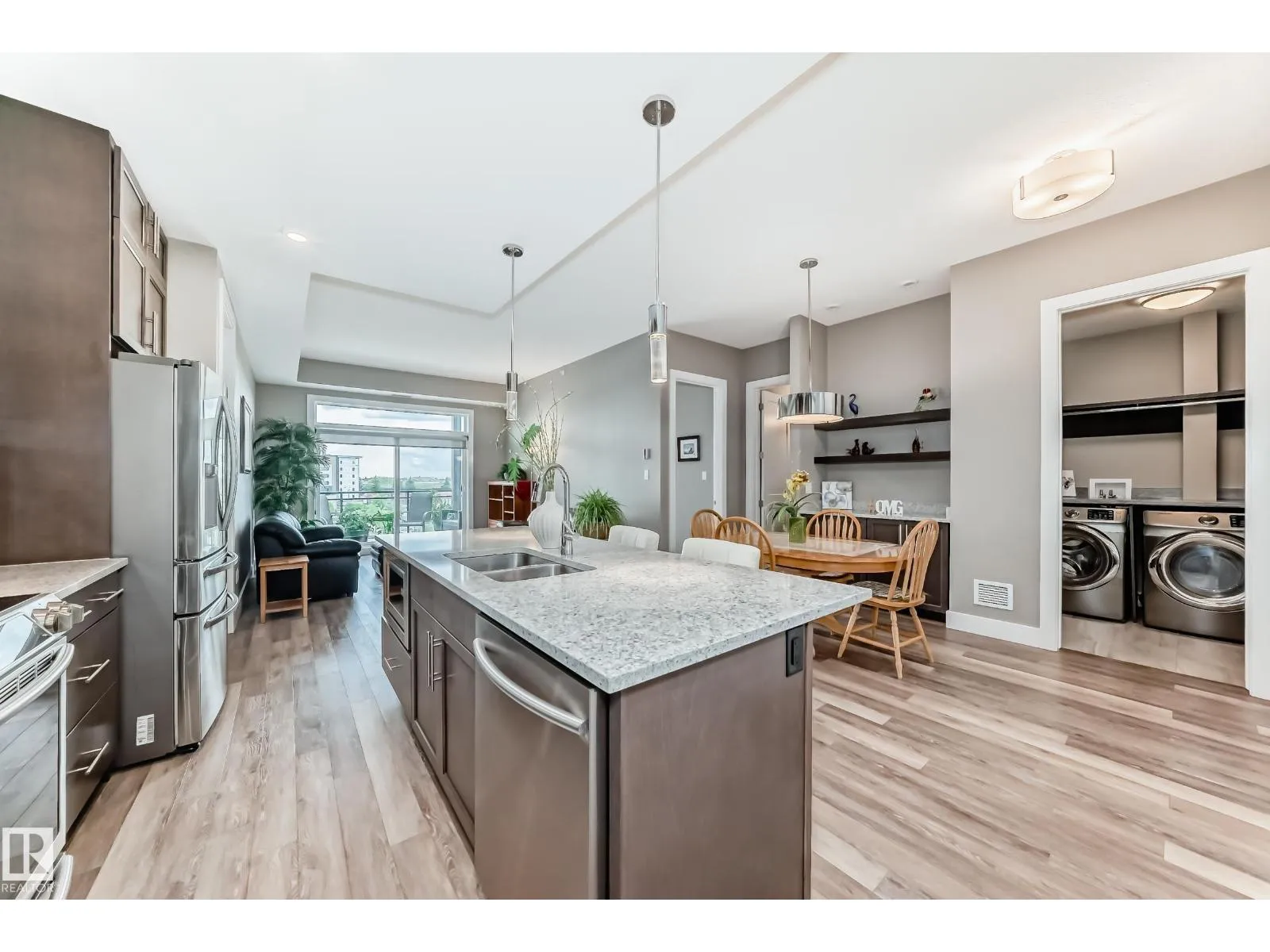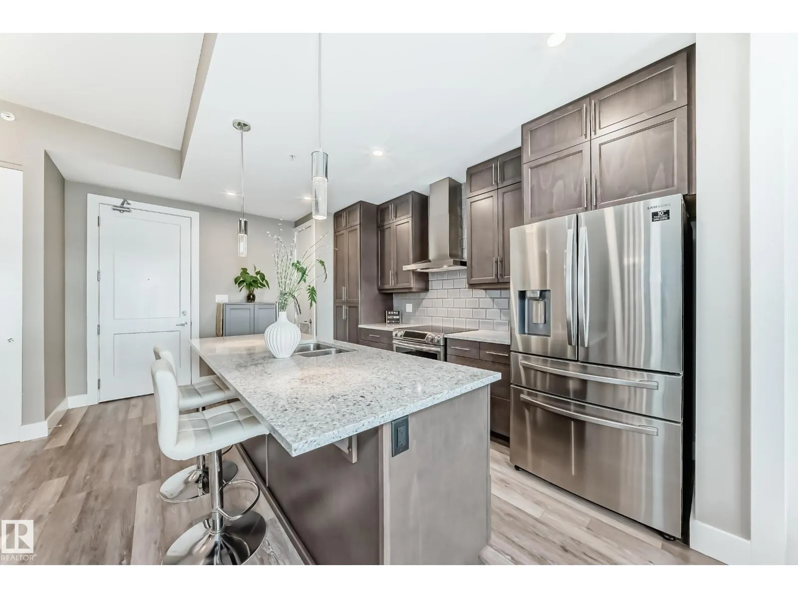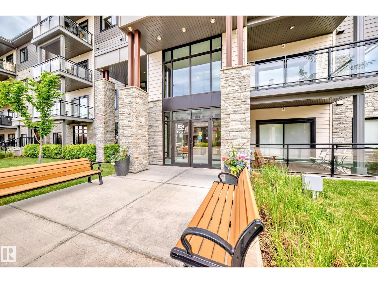 Welcome to this Superior Curb Appeal top floor, 2 bedrooms, 2 bathrooms condo offers Unparalleled Value and Build Quality, situated in the desirable Griesbach community! only steps to Lakes, Park, Playground, Walking-trail, K-9 School, Shopping, shops, restaurants, Northgate ETS, etc... Features open concept, large & bright 10 ft ceiling living room with luxury vinyl plank floorings throughout enhance the sophistication & elevate the allure of this home! Great balcony offers beautify downtown view & perfect for summer BBQ! Spacious kitchen boasts SS appliances, large kitchen island, quartz countertops & an abundance of cabinets. 2 sizable bedrooms & a 4 piece bathroom. King-sized master bedroom c/w a 4pc en-suite & walk-through closet. An in-suite laundry with high-end front load washer & dryer. Title heated underground parking stall with a storage cage. Building amenities including fitness room, guest suite & social room. Shows 10/10! Quick possession available. Just move-in & ENJOY! (id:27476)