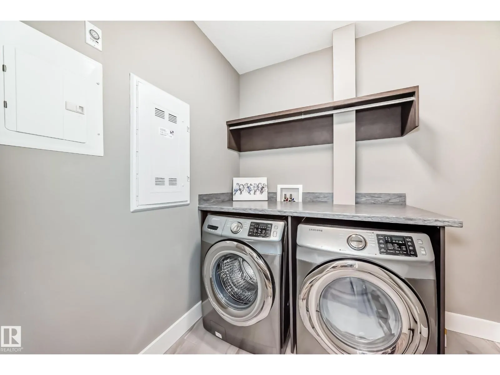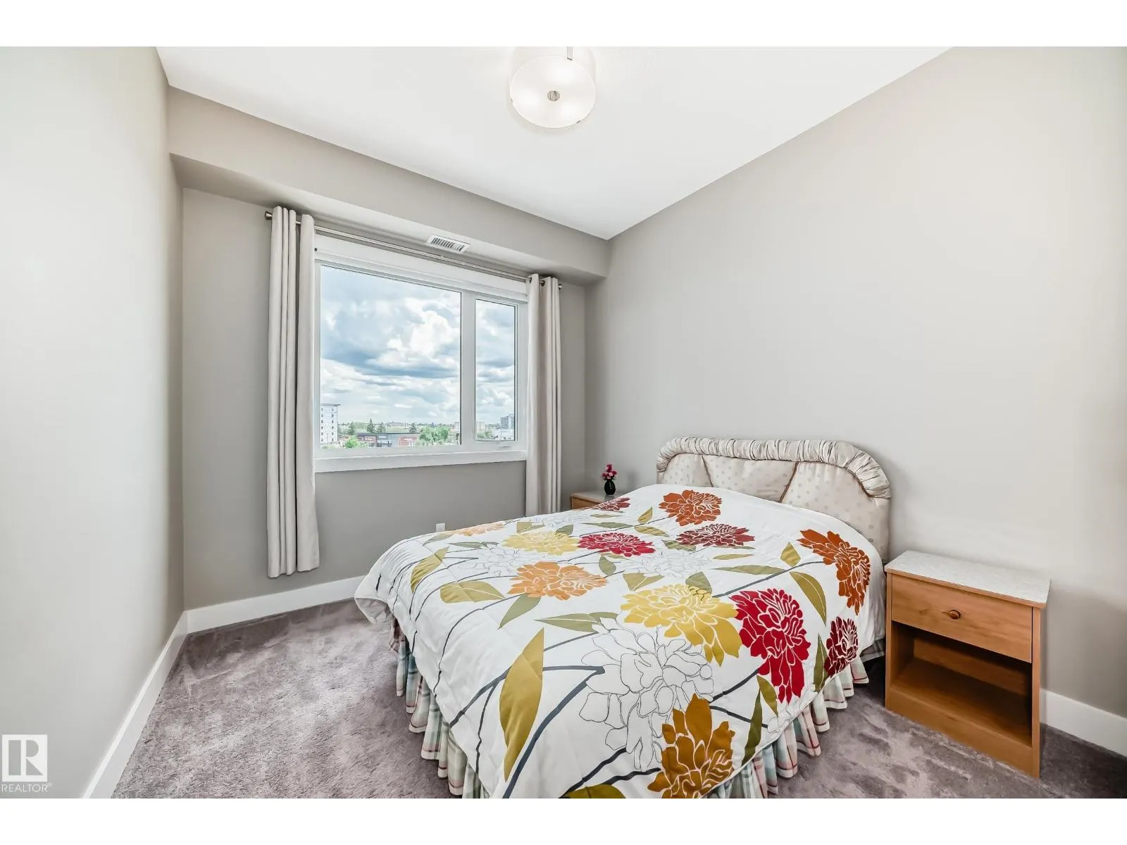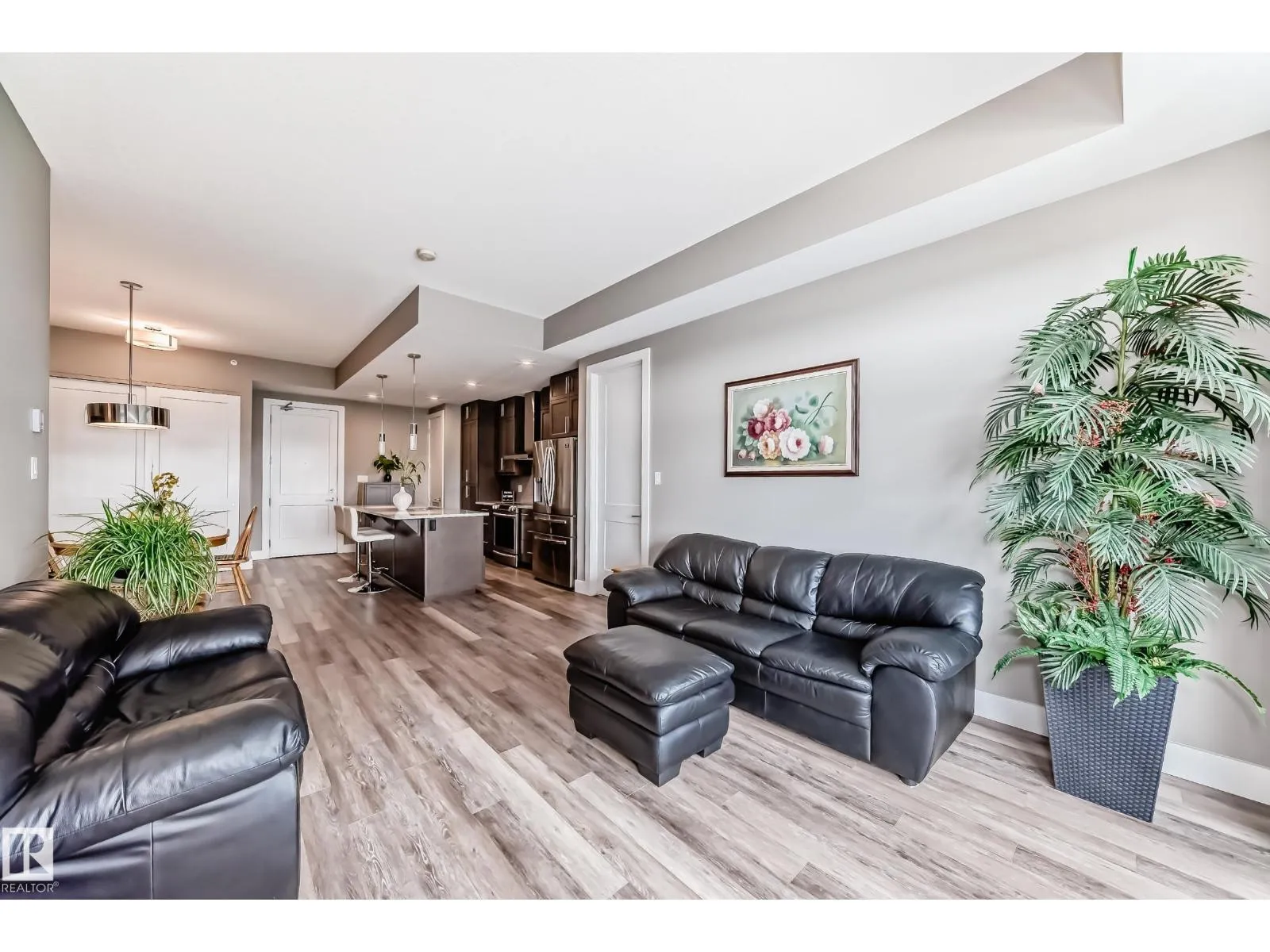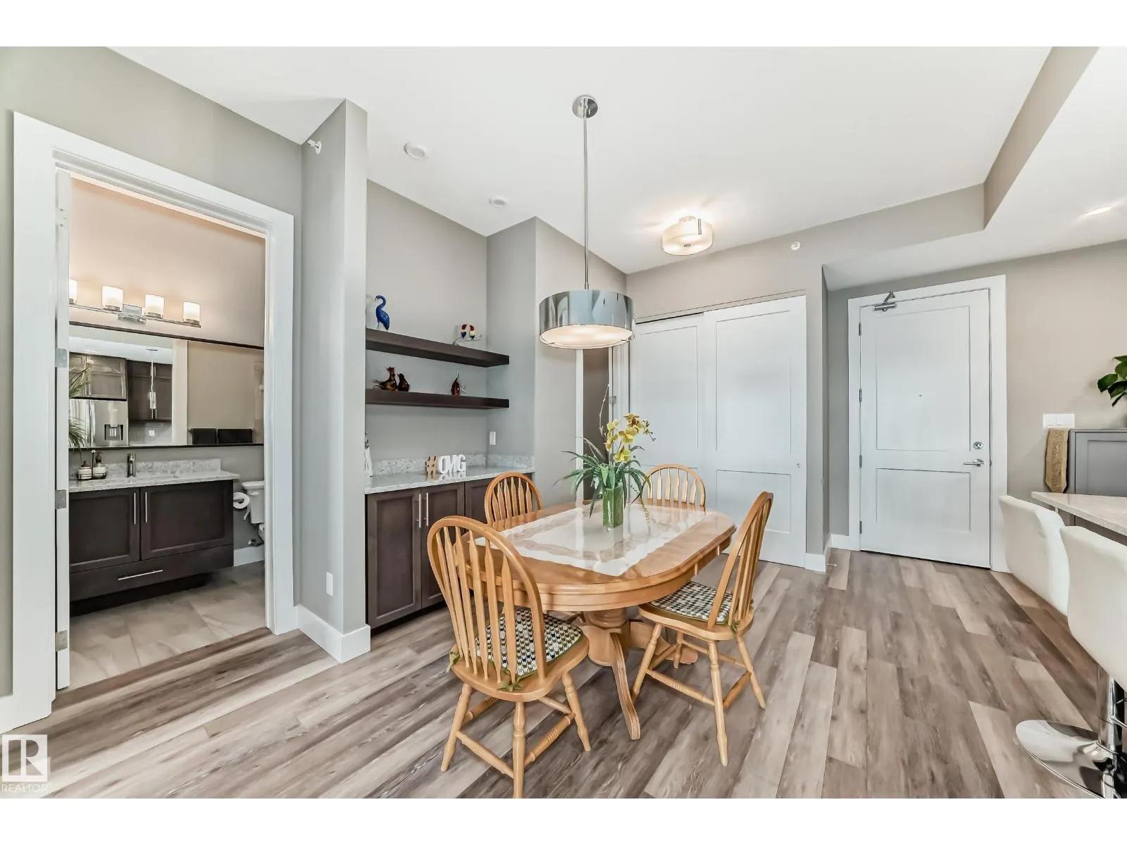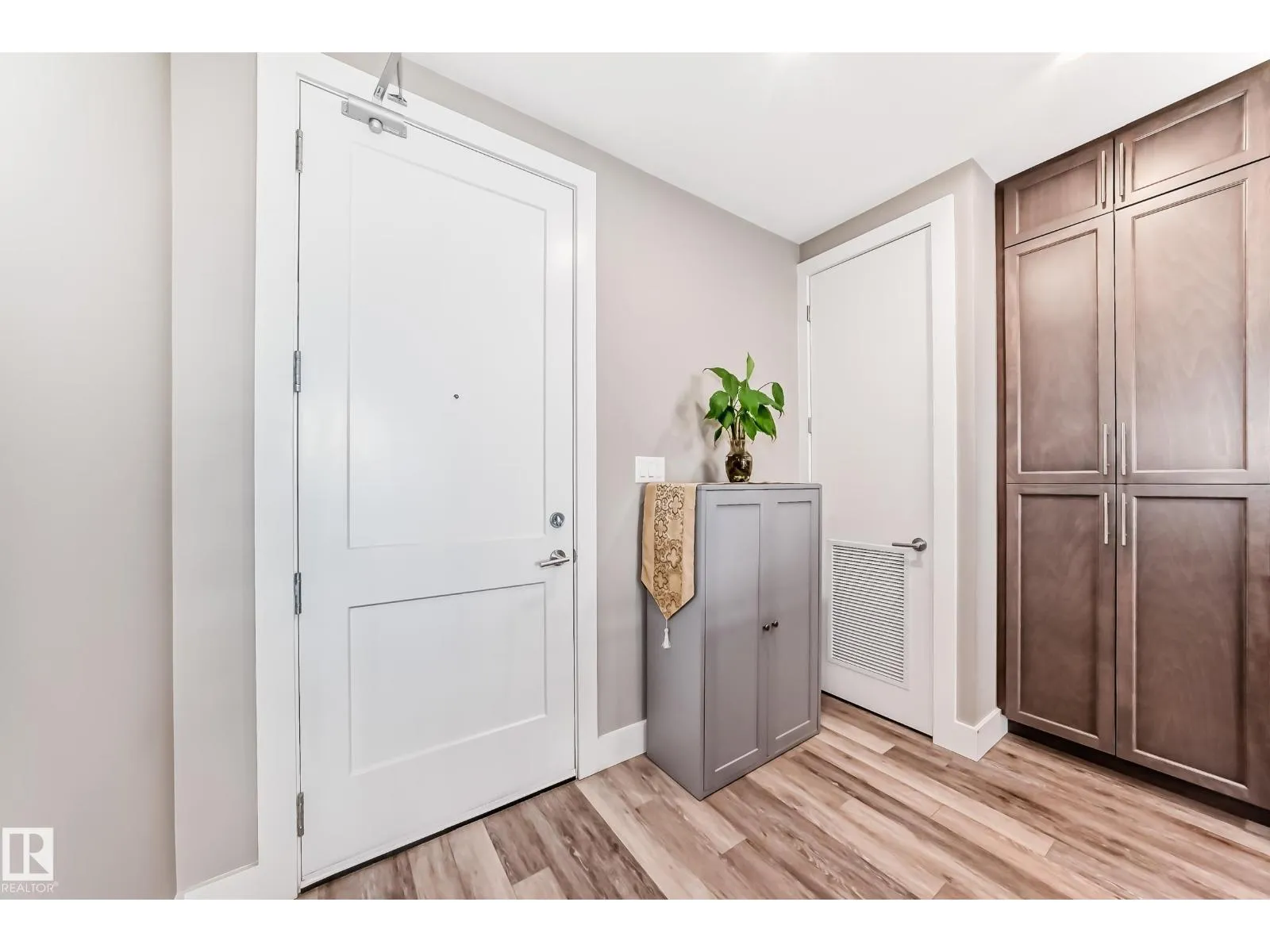 Welcome to this Superior Curb Appeal top floor, 2 bedrooms, 2 bathrooms condo offers Unparalleled Value and Build Quality, situated in the desirable Griesbach community! only steps to Lakes, Park, Playground, Walking-trail, K-9 School, Shopping, shops, restaurants, Northgate ETS, etc... Features open concept, large & bright 10 ft ceiling living room with luxury vinyl plank floorings throughout enhance the sophistication & elevate the allure of this home! Great balcony offers beautify downtown view & perfect for summer BBQ! Spacious kitchen boasts SS appliances, large kitchen island, quartz countertops & an abundance of cabinets. 2 sizable bedrooms & a 4 piece bathroom. King-sized master bedroom c/w a 4pc en-suite & walk-through closet. An in-suite laundry with high-end front load washer & dryer. Title heated underground parking stall with a storage cage. Building amenities including fitness room, guest suite & social room. Shows 10/10! Quick possession available. Just move-in & ENJOY! (id:27476)