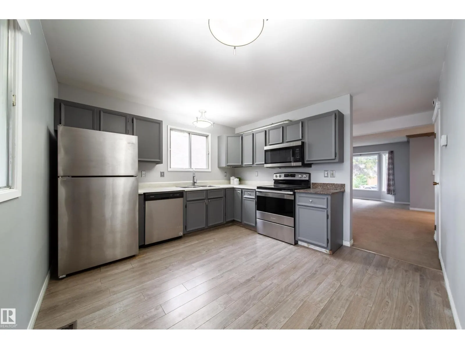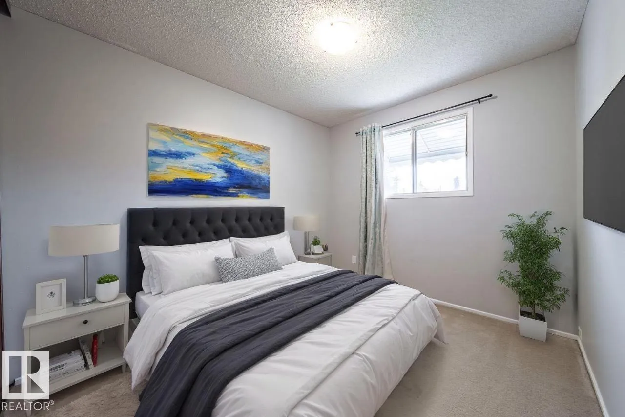 A perfect starter home or investment opportunity in the heart of Lymburn! This bright, well-kept home offers incredible value in a family-friendly west-end location, just minutes from West Edmonton Mall, parks, schools, public transit, and the YMCA. The main floor features a spacious open-concept living and dining area, perfect for family gatherings and entertaining. The refreshed kitchen shines with newer stainless steel appliances (2019+), plenty of cupboard and pantry space, and access to a large fenced backyard complete with a deck, fire pit, and storage shed. Upstairs, youâll find three generous bedrooms, including a large primary suite with a full wall of closets. The partially finished basement offers a rec room, laundry area, rough-ins for a future bathroom, and plenty of storage. A long front driveway provides ample parking, including space for an RV. Recent updates include a new roof (2020) and a new hot water tank (2024). Affordable, functional, and move-in ready! (id:27476)