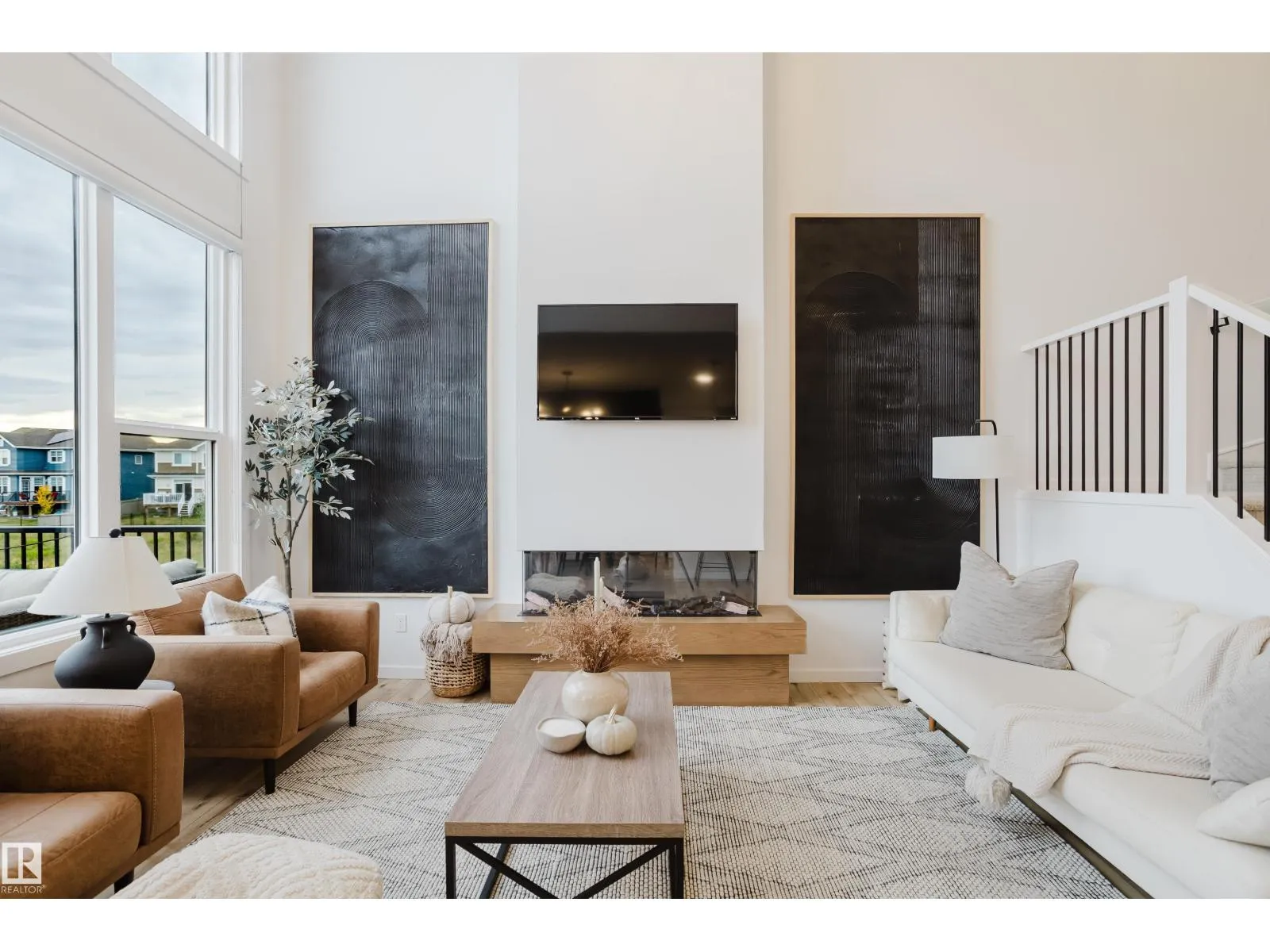 Welcome to this beautiful 2-storey home in The Orchards at Ellerslie, offering over 1,987 sq. ft. of above-grade living space and a prime location backing onto trees and a serene pond. Built in 2021, this thoughtfully designed home features 3 spacious bedrooms, 2.5 bathrooms, and an inviting open-concept main floor with 10-ft ceilings. The bright living room centers around a cozy electric fireplace, while the modern kitchen boasts sleek appliances and a large dining area perfect for family gatherings. Upstairs, the primary suite includes a private ensuite and walk-in closet connected to your laundry, with two additional bedrooms and a versatile bonus room nearby. Additional highlights include a mudroom, main floor office, double attached garage, and a full unfinished basement ready for your personal touch. Enjoy nearby parks, walking trails, and community amenities in one of Edmontonâs most sought-after family neighbourhoods. (id:27476)