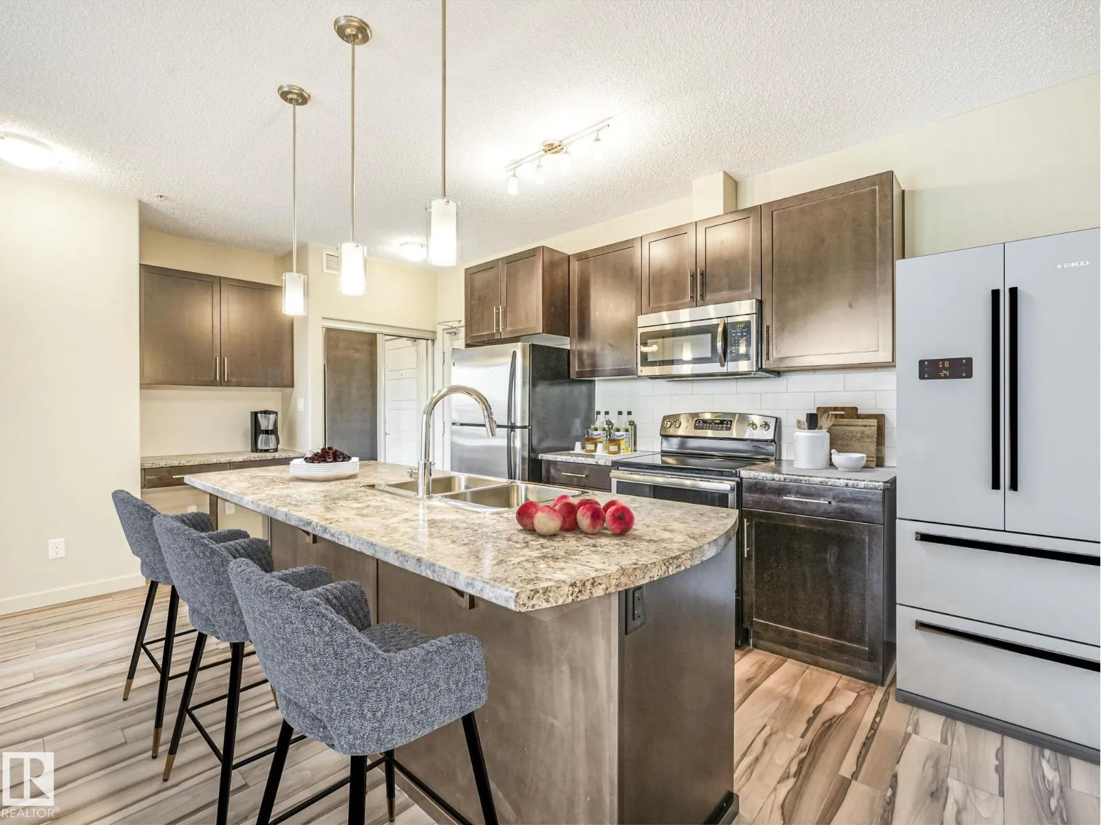 Welcome to your Home2Love in Allard! This bright and spacious 2 bedroom, 2 bathroom condo offers the perfect combination of comfort and convenience. The open-concept design is highlighted by 9 ft ceilings, large windows, and modern finishes throughout. Youâll love the convenience of in-suite laundry, 2 parking stalls (1 underground & 1 right next to the front entrance), and low condo fees in this pet-friendly building. The well-appointed kitchen flows seamlessly into the living and dining areas, creating the perfect space for entertaining. The primary suite features a walk-through double closet and private ensuite, while the second bedroom and full bath are ideal for guests, roommates, or a home office. Building amenities include a fitness room and a social lounge with billiards table, giving you extra space to relax or connect with friends. Situated in a highly desirable location, youâre just minutes from schools, shopping centres, Blackmud Creek Ravine, and quick access to the Anthony Henday. (id:27476)