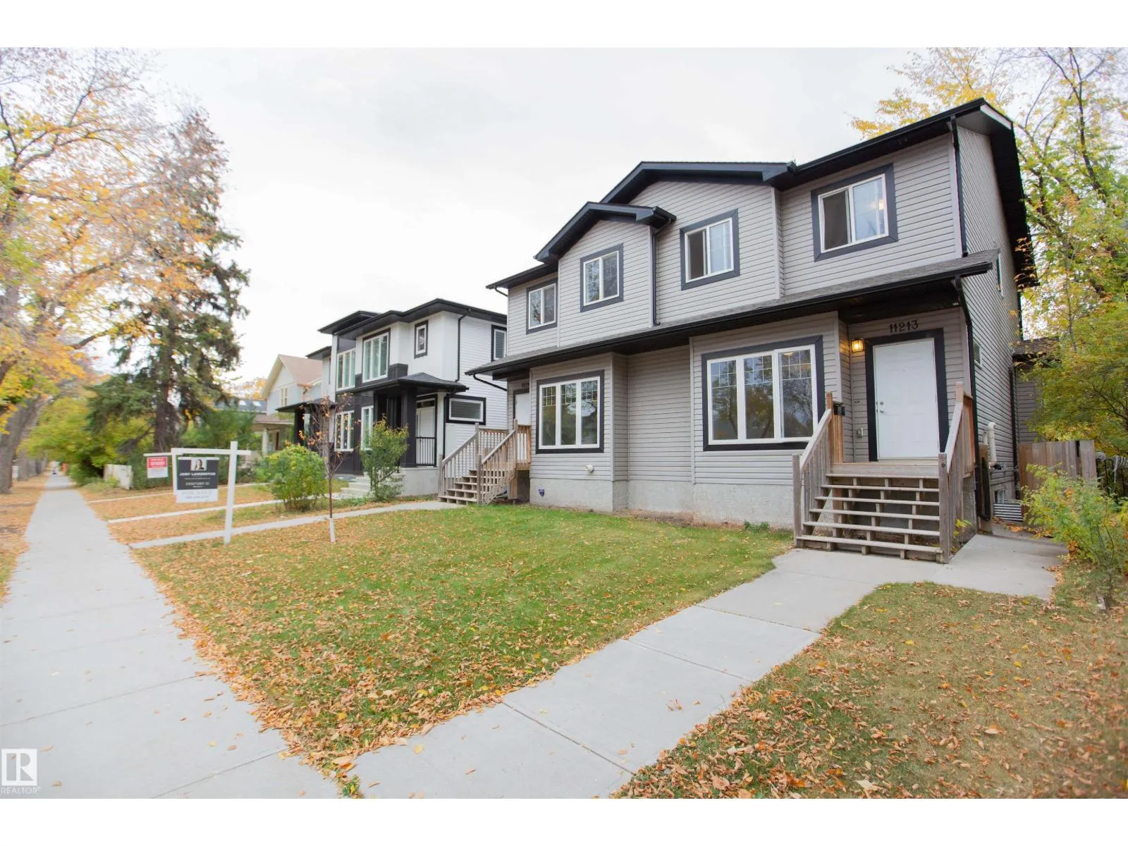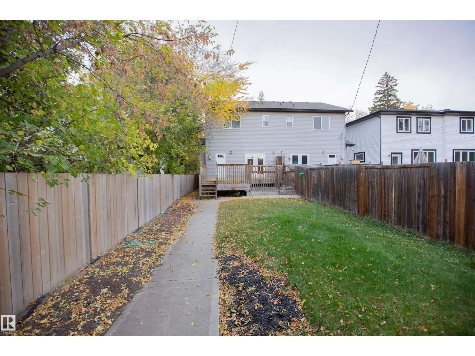 Discover this beautifully updated half duplex in Inglewoodâjust steps from 124 Streetâs vibrant boutiques, cafes, and dog park. The bright, open layout on the main floor creates a warm and inviting space for gatherings, featuring a contemporary kitchen with ample cabinetry, subway tile backsplash, stainless steel appliances, and a large island. Upstairs, youâll find three well-sized bedrooms, including a spacious primary suite with a walk-in closet and a luxurious 5-piece ensuite, along with a second full bath. The fully finished basement adds versatility with a fourth bedroom, another full bath, and a separate entranceâperfect for extended family or a future suite. The fenced backyard offers privacy and convenient access to the double detached garage. With fresh paint throughout, and new carpets upstairs this home is move-in ready and ideally situated close to downtown, parks, schools, and all of Edmontonâs central conveniences. (id:27476)