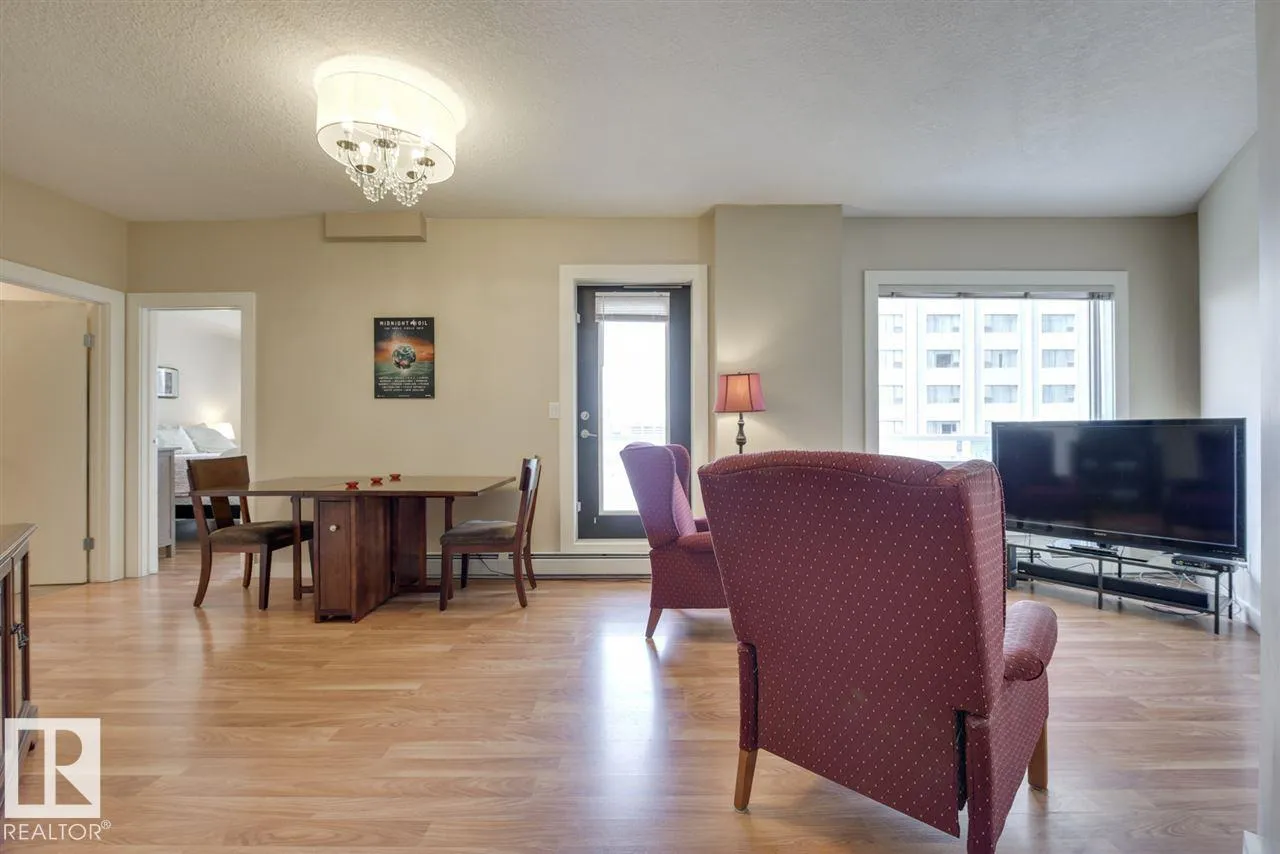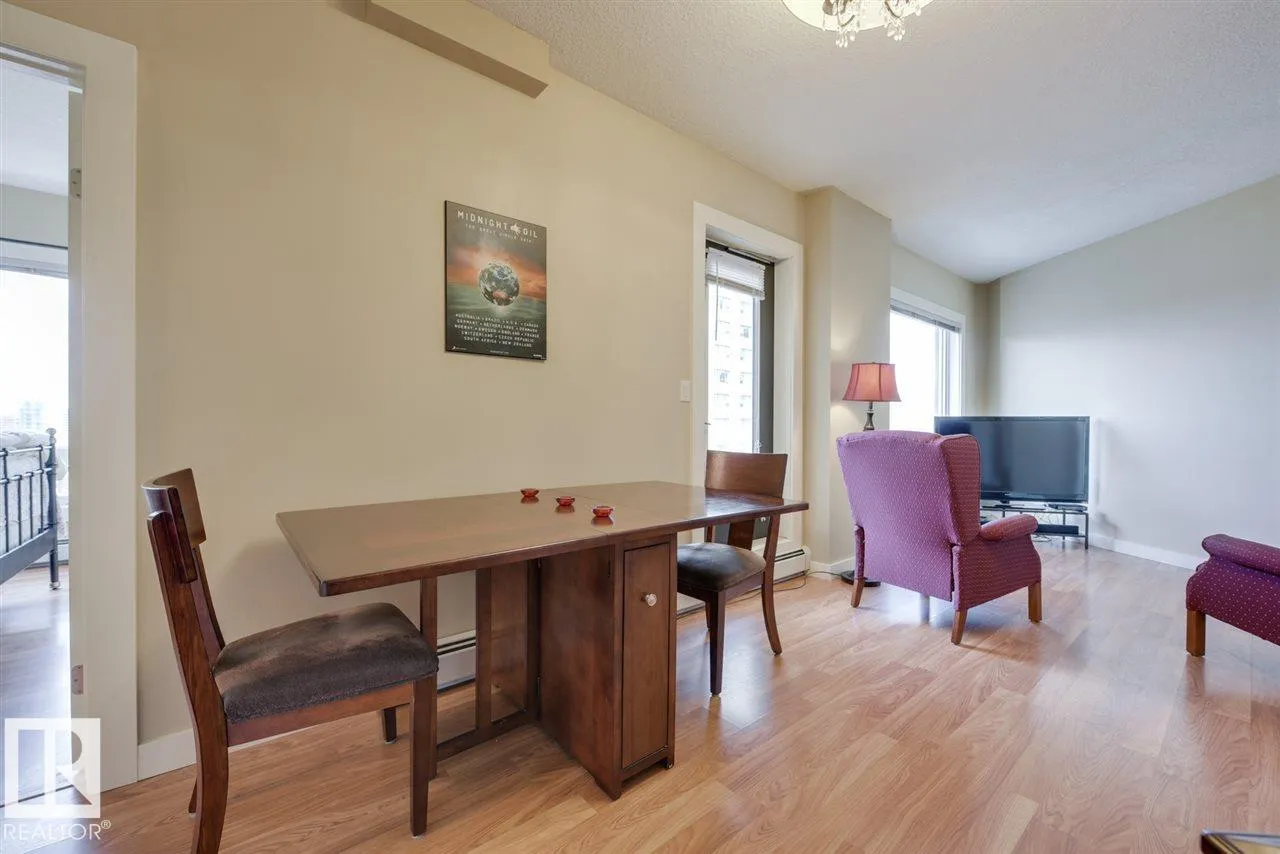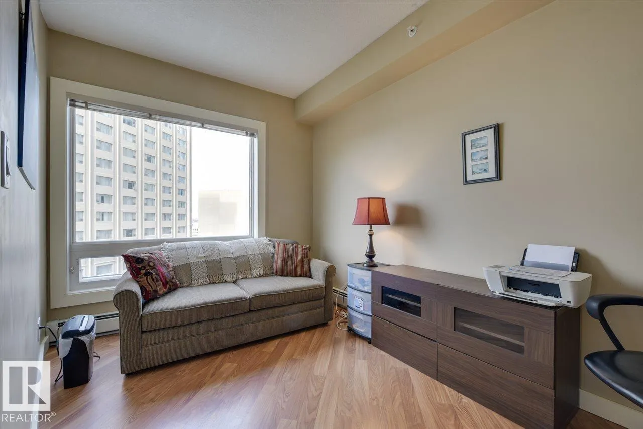 CITY VIEWS from this 671 Sq.ft. ONE BEDROOM PLUS DEN condo in the ICON I. ALL FURNITURE INCLUDED! Live in the heart of the city within walking distance to Ice District, LRT, MacEwan University, and the downtown core. Right on 104th street you will find some of the best cafes, restaurants, and nightlife in the city. Inside you have a well maintained suite with a rare 1 bedroom plus den layout. Living and dining room with large west facing windows. Kitchen with stainless steel appliances and tile backsplash. The master bedroom is next to the 4 piece bathroom. The den has a large window that can be used as a second bedroom. Laminate flooring throughout with tile in the bathroom and utility room. West facing balcony with city views. Included is the stove, fridge, dishwasher, built-in microwave, INSUITE WASHER AND DRYER, window coverings and the furniture. TITLED UNDERGROUND PARKING UNIT #170. Modern building, in an excellent location. (id:27476)