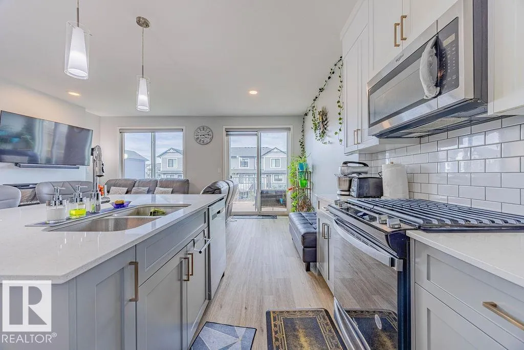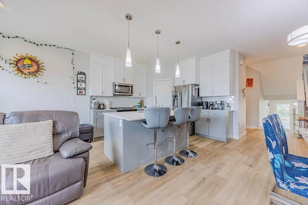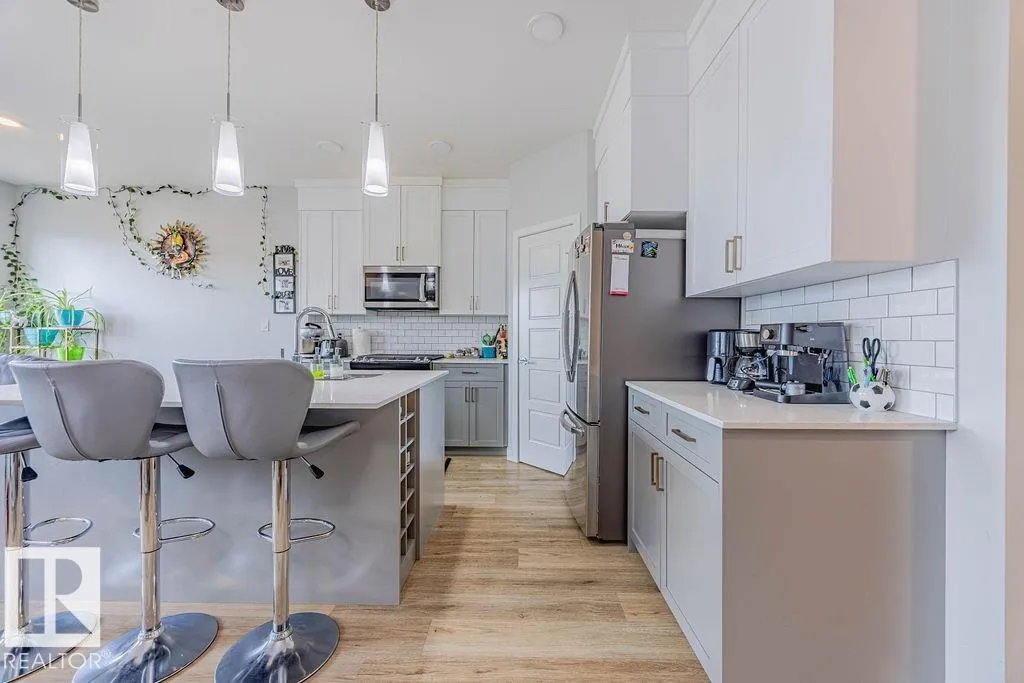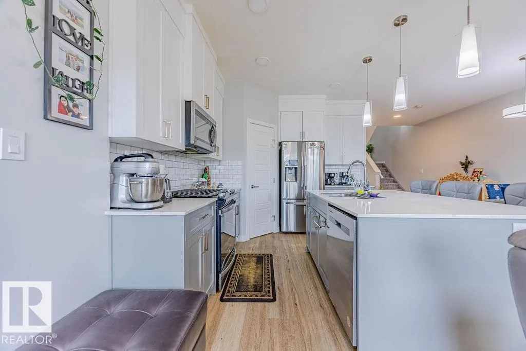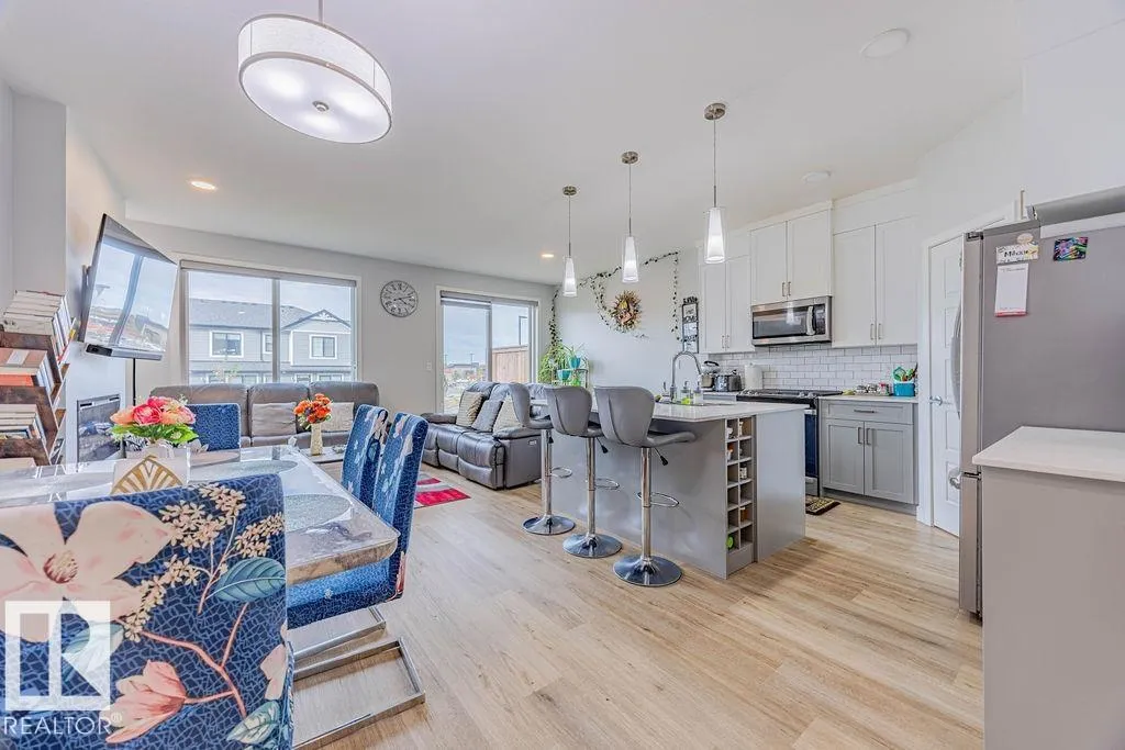 Open concept living, 3 beds, 3 baths, bonus room & a large yard + brand new fencing on your list? This home has it all + an attached garage! Move in Ready, it features a large main floor with tons of space to entertain & enjoy. The great room is spacious with a modern linear fireplace. The bright, white kitchen has extended cabinets, quartz countertops, a gas stove & corner pantry + an island w/ eating bar. The dining room is spacious & easily fits a 6+ person table. There is direct access to the deck & with the home backing a walking trail, there is no direct rear neighbour. Upstairs the primary suite is large with its own ensuite & walk in closet. Youâll also find a large bonus room, 2 more bedrooms, the main bath & laundry room. The basement is waiting for your finishing touch! Welcome to the family orientated neighbourhood of the Orchards of Ellerslie where youâll find parks, walking trails, schools & shopping all easily accessible. Visit the REALTOR®âs website for more details. (id:27476)
