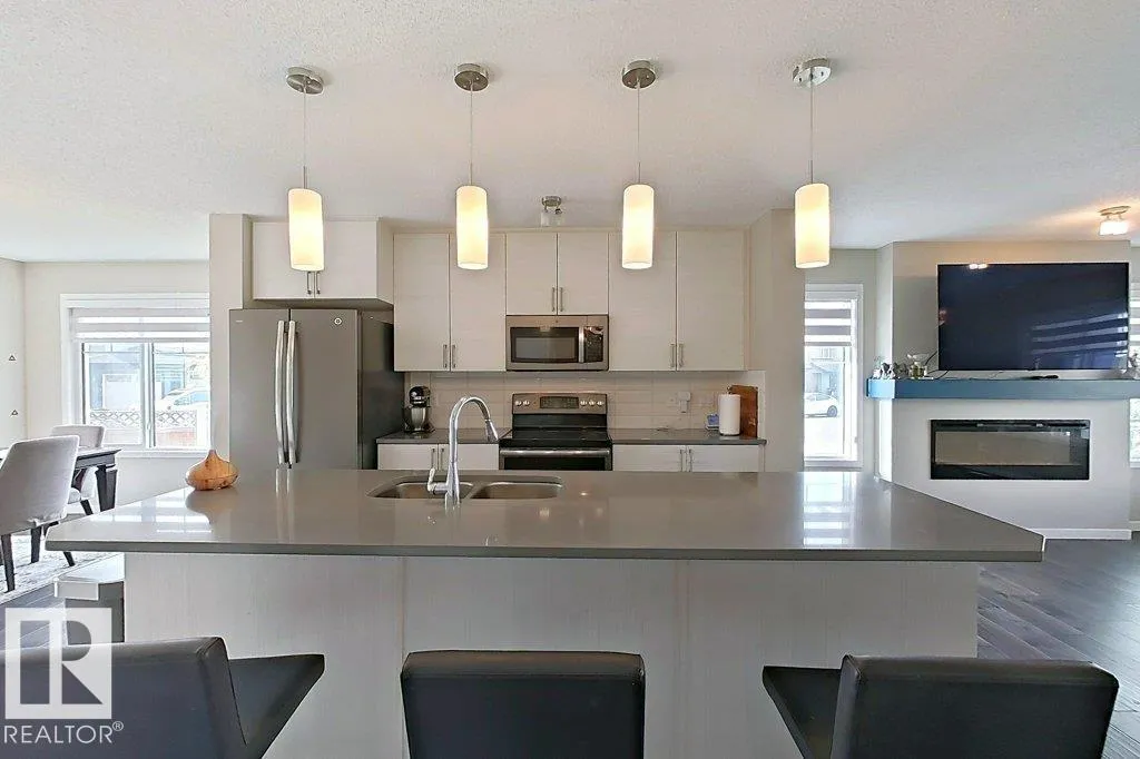 Nested in the highly desirable South West community of Paisley, this detached home is built on a huge 461 Sq mt. Lot in Southwest Edmonton! This property offers fantastic curb appeal with a Oversized detached garage, an oversized driveway, and a over sized front porch perfect for morning coffee or evening relaxation and fully landscaped lot. Extra windows across the home adds to a tons of natural sunlight. Step outside to enjoy the fully fenced backyard with a deck, ideal for summer BBQs and family gatherings. Inside, youâll find a bright and inviting layout designed for comfortable living. The location is unbeatableâjust minutes from major schools, shopping, parks, playgrounds, a dog park, and the airport, with quick access to Anthony Henday Drive for an easy commute anywhere in the city. Perfect for families and professionals alike, this home combines comfort, convenience, and lifestyle in one incredible package, one picture is virtually staged. This home shows 10/10. (id:27476)