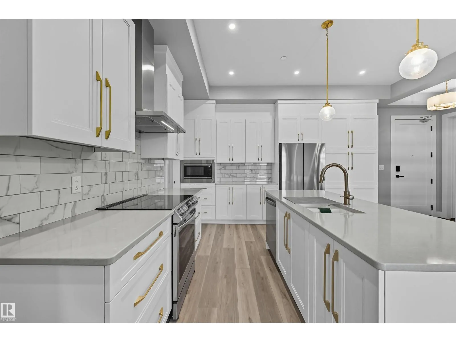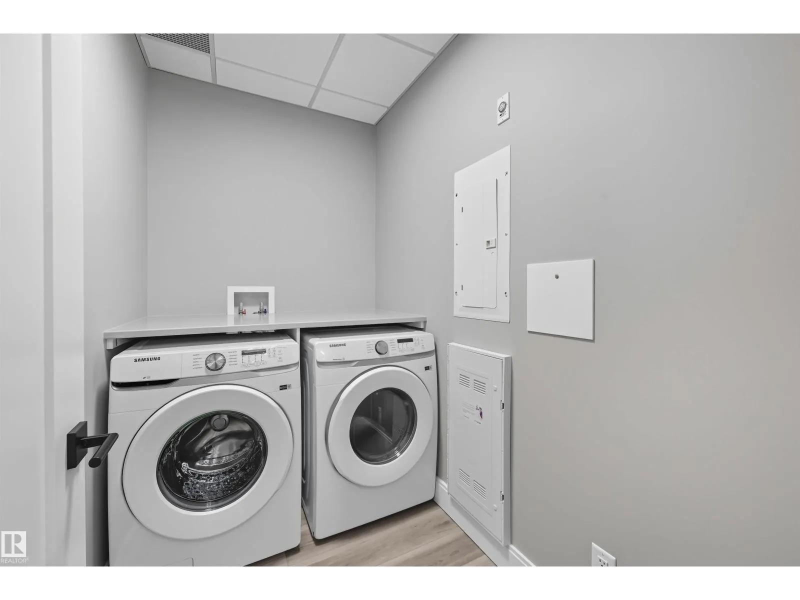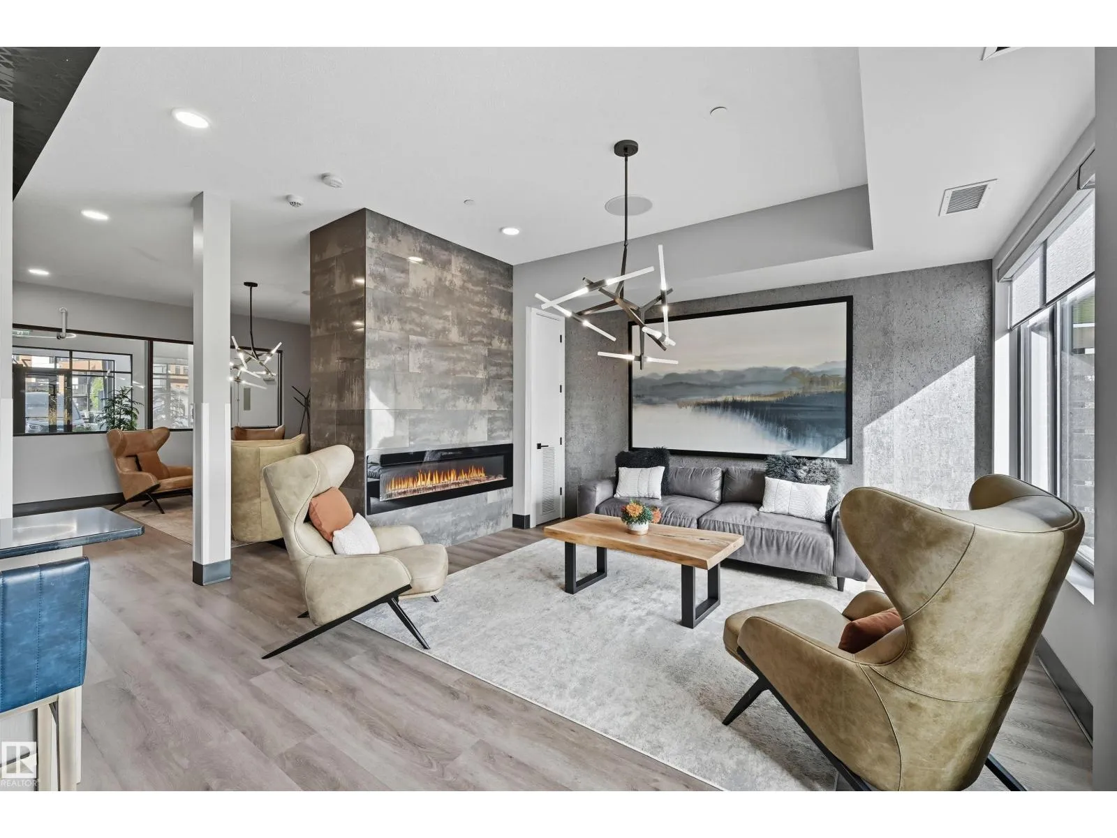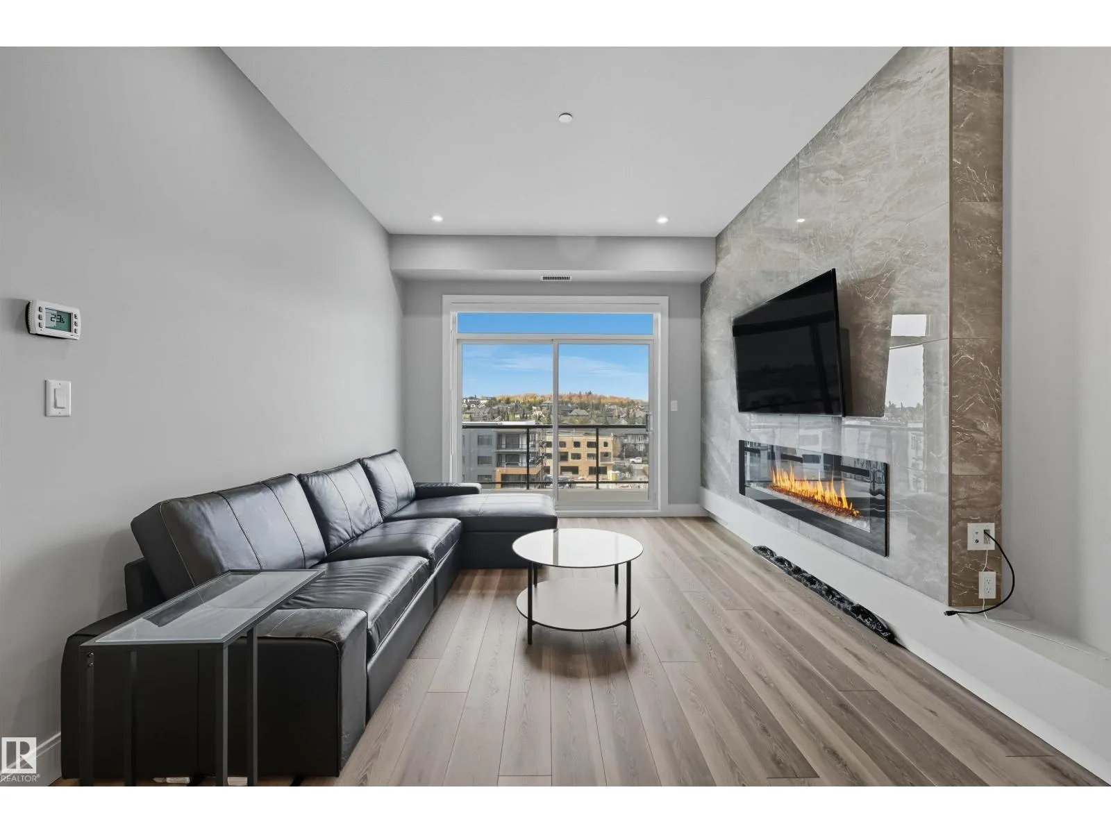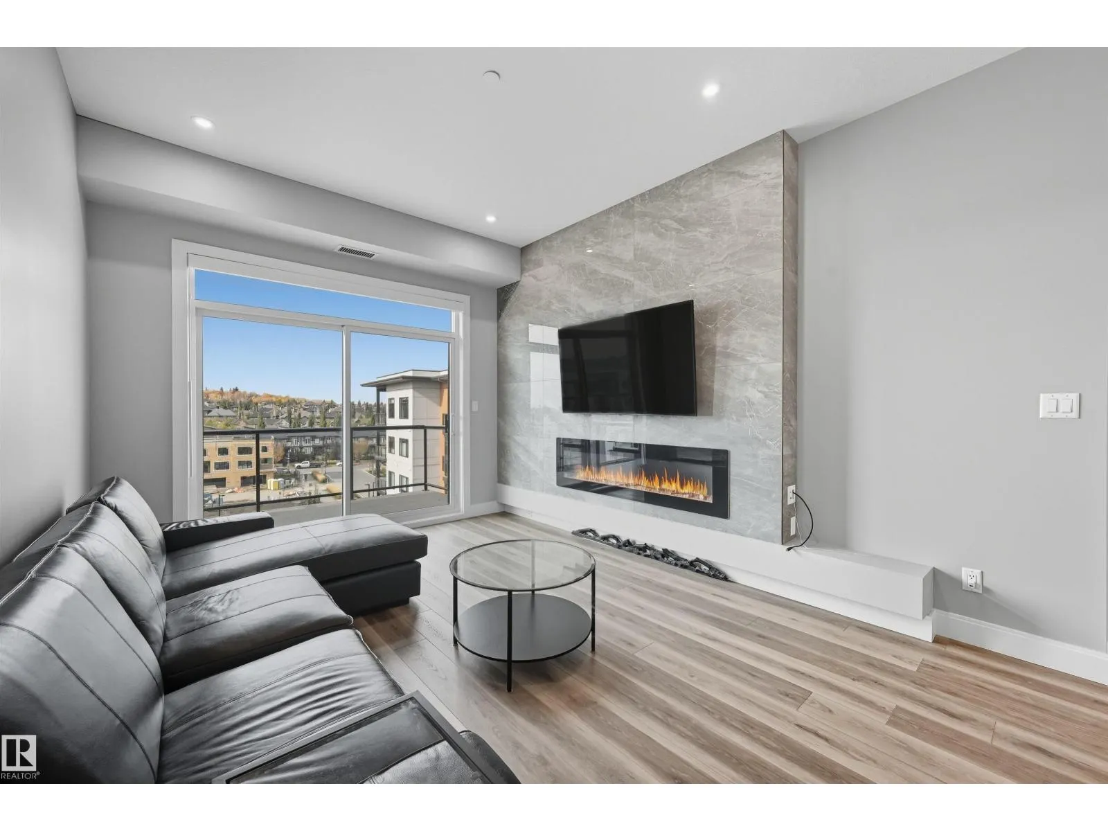STUNNING TOP FLOOR unit with soaring 10' ceilings, 9' doors & in excellent condition! Open concept Oakley layout encompasses a sizeable kitchen w/ walk-in pantry & ample cabinetry, large living room, massive primary w/ dual sink ensuite & walk in closet. Plus 2nd bedroom, 2nd bthrm & walk-in laundry rm! Upgrades include: ceiling height cabinets, LVP, extended 75 electric fireplace & more. West unit orientation offers a brightly lit space & 6th floor location ensures privacy from other units & a view of the tree-filled Magrath neighborhood. Exceptional amenities include high quality social room (movie space, bar, kitchen, ample seating) w/ access to ravine-facing patio & fire pit area, roof top patio, gym, library, craft room, boardroom, guest suites & a 3-bay enclosed dog wash station! Plus a fenced dog run along Building 1. Enjoy daily ravine walks on the maintained trails of Larch Park, or head into the ravine for a nature escape right out your back door! Plus underground parking w/ storage. (id:27476)