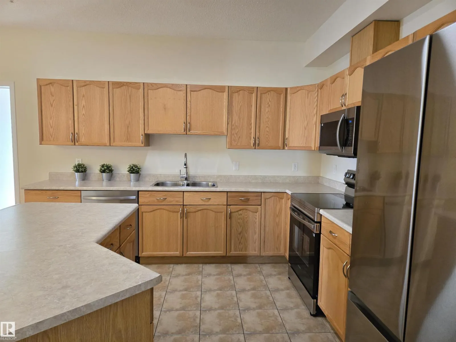 Welcome to this spacious CORNER UNIT located just minutes from downtown & U of A, with the Clareview LRT Station right at your doorstep. This beautifully maintained condo offers a private & quiet setting with a functional layout. Two generously sized bdrms, including a primary suite with full ensuite. Large entrance leads to a bright OPEN-CONCEPT living area with a large kitchen featuring BRAND NEW stainless steel appliances, oak cabinetry & a large island with plenty of counter space! Step out from either the living room or primary bedroom onto a massive balcony, complete with natural gas BBQ hookup. Add'l features include: A/C, 9ft ceilings, in-suite laundry w/new washer & dryer, underground parking stall conveniently located near the elevator, access to the car wash & the amenities building w/SOCIAL ROOM, GYM & GAMES ROOM. Enjoy the unbeatable convenience with walking distance to shopping, groceries, fitness centers & all essential amenities. Fantastic opportunity to own in a prime location! (id:27476)
