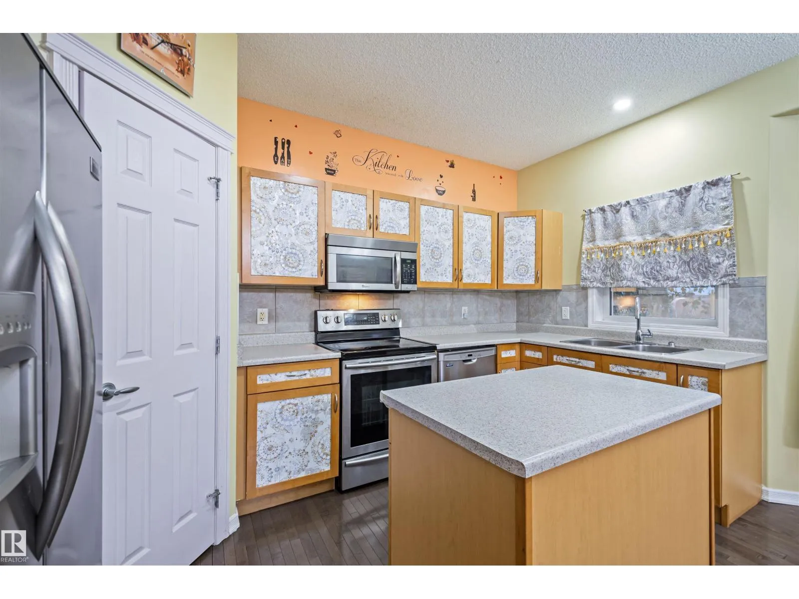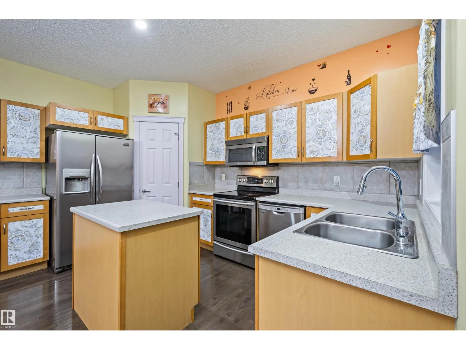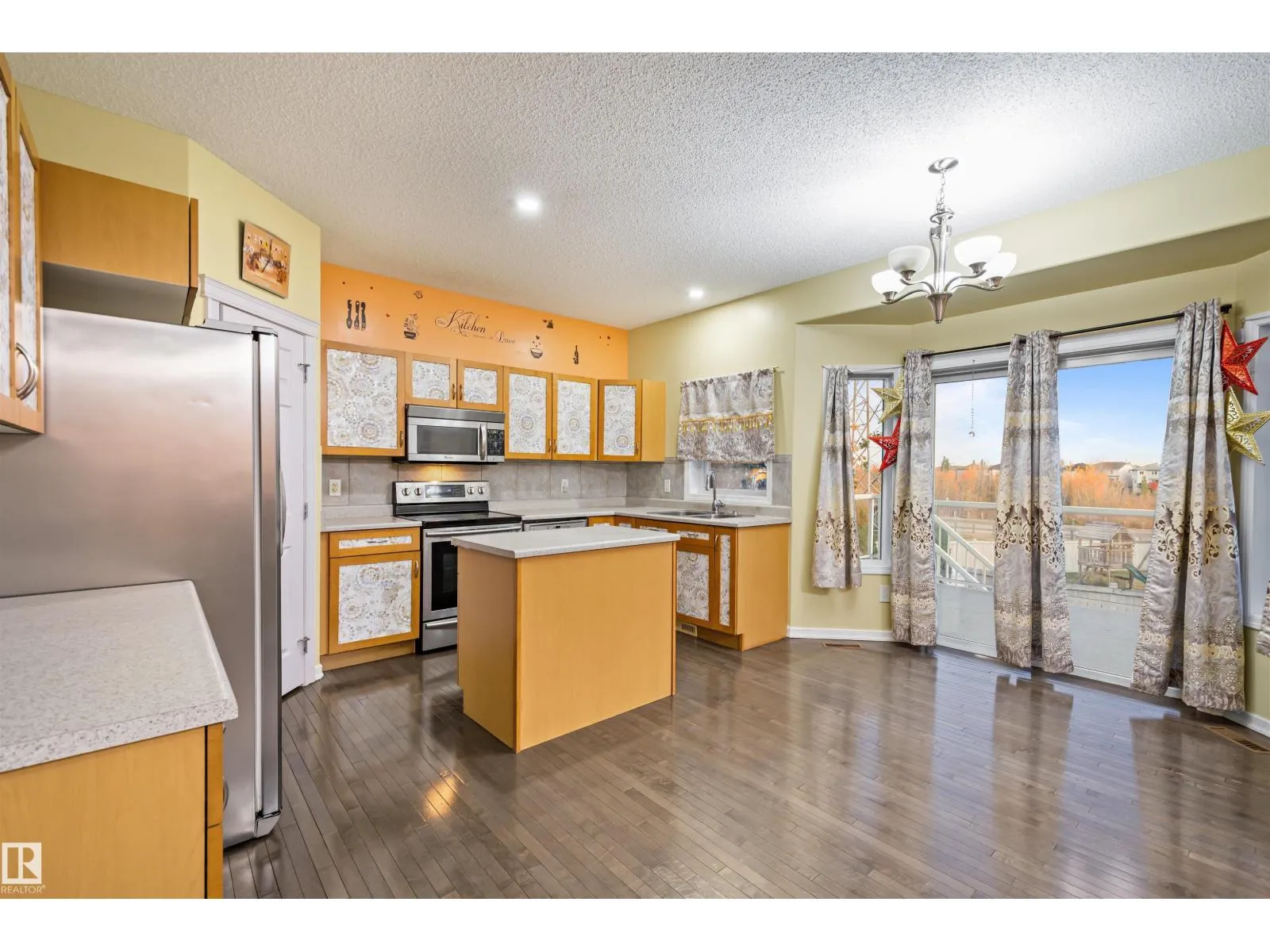 Welcome to Wild Rose! This beautiful 2-storey offers 4 bedrooms + bonus room + rec room, 2 kitchens, 3.5 baths, and a fully finished walkout basement spanning over 2,314 Sq.Ft. of living space perfect for large or extended families. The bright foyer opens to a warm living room with hardwood floors, gas fireplace, and large windows overlooking the backyard. The open dining area leads to patio doors and a spacious deck with serene views of Mill Creek Ravine. The kitchen features stainless steel appliances, ample cabinetry, and a functional island. A laundry/mudroom and 2-pc bath complete the main level. Upstairs includes a bonus room with vaulted ceilings, a primary suite with 4-pc ensuite and walk-in closet, plus 2 additional bedrooms and a full bath. The walkout basement has a separate entrance with new flooring and paint, a 2nd kitchen, bedroom, rec room, and 4-pc bath ideal for guests, in-laws, or rental potential. Conveniently located near schools, shopping, parks, trails & public transit. Welcome Home (id:27476)
